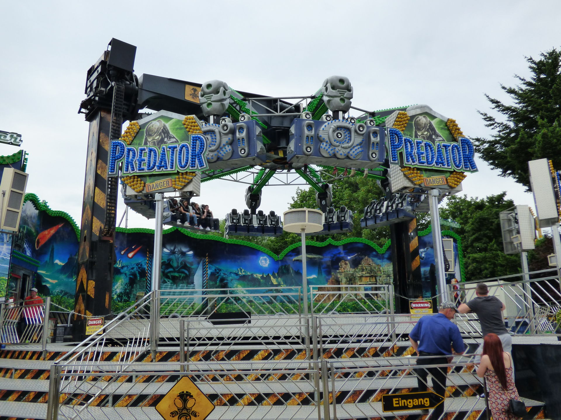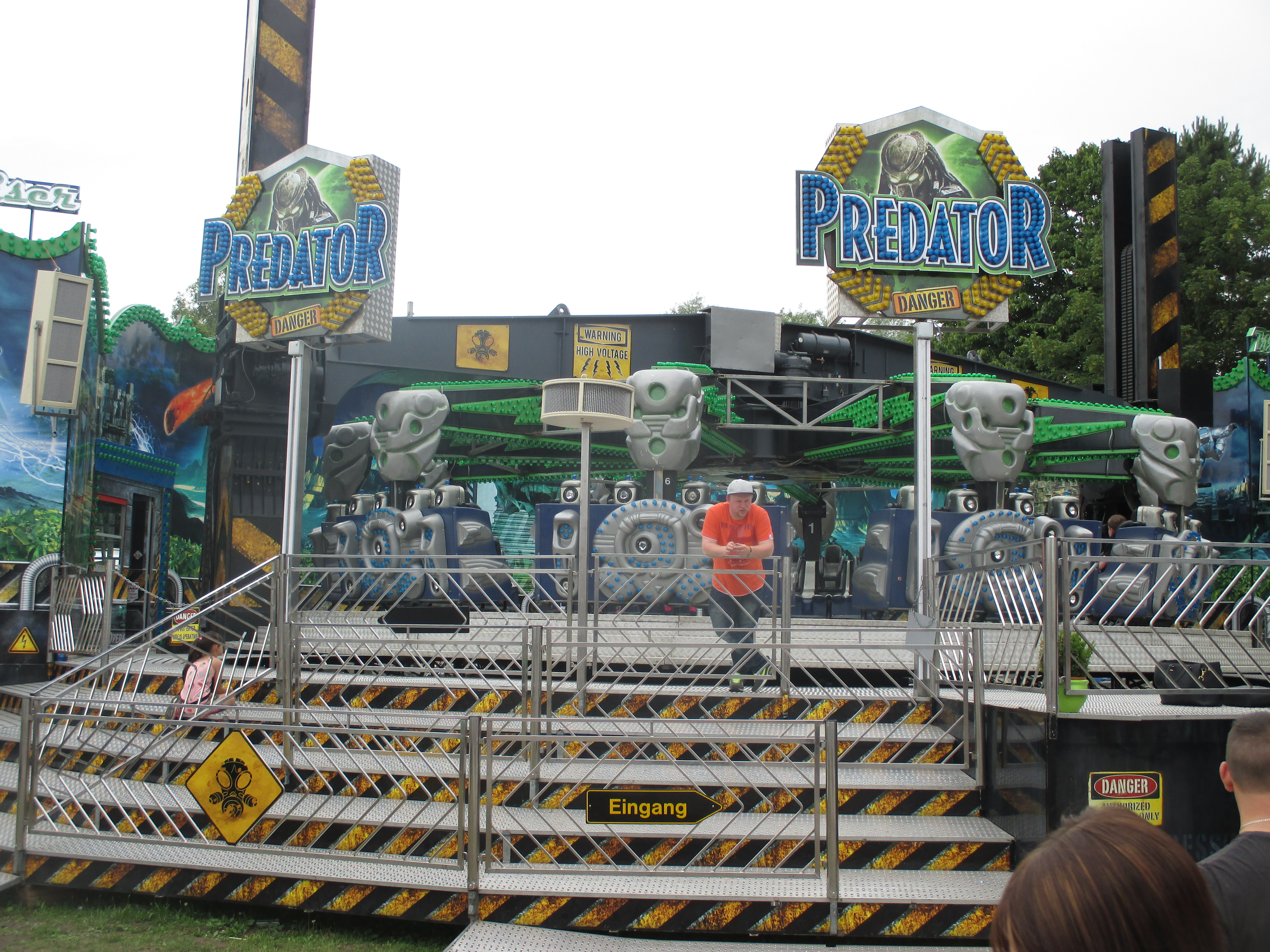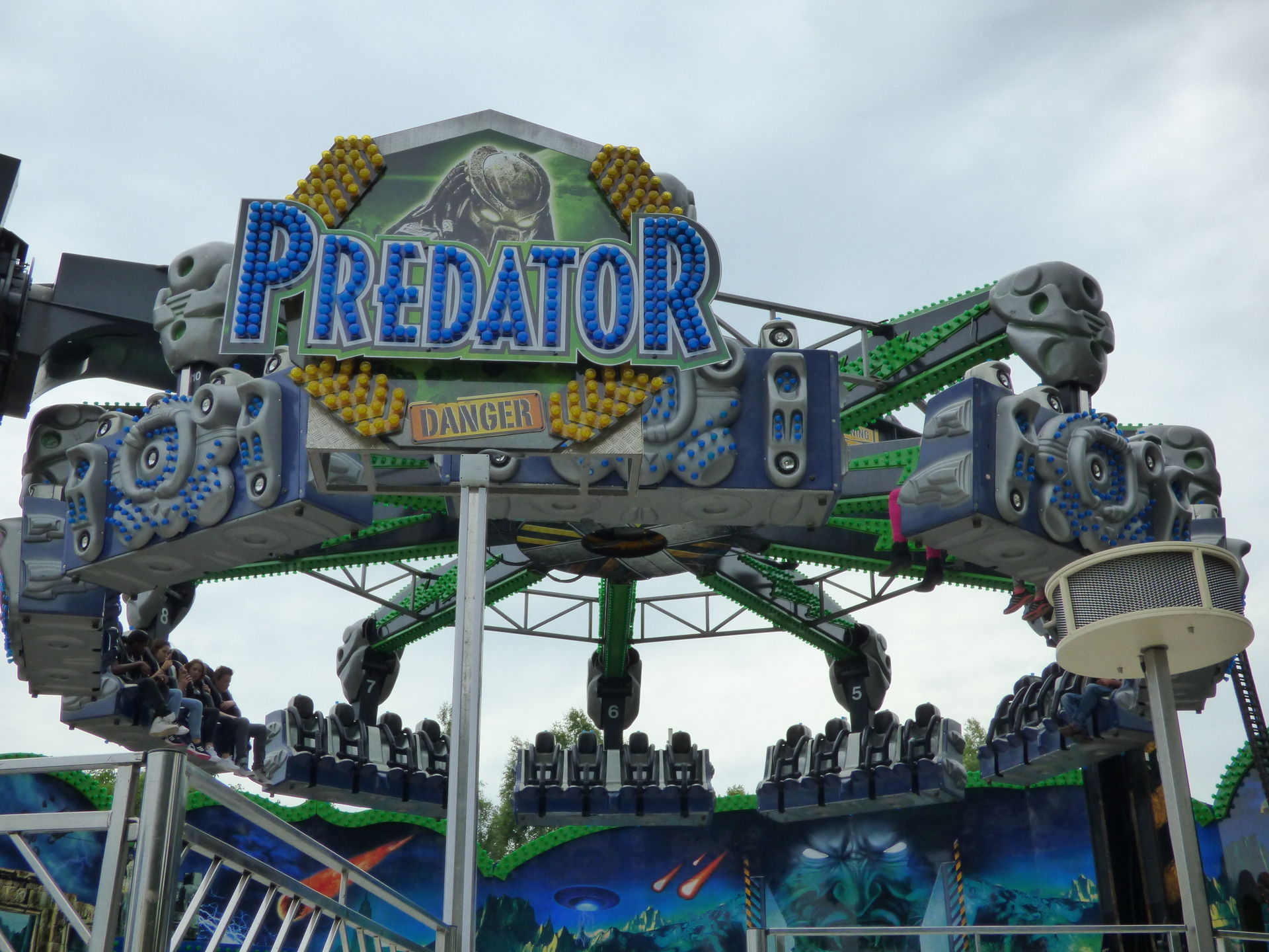 Direkt gegenüber stand der auch als "Bratpfanne-The Ride" bekannte High Impress und nur wenige Meter weiter der Predator. Ich finde beide Fahrgeschäfte optisch nach wie vor eine Augenweide und ich verweile gerne vor den Karussells, um einfach nur zuzusehen oder aber Fotos und Videos zu machen. Bei diesem herrlichen Kirmeswetter am Sonntag macht das natürlich noch doppelt Spaß.