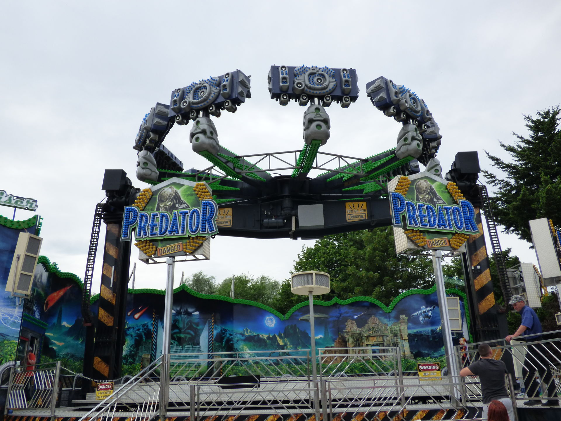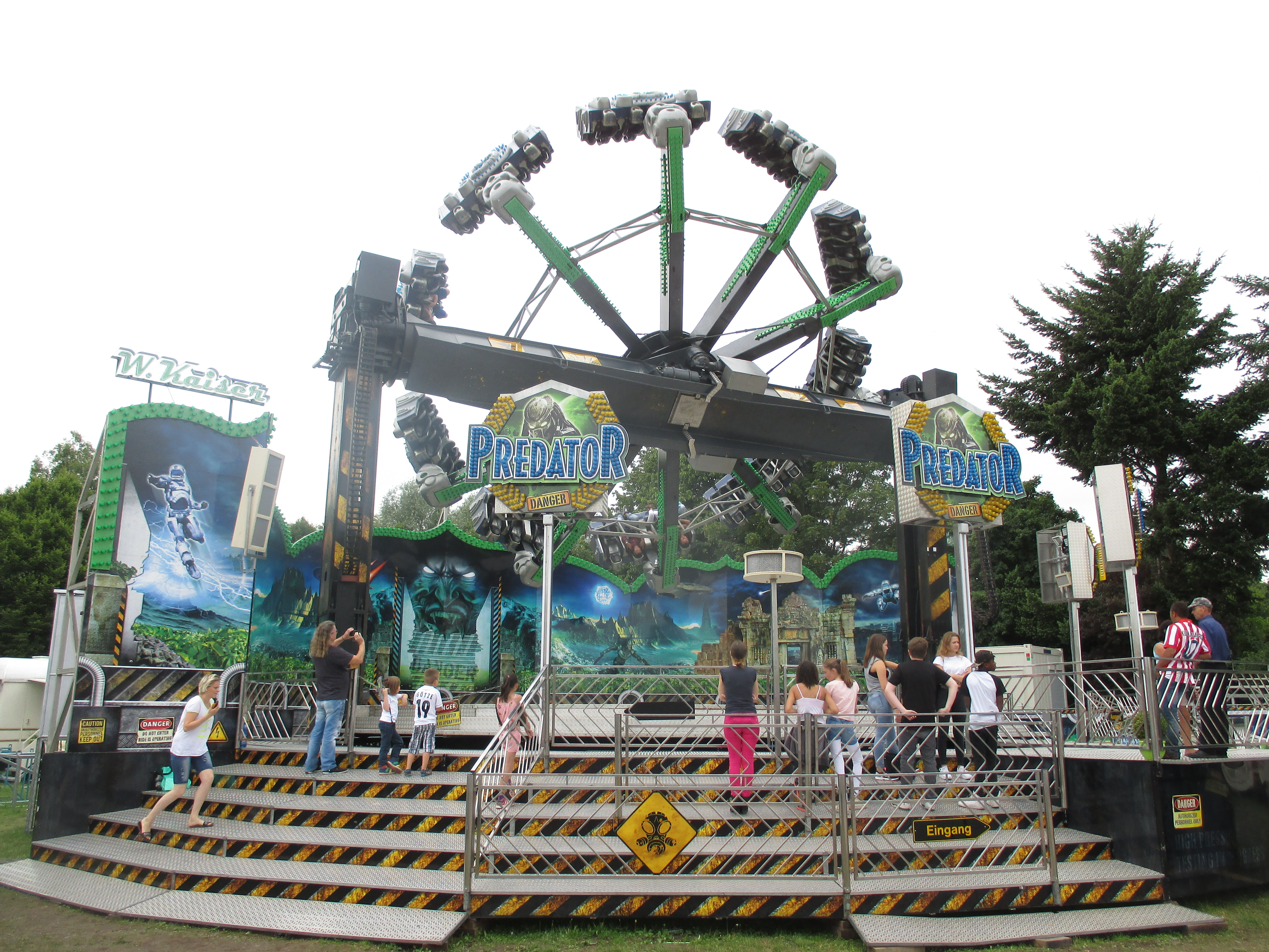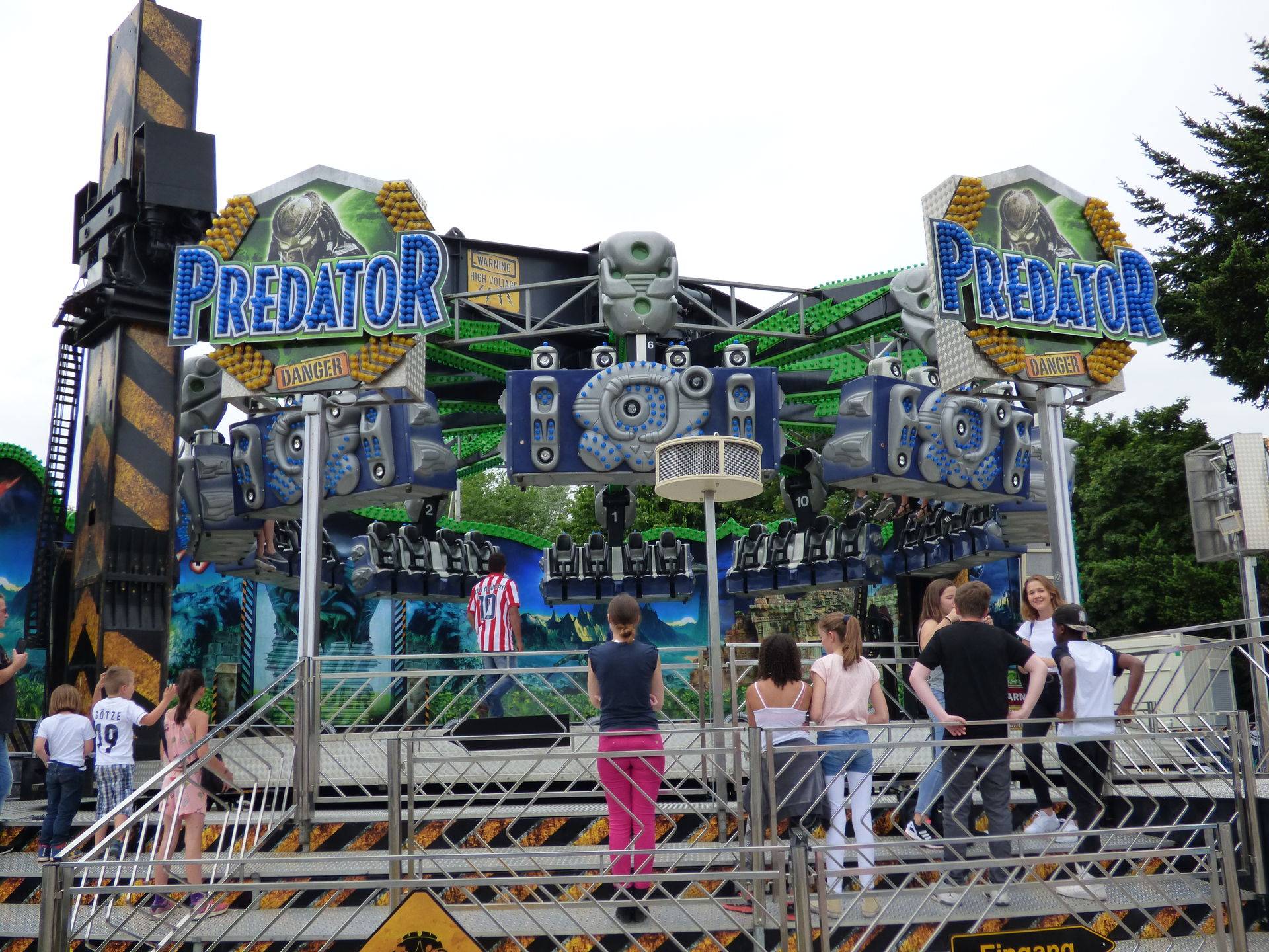 Direkt gegenüber stand der auch als "Bratpfanne-The Ride" bekannte High Impress und nur wenige Meter weiter der Predator. Ich finde beide Fahrgeschäfte optisch nach wie vor eine Augenweide und ich verweile gerne vor den Karussells, um einfach nur zuzusehen oder aber Fotos und Videos zu machen. Bei diesem herrlichen Kirmeswetter am Sonntag macht das natürlich noch doppelt Spaß.