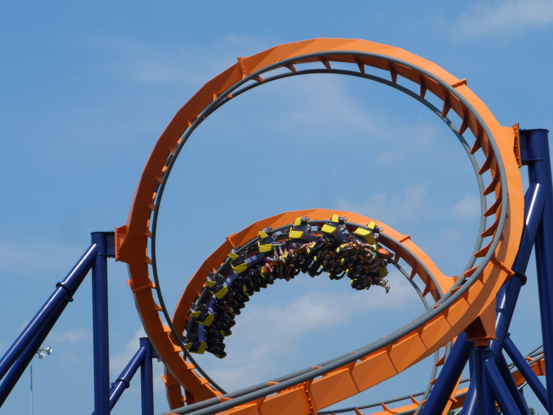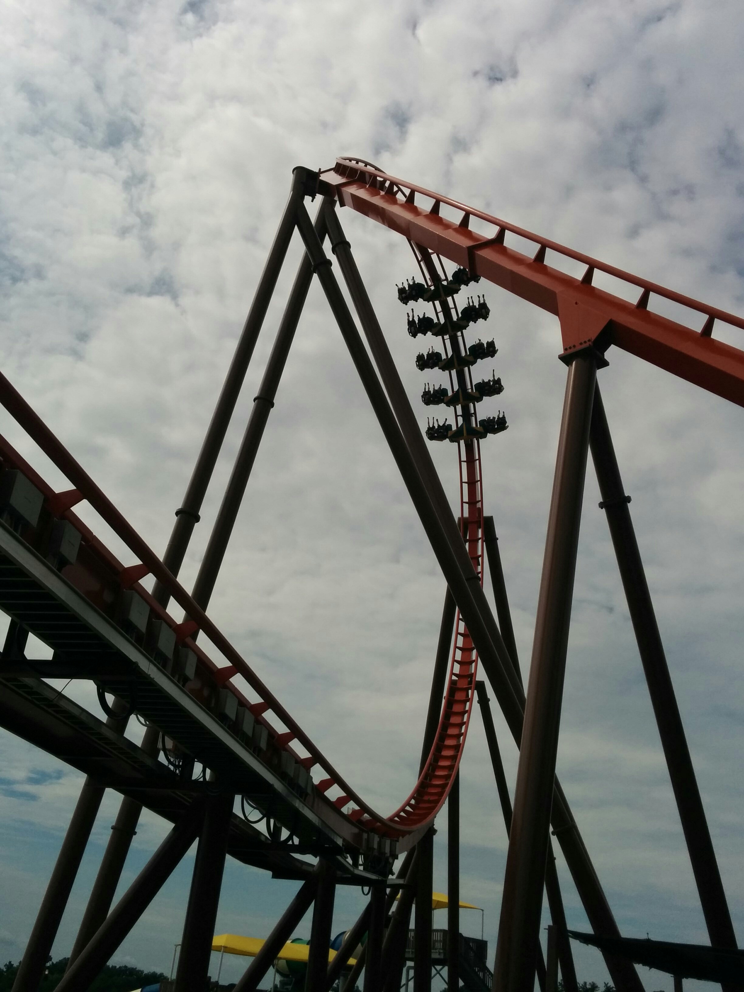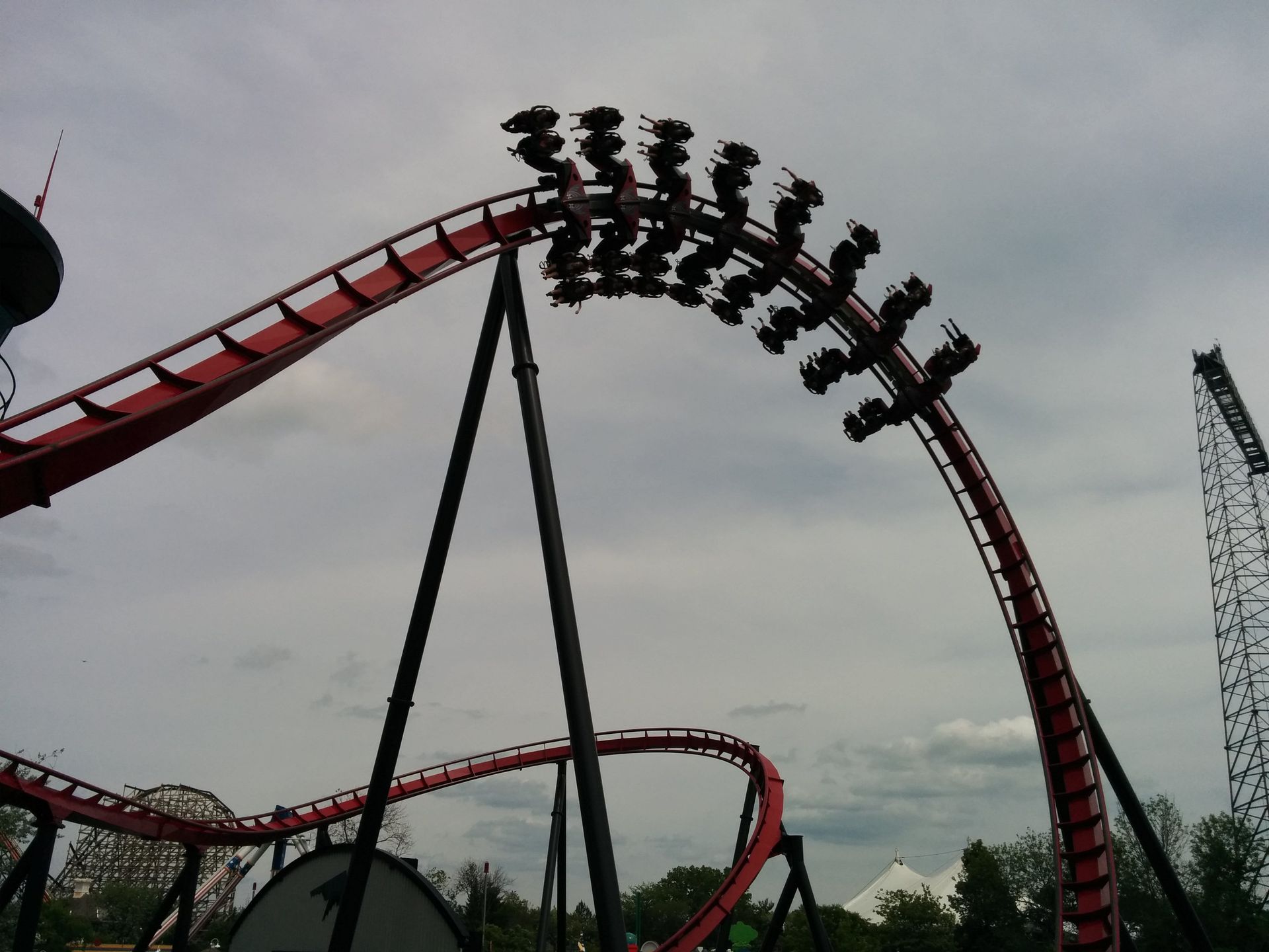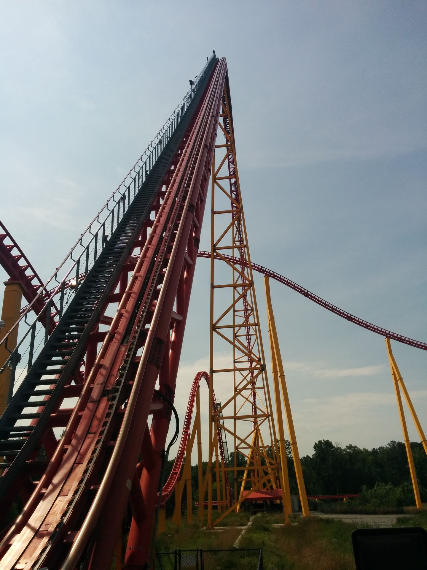Der einzige Park für uns ohne neuen Zähler, aber sei's drum! Hier gibt es schließlich mit Intimidator305 und dem Dominator 2 absolute Top-Bahnen! Beim morgendlichen warmfahren des roten Nascar-Renners fiel mir bald auf, dass ich wohl älter werde und das Dauer-Coastern wohl nicht mehr so gut vertrage. Jedenfalls wurde mir nach dem First-Drop immer früher dunkel vor Augen und es dauerte von Fahrt zu Fahrt auch immer Länger bis nach dem Airtimehügel, bis ich wieder alles sehen konnte