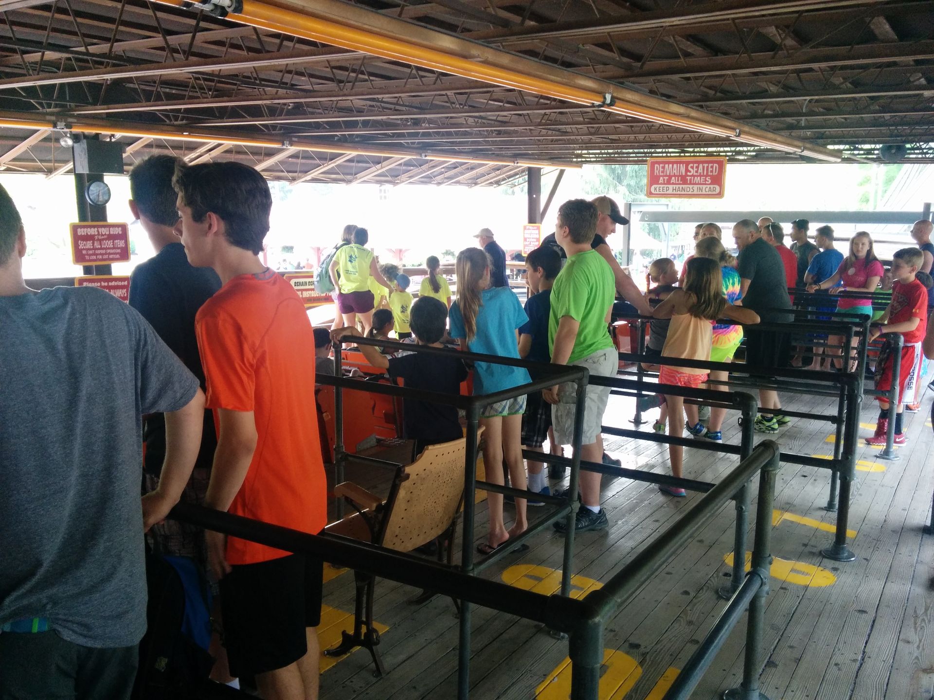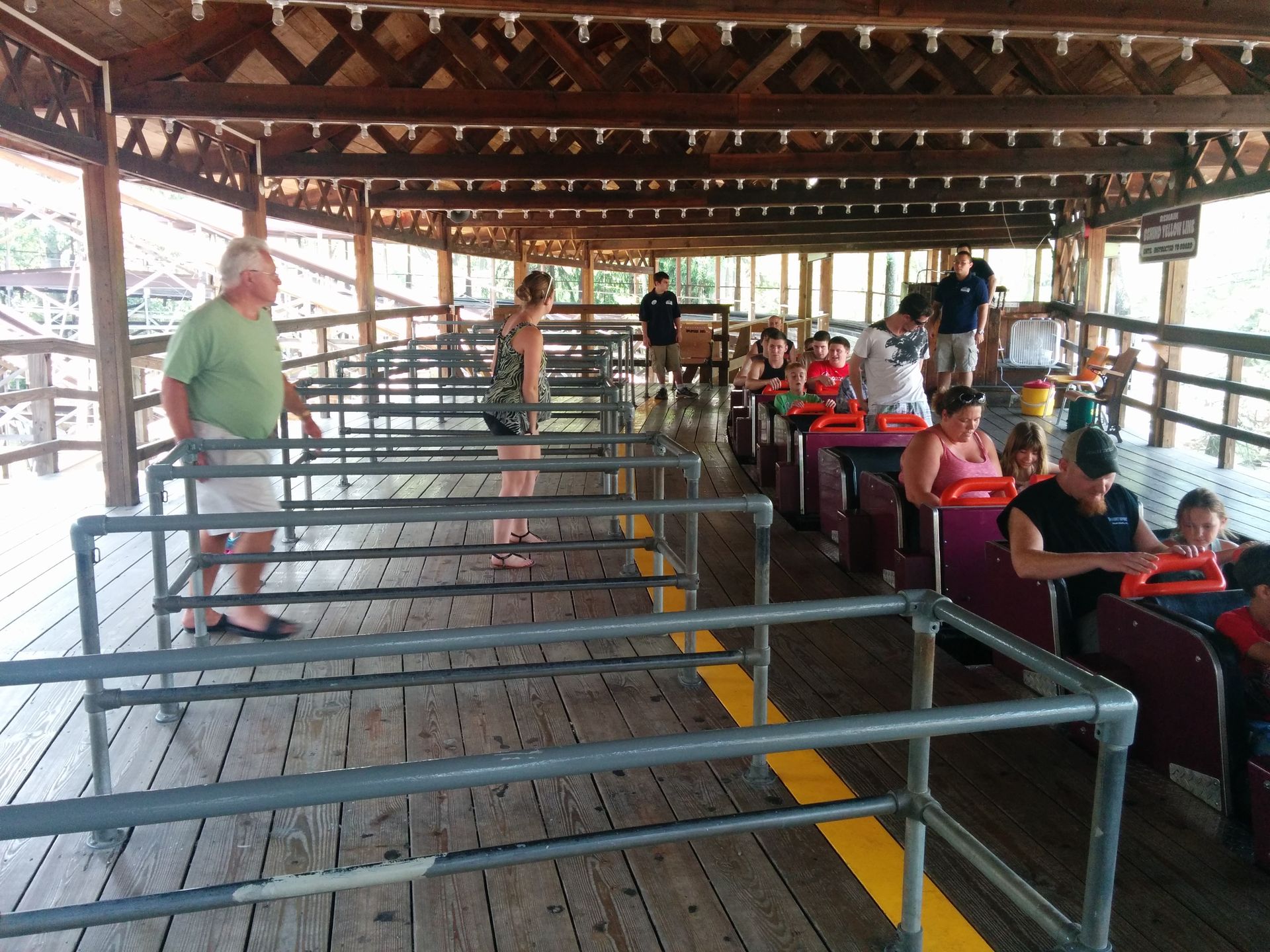 Einfach unfassbar! Immerhin kümmern sich die Ride-Ops um die ausharrenden Gäste. Es wird darauf hingewiesen, dass die anderen Bahnen ja fahren würden (warum denn dann diese nicht?!) und es wurde sogar ein UNO-Kreis gebildet!