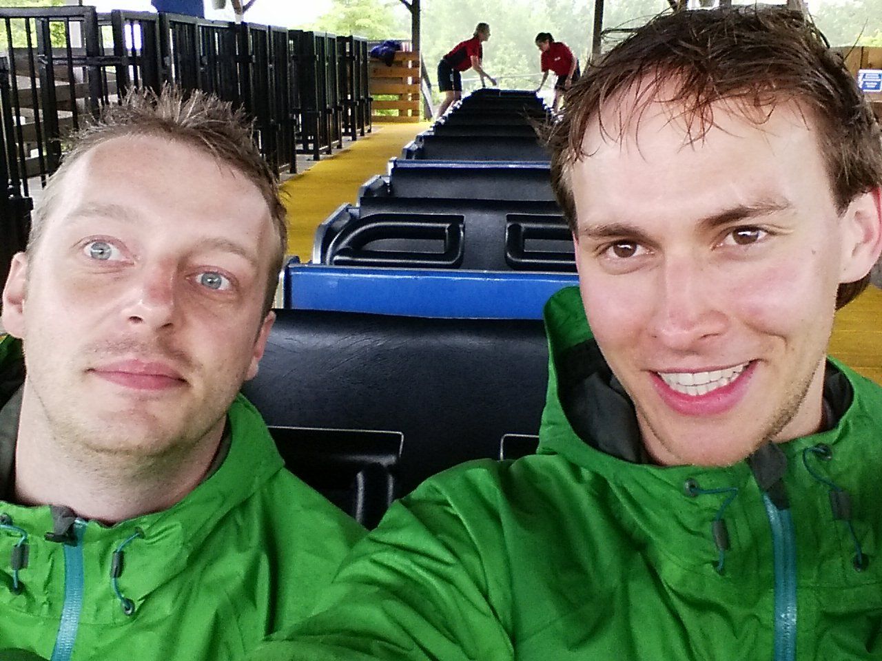 G-Kräften nicht geizt, macht die ganze Angelegenheit nicht wesentlich angenehmer. Benni wollte danach eigentlich nicht nochmal aber ich habe etwas genervt und schwupp sind wir später am Tag noch weiter vorne und in der Mitte gefahren. Und siehe da: das ganze war wesentlich angenehmer und hat auch weitaus mehr Spaß verbreitet! Zwar wird weiterhin versucht, einen Oberschenkelhalsbruch zu verursachen, aber wenn man mit den Händen etwas gegen den Bügel drückt, wird die Fahrt doch noch sehr spaßig. Positiv ist, dass sich die Bügel in der Schlussbremse etwas lockern.