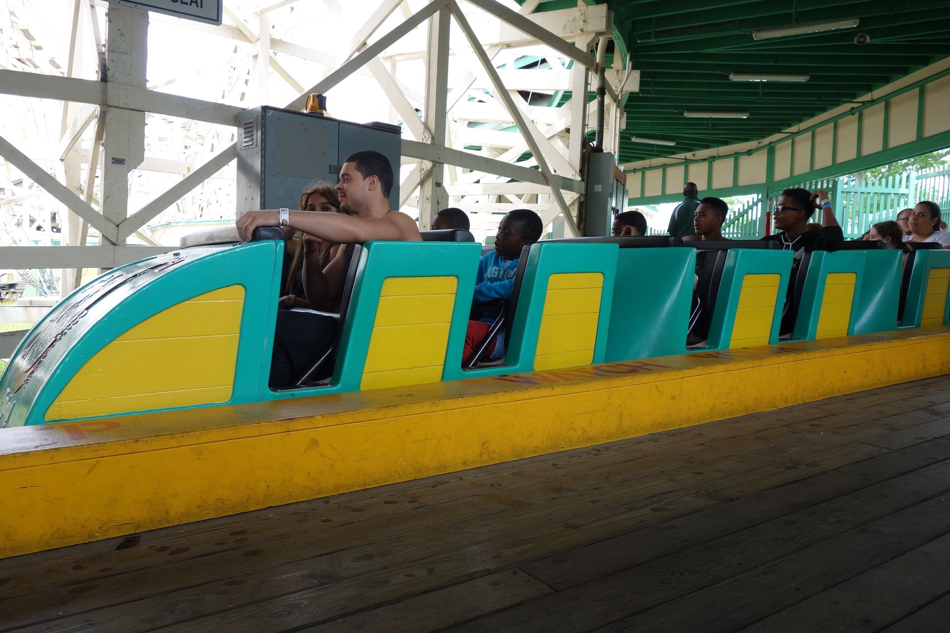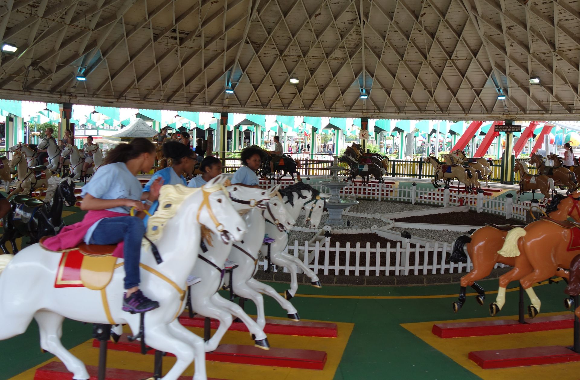 Uh, Fehler es im Cedar Point übersehen zu haben. Da bewegen sich die Pferde wenigstens noch, wie ursprünglich vorgesehen, nach vorne und hinten während der Fahrt. Bei den Versionen in Blackpool und Playland sind sie fixiert. S
