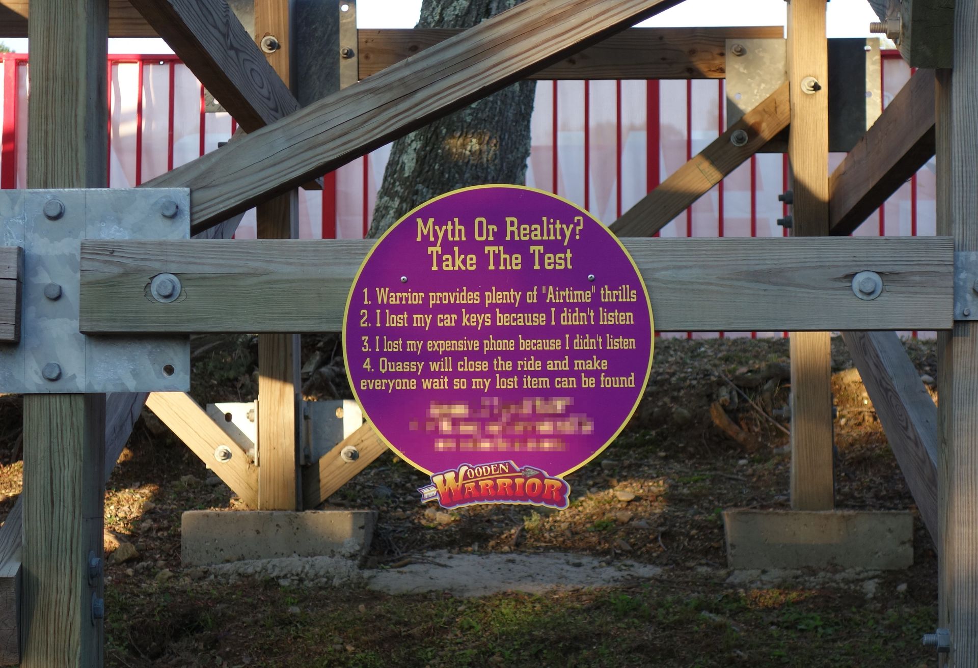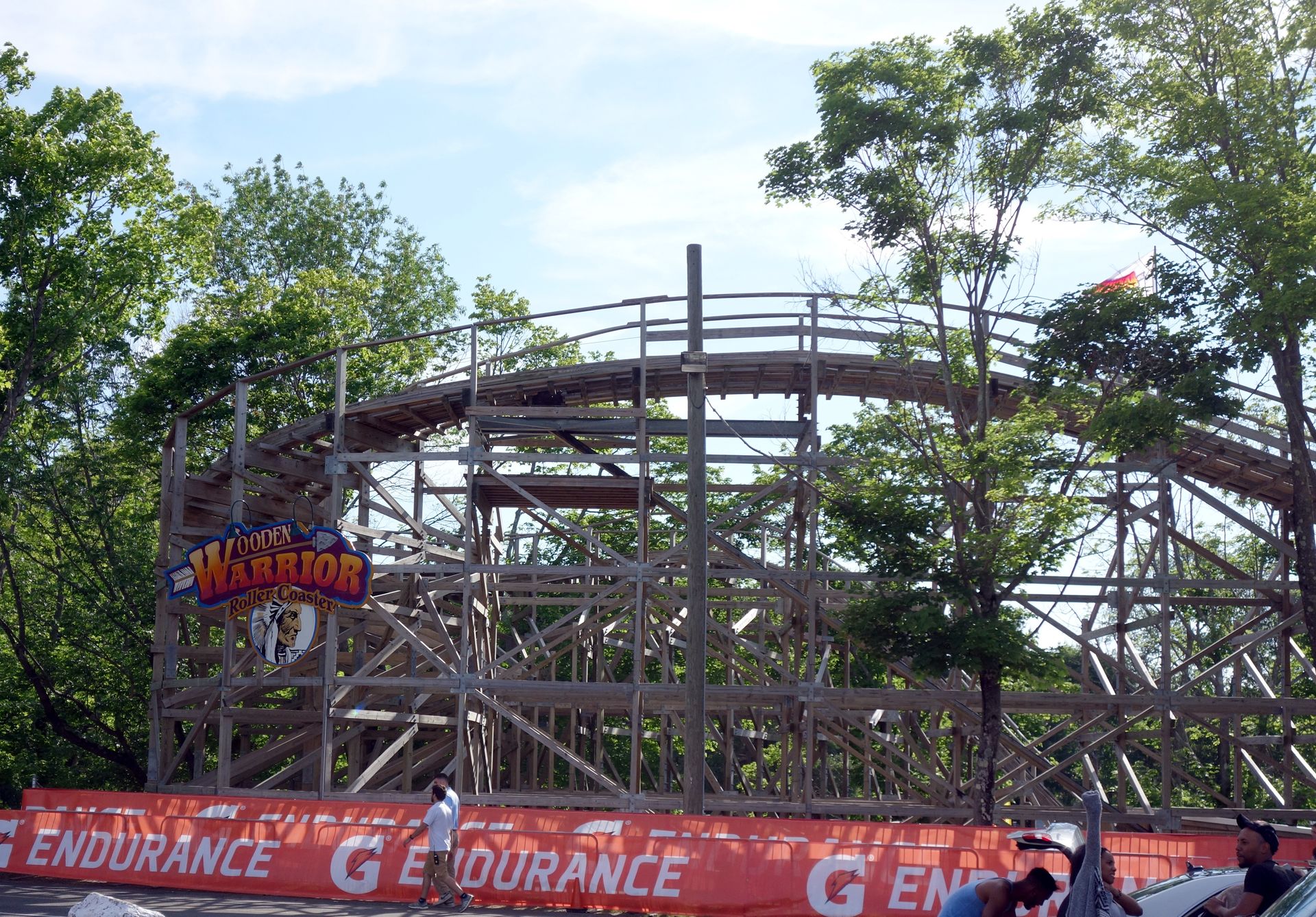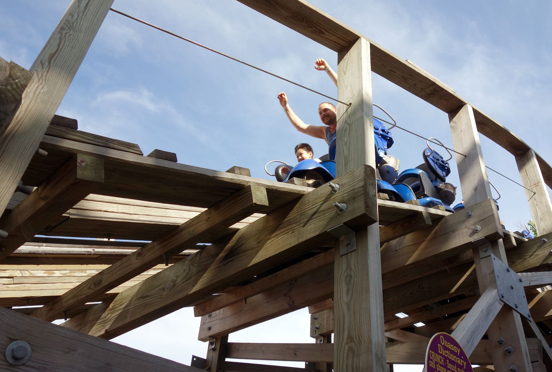 Auf dem Weg zurück Richtung Bus konnten wir am Wooden Warrior aber auch nicht einfach so vorbei laufen. Da nahmen wir auch eine kurze Wartezeit in Kauf. Immerhin war dies mit Abstand die beste Achterbahn an diesem Tag.