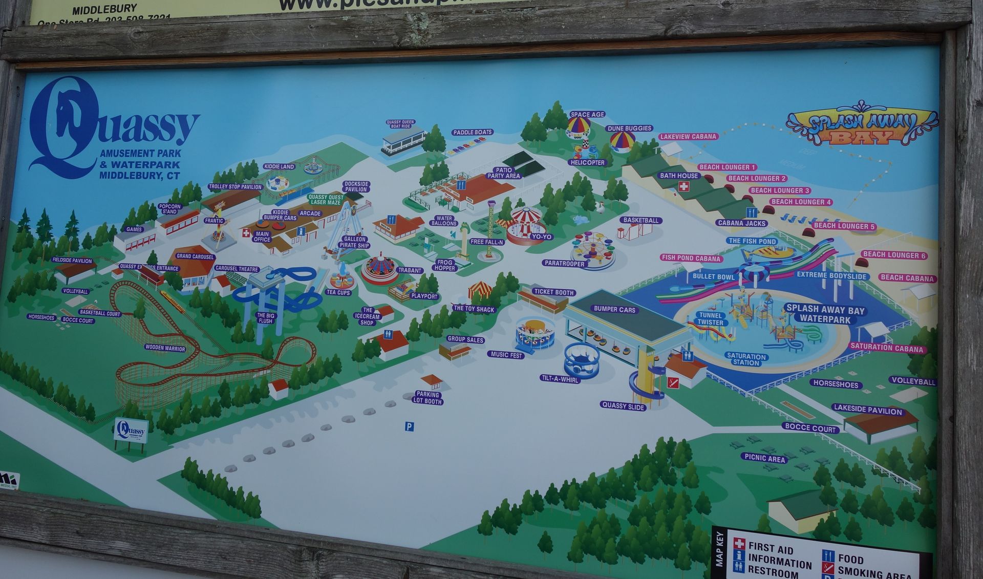 Nach dem kurzen aber gelungenen Tourauftakt im Playland verließen wir nun den Bundesstaat New York. Denn unsere nächsten Ziele lagen im benachbarten Connecticut. Gut eine Stunde und 15 Minuten dauerte die Fahrt, bis wir den kleinen Quassy Amusement Park im Örtchen Middlebury (nicht zu verwechseln mit dem niederländischen Middelburg) erreichten. Hier waren immerhin knapp drei Stunden eingeplant, bevor wir endlich zu unserem ersten Hotel aufbrechen sollten.