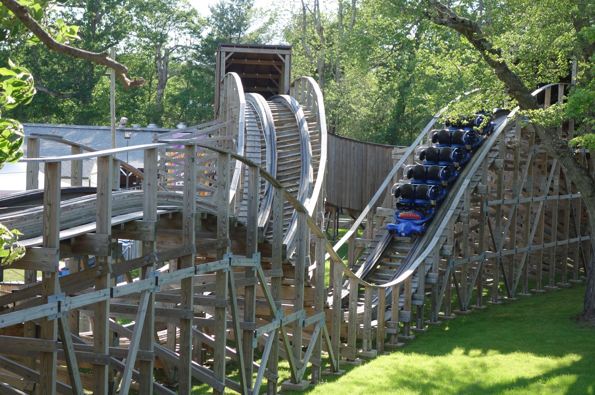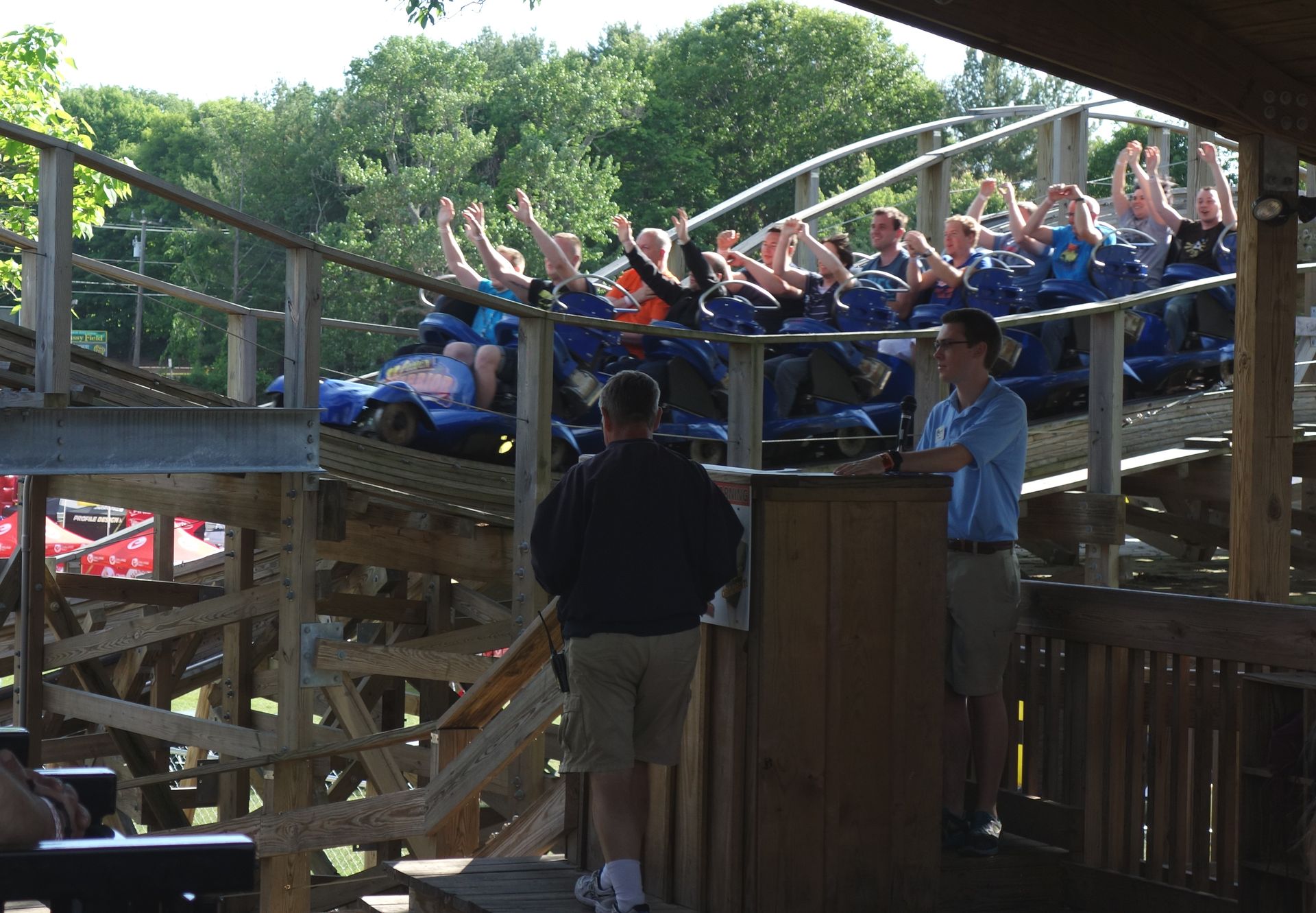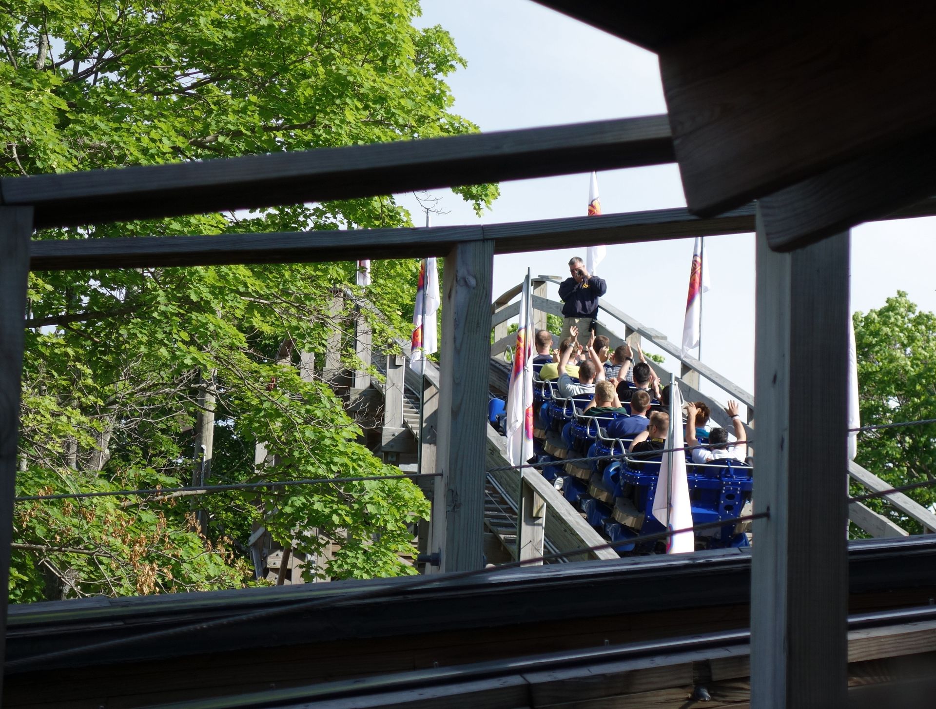 Die Holzachterbahn wurde daher auch gleich gemeinsam gestürmt.