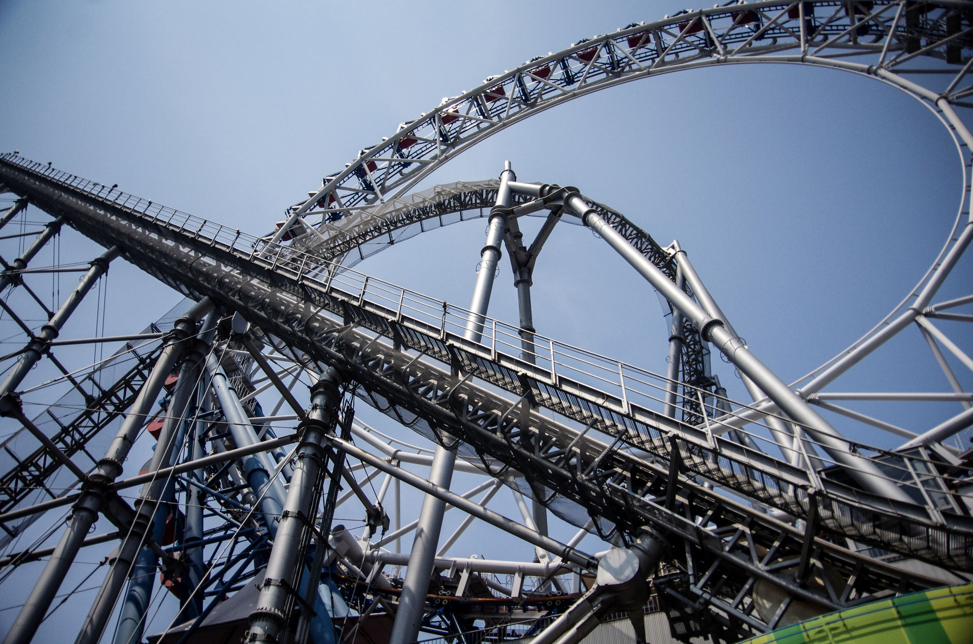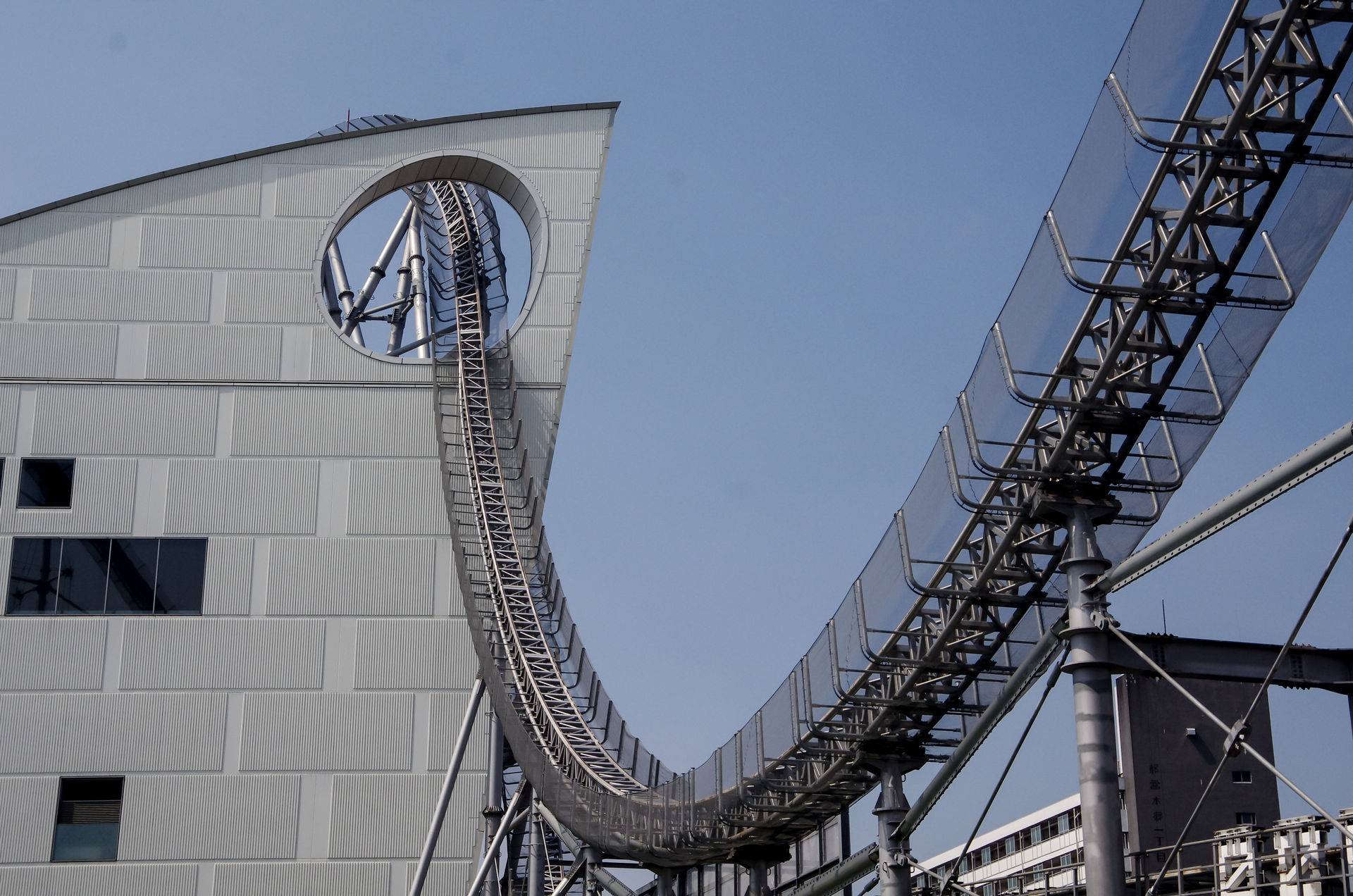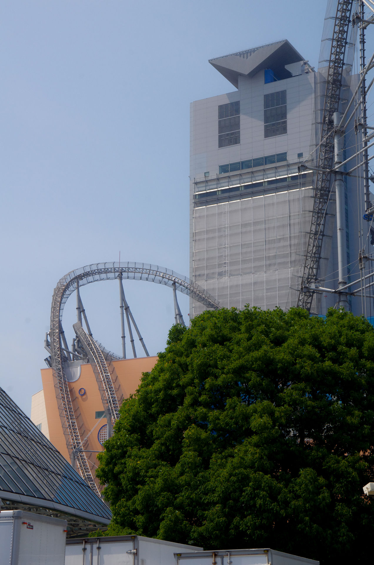 First Drop zieht ganz nett, sollte er aber auch bei geschätzt 60m, die Fahrt danach haute mich dann nicht so vom Hocker. Direkt nach dem ersten Tal geht aufs Hochhaus, oben entlang und durch das Loch zurück, allerdings ziemlich Airtimelos - es gibt zwar auf dem Hochhaus einen kleinen