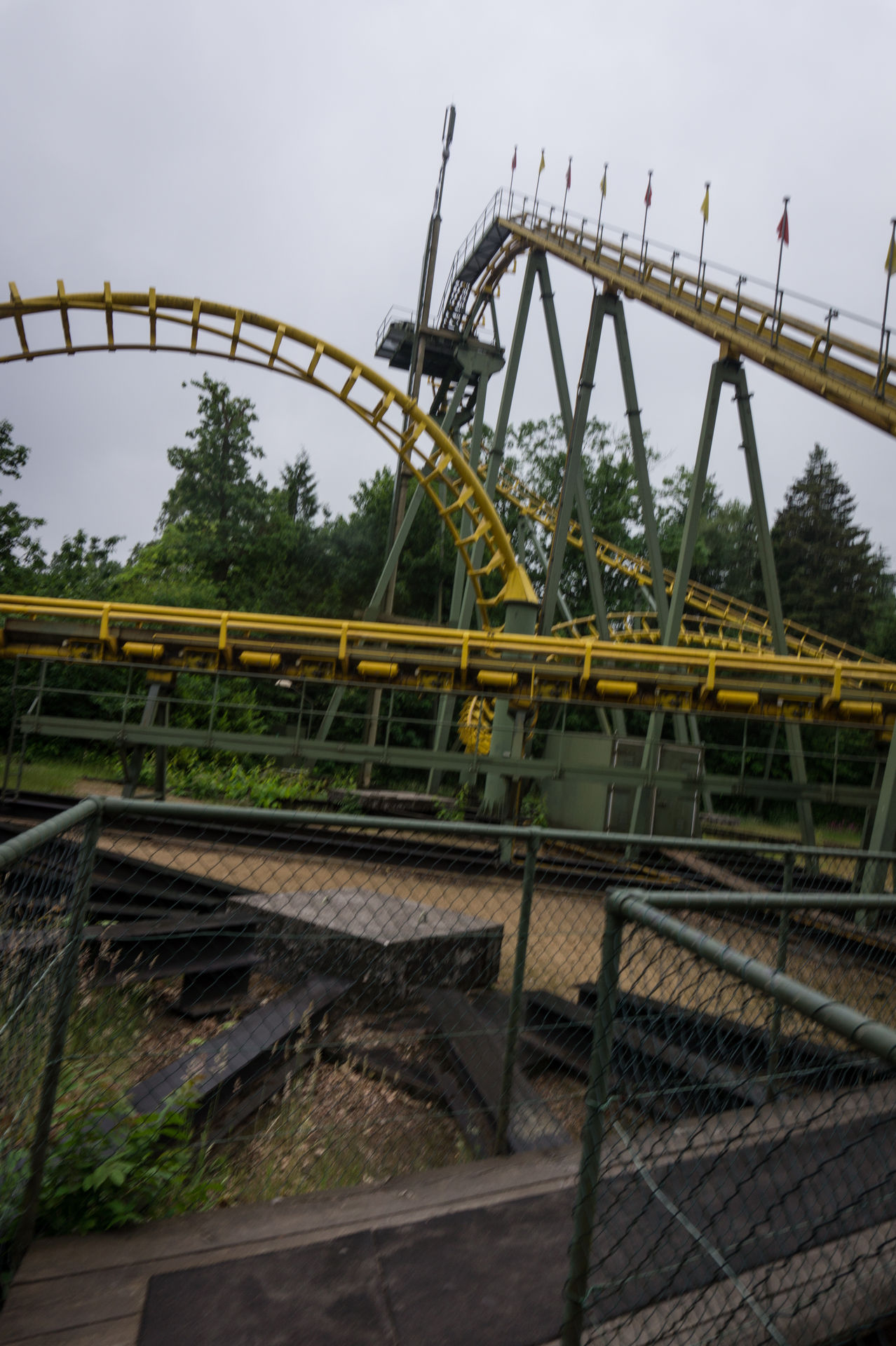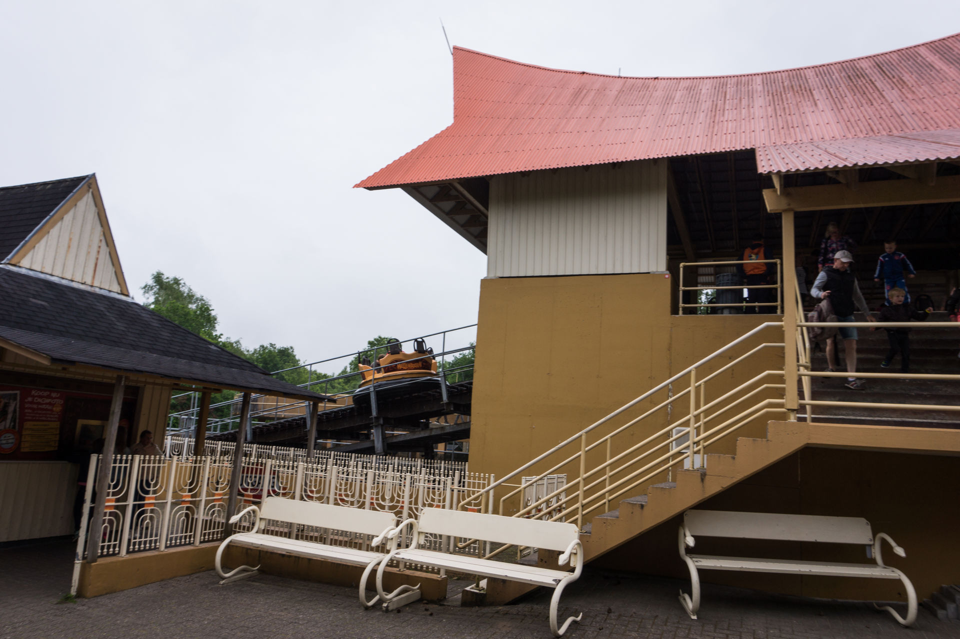 Ich hatte zuvor vieles negatives über die Anlage gehört und gelesen und bin doch sehr überrascht wie gut die Anlage vom Park gepflegt wird. Hier war nicht nur das äußere Erscheinungsbild mehr als in Ordnung, sondern stellten sich die prophezeiten Fahreigenschaften als schlichtweg falsch heraus, von einem fiesen Schlag während der kaum geneigten Wende oberhalb der Station war absolut gar nichts zu spüren und auch der Rest der Strecke fuhr sich ideal, so dass ich am Ende sogar leicht enttäuscht war bereits nach einer Runde, trotz bereits erwähnten nicht vorhandenen Andrangs, aussteigen zu müssen.