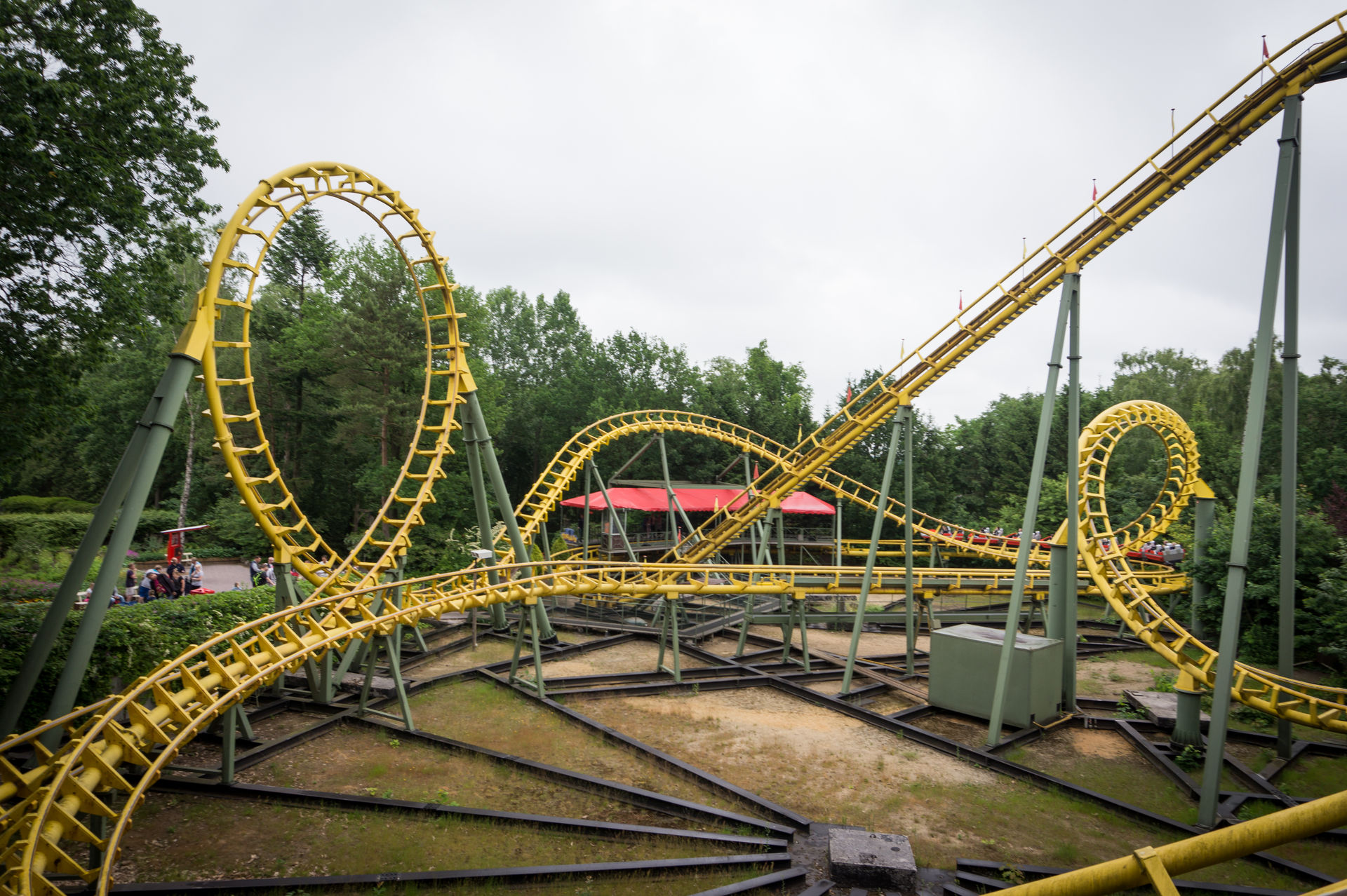 Bereits in Sichtweite der Wildwasserbahn befindet sich mit dem Tornado eine Achterbahn des gleichnamigen Modells aus dem Hause