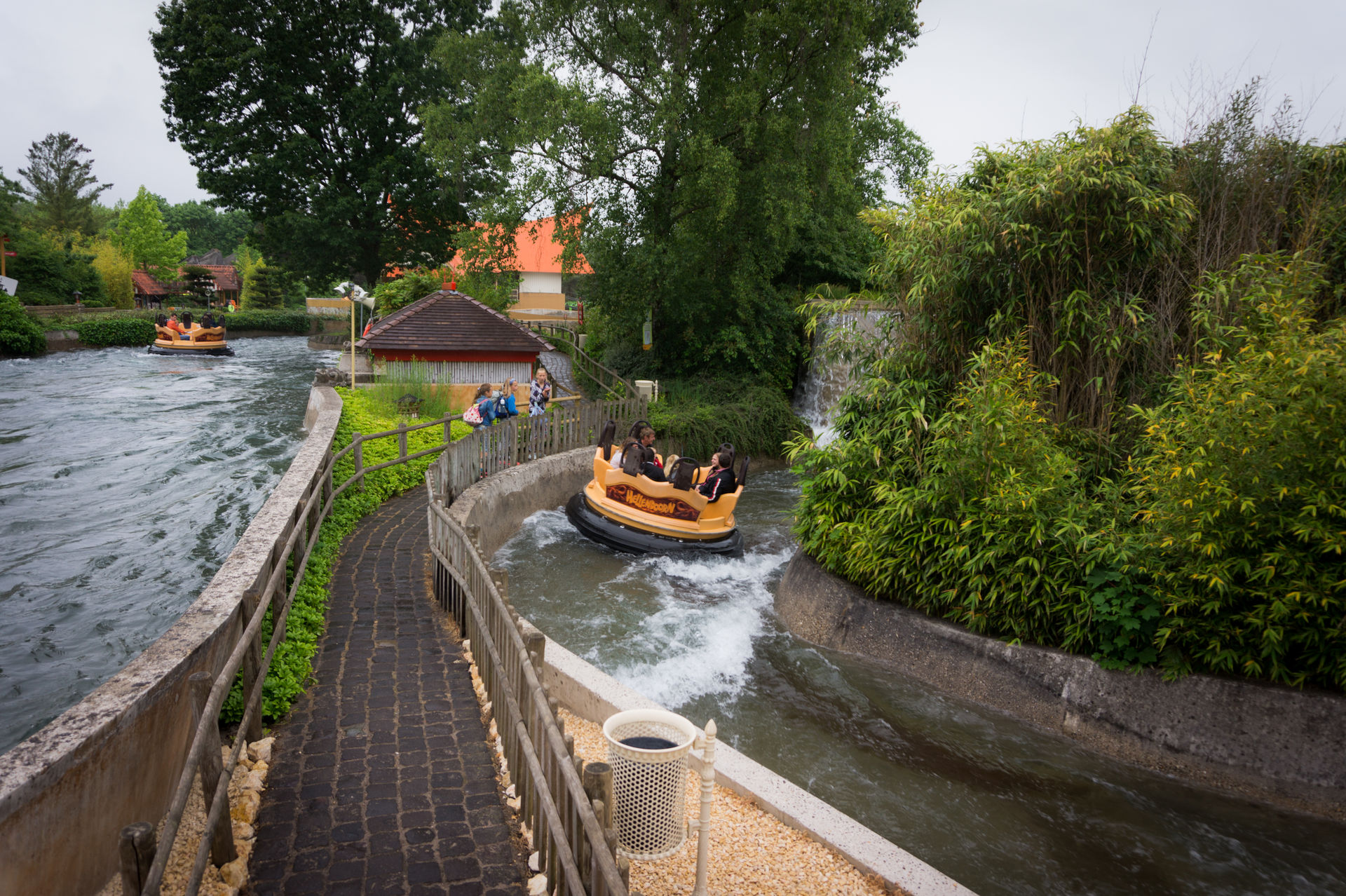 Dem Wetter gegenüber ein wenig underdressed, immerhin sagten diverse Wetterberichte Sonne und angenehme Temperaturen statt sehr frischen klimatischen Verhältnissen mit dauerhaften Niesel- und anderen Arten von Regen voraus, ging es nach den obligatorischen Ticketkauf so gleich in den Park. An der Monorail vorbei führt der Weg schnurstracks zum ersten Highlight des Parks der Mackschen Wildwasserbahn Wild Waterval.