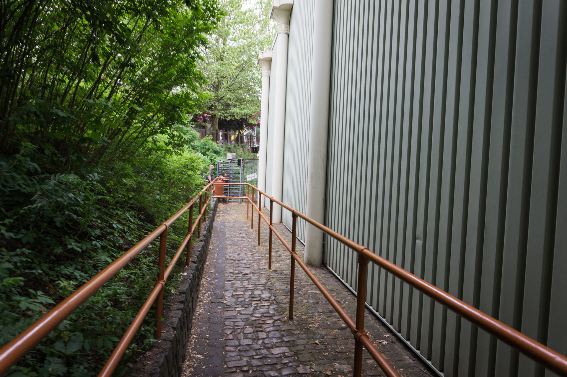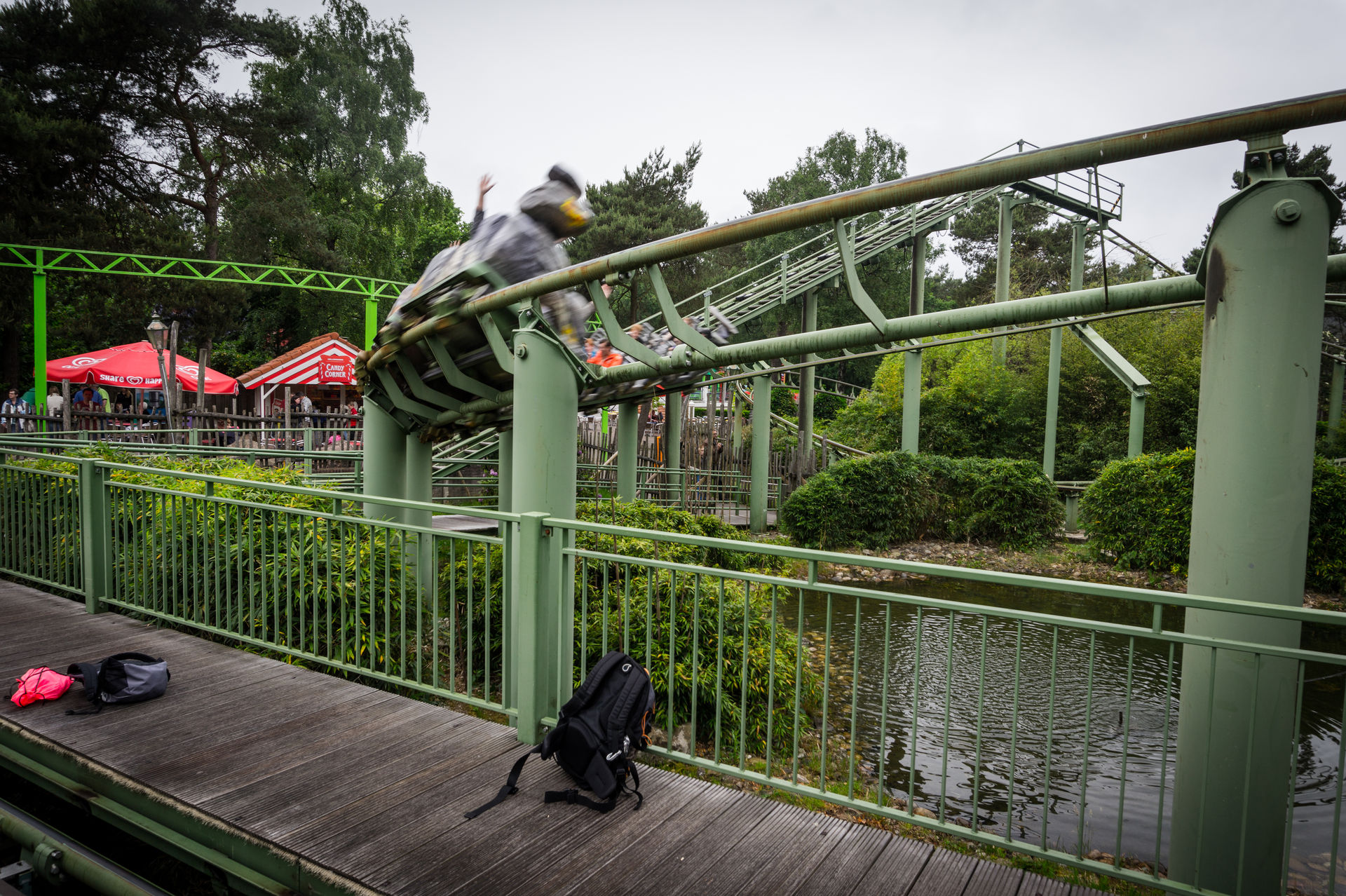 Vekoma, zumindest was ihre Gestaltung angeht. Dabei erinnert die äußerliche Aufmachung und ein Großteil der Warteschlange der Rioolrat an die Achterbahn Raptor Attack des englischen Freizeitparks Lightwater Valley, nur halt in klein und nicht ganz so eindrucksvoll. Nach dem Abstieg führt der Weg schnell in Richtung der Station, wo auch schon die Kanalratte auf einem wartet.