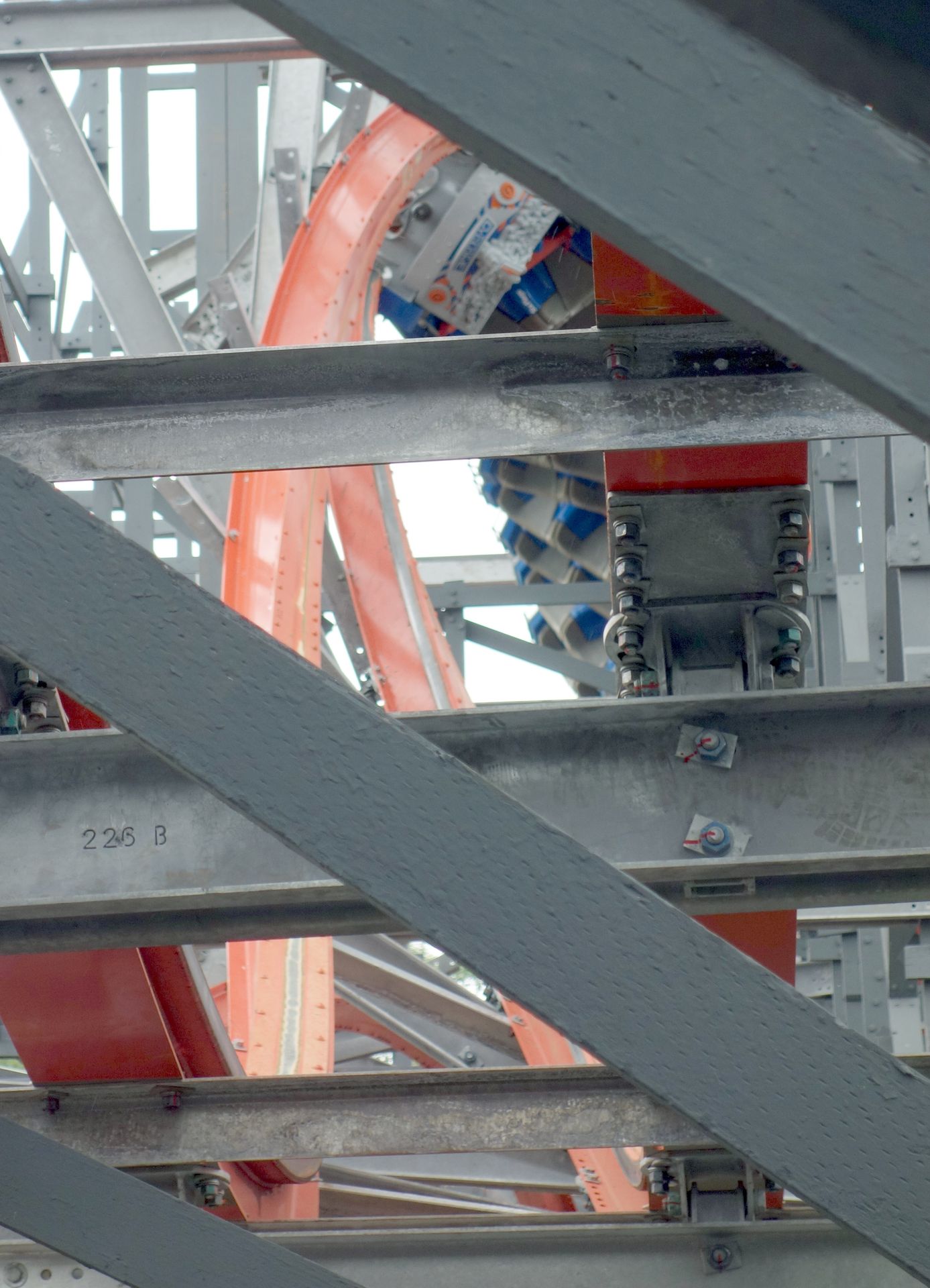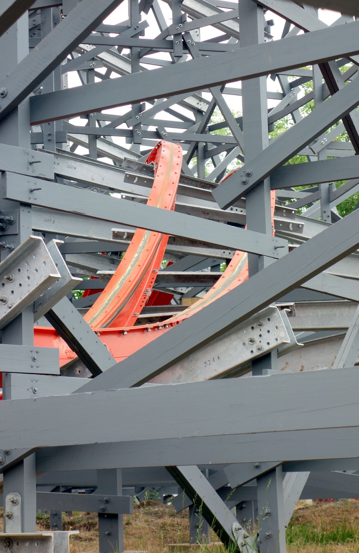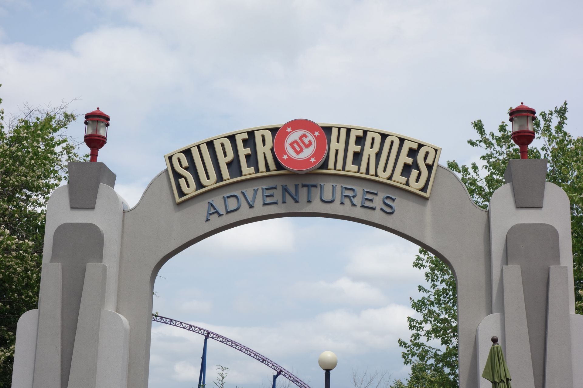 Dessen Ausgang mündet in eine leichte Kurve, die mitten durch die Stahlrahmen in Form des Superman-Logos führt.