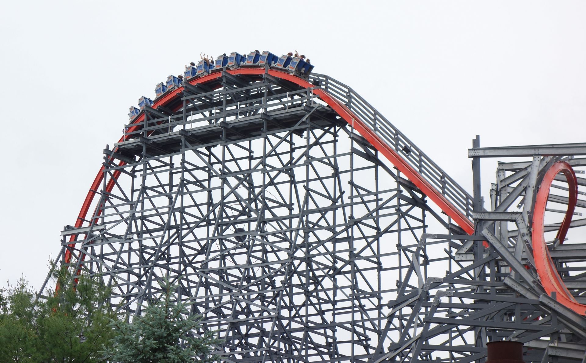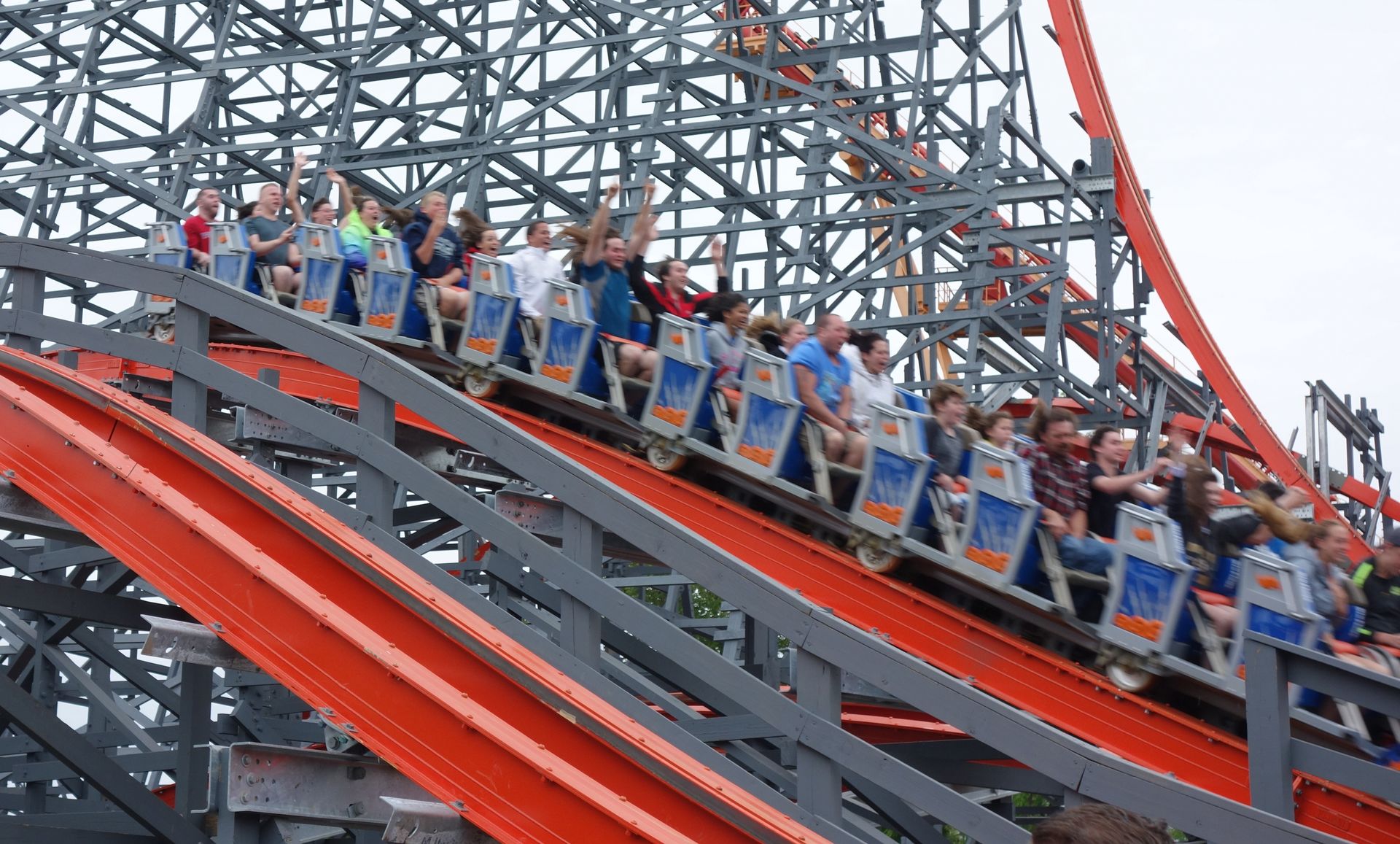 Mit etwa einer halben Stunde hatte der 63 Meter hohe Megacoaster die längste Wartezeit an diesem Tag.
