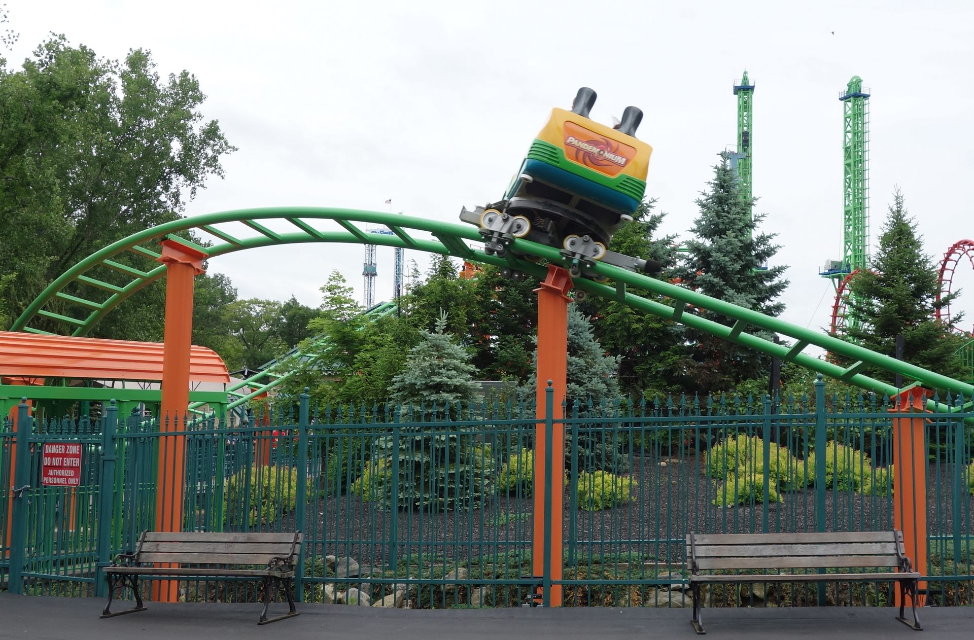 Da steht seit 2000 der vom Schwesterpark Kentucky Kingdom übernommene normale Boomerang mit Namen Flashback..
