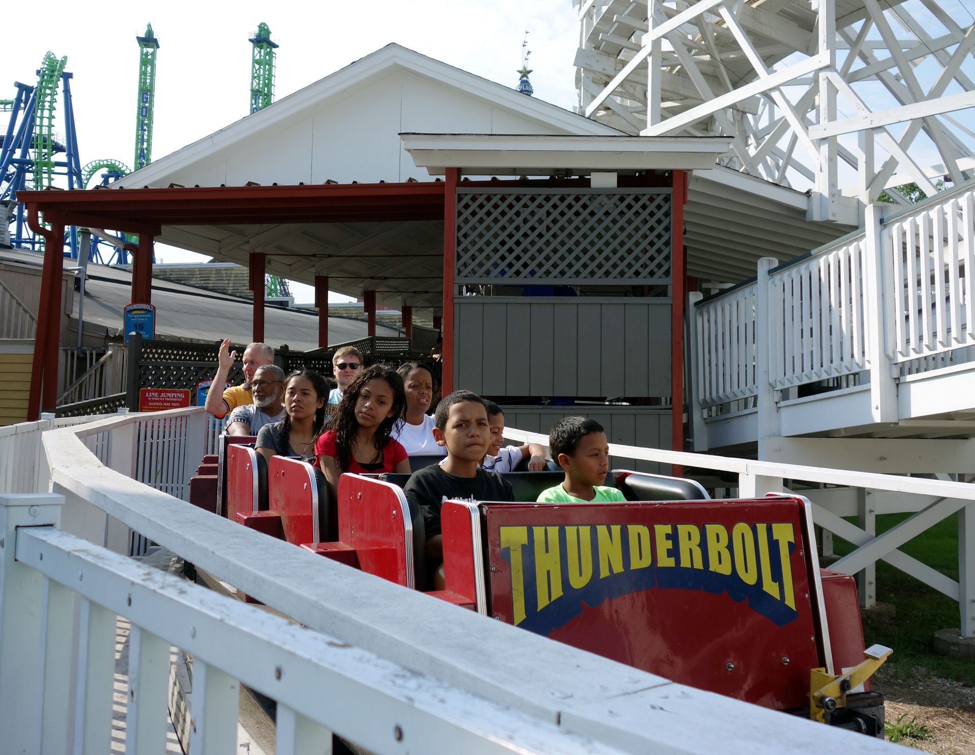 Und zwar auf der ältesten Achterbahn in diesem Park.