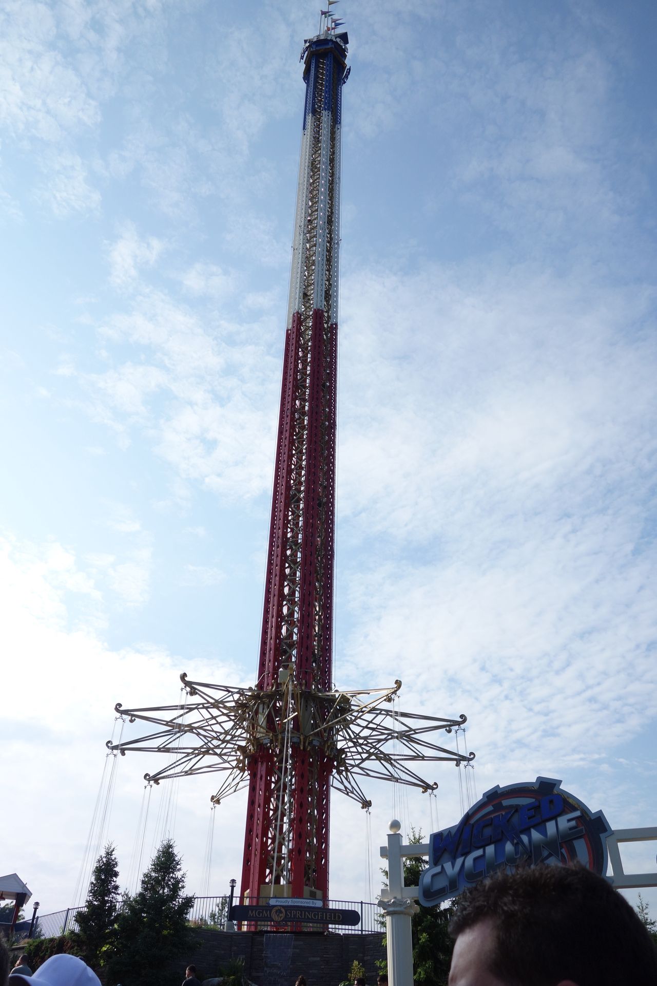 Am Tower dauerte es noch etwas länger, sodass ich die Zeit für etwas nutzte, was ich schon den ganzen Tag hätte tun sollen. Denn viele von uns hatten sich schon längst einen Refill-Becher zugelegt, den man die gesamte Saison in allen Six Flags Parks unbegrenzt auffüllen lassen kann. Da wir noch zwei weitere Parks auf der Tour besuchen sollten und ein einzelnes Getränk schon über 4$ kostete, waren die 21$ für den Becher auch jetzt noch eine lohnende Investition. Seit dem Mittagessen hatte ich nichts mehr getrunken, da ließ der erste Nachfüll-Vorgang gar nicht so lange auf sich warten...