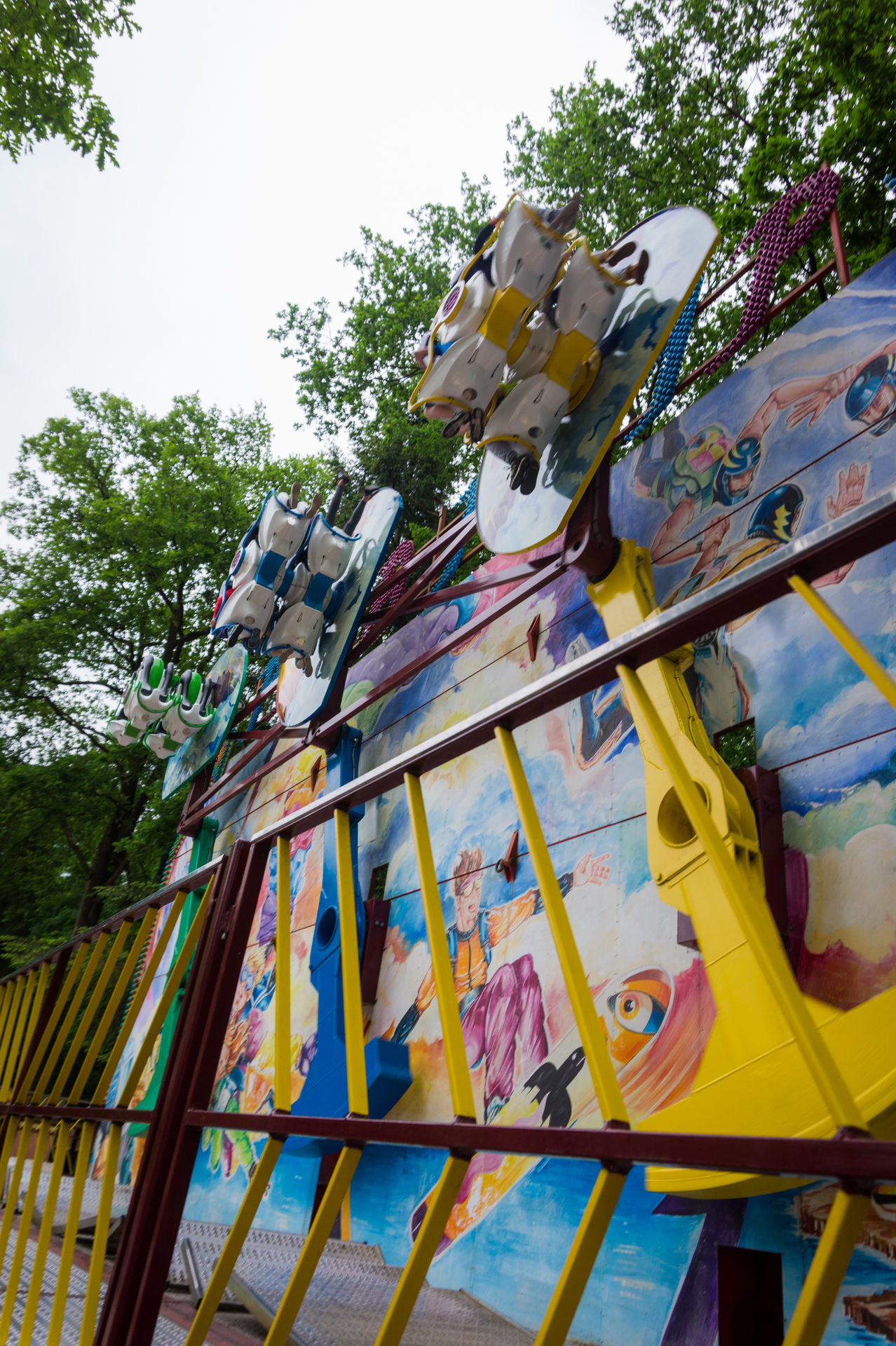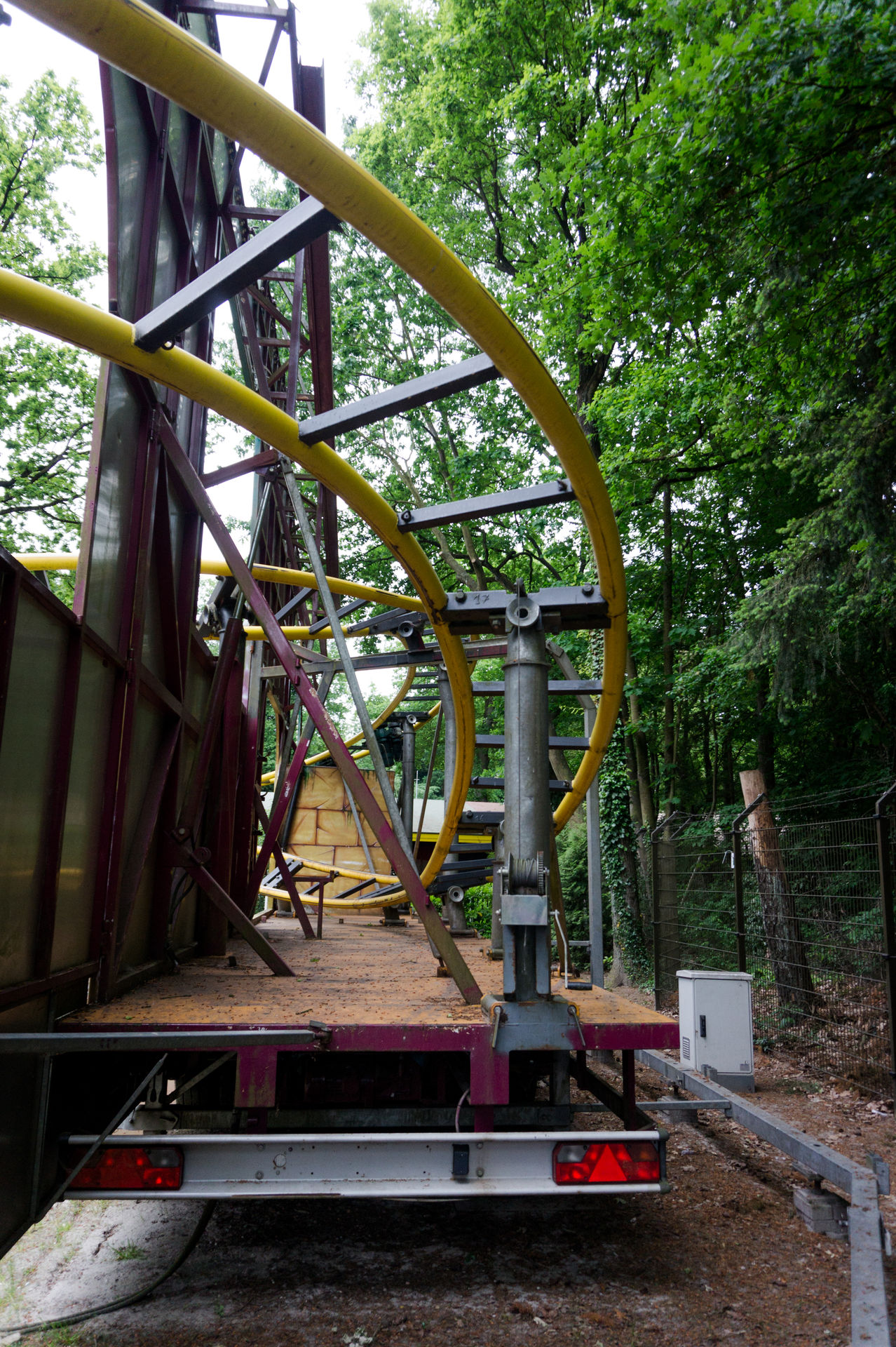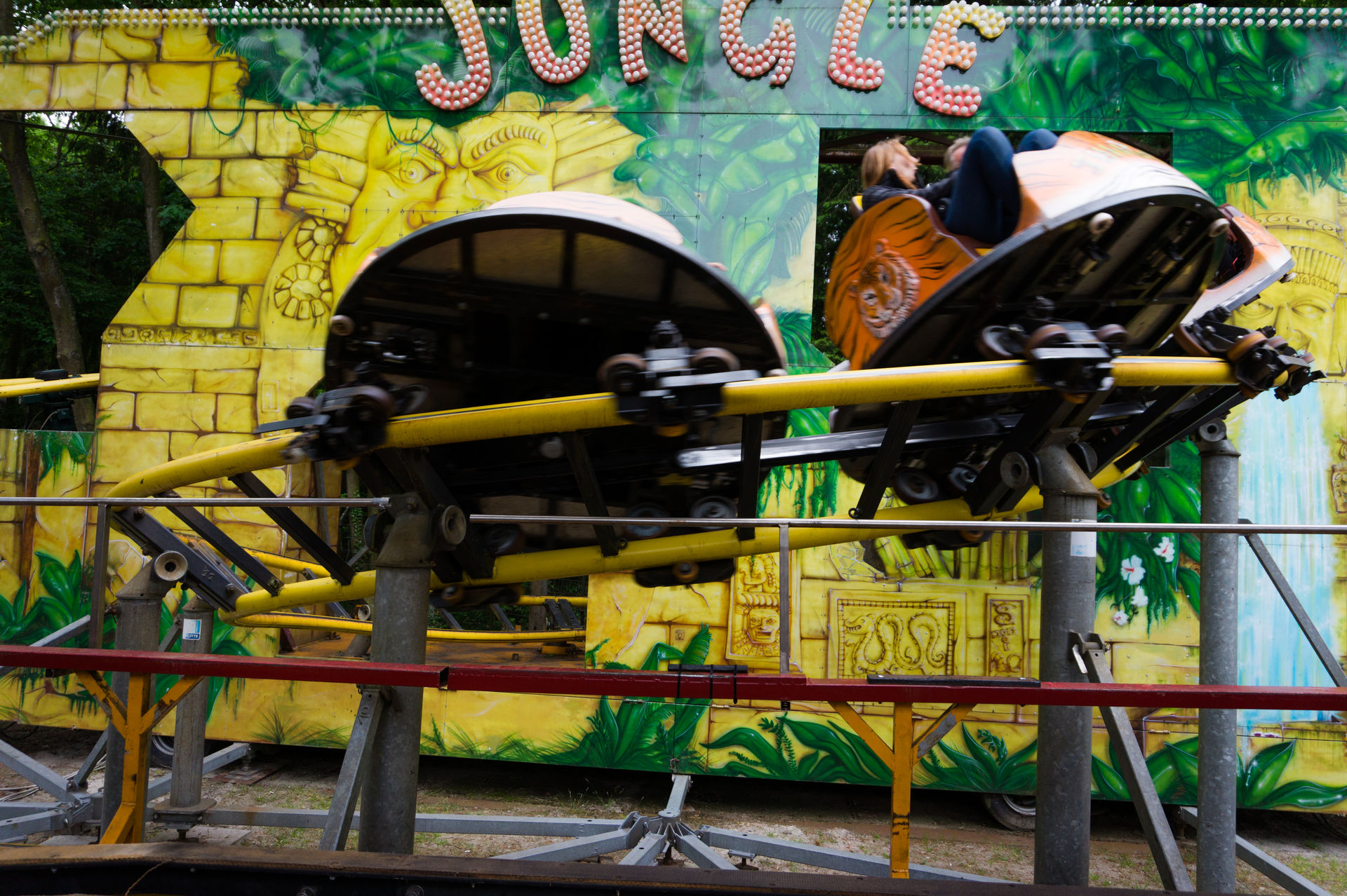 Die Gondeln der Achterbahn Jungle erinnern von außen sehr grob an die Chaisen von