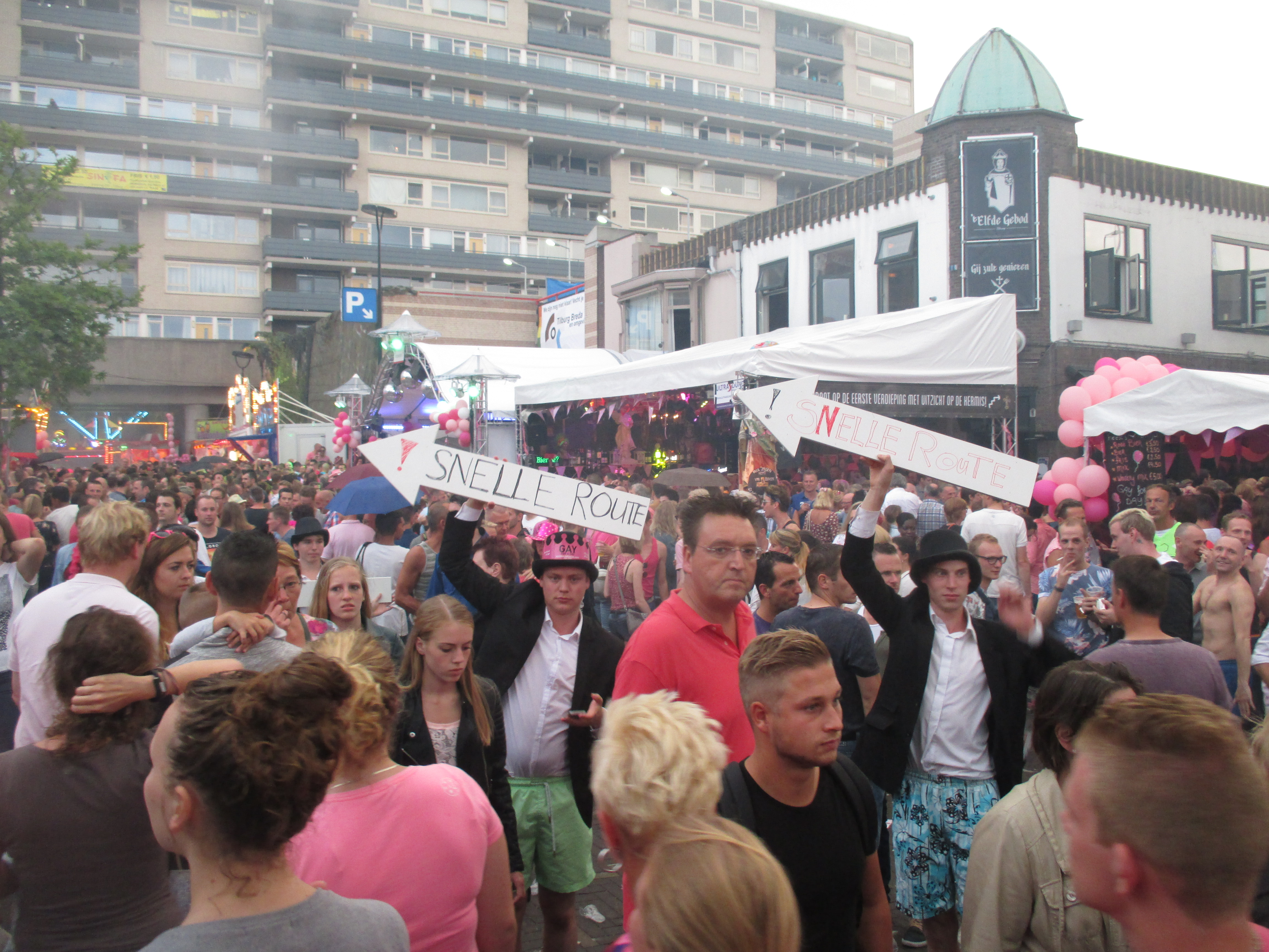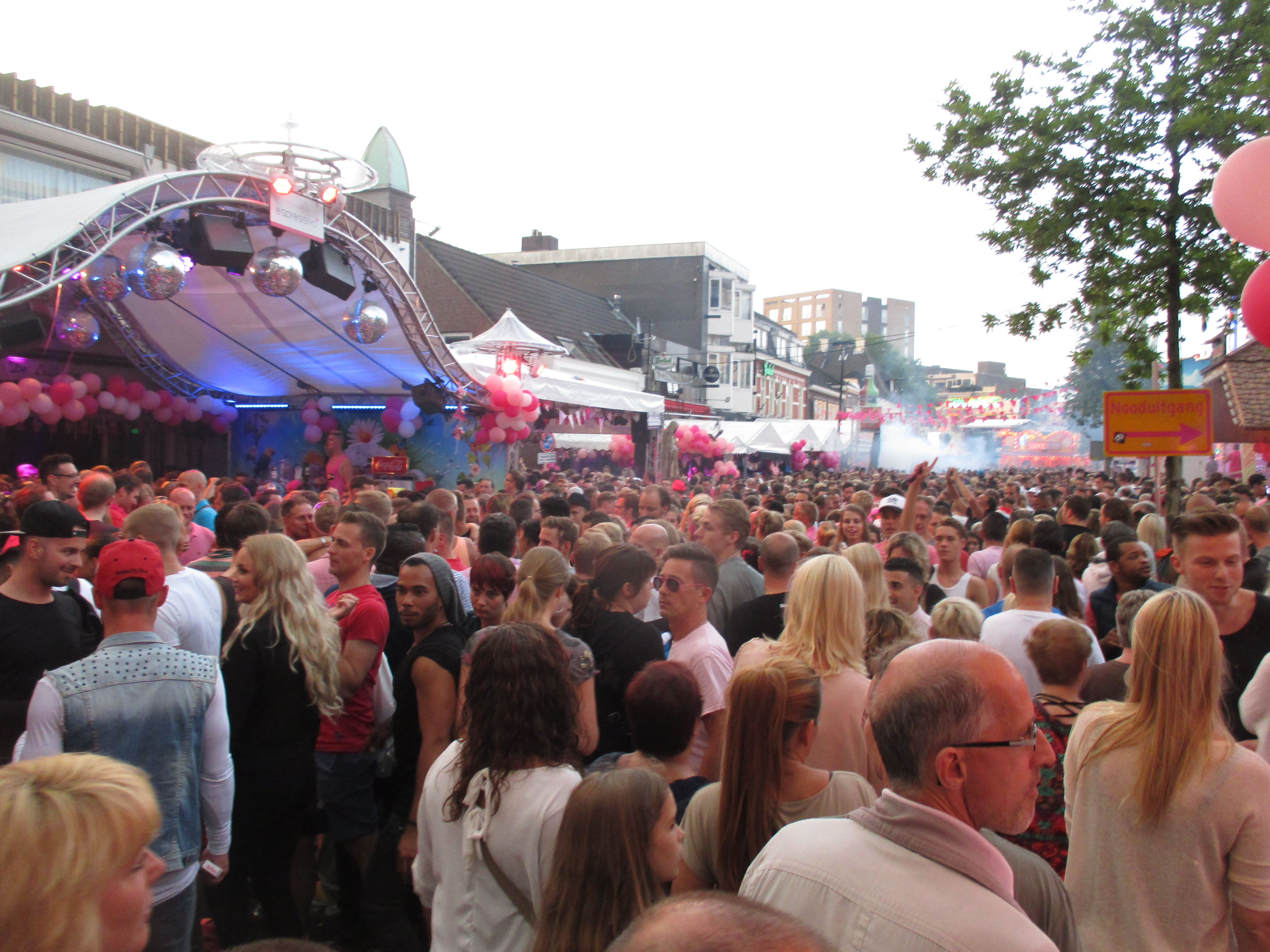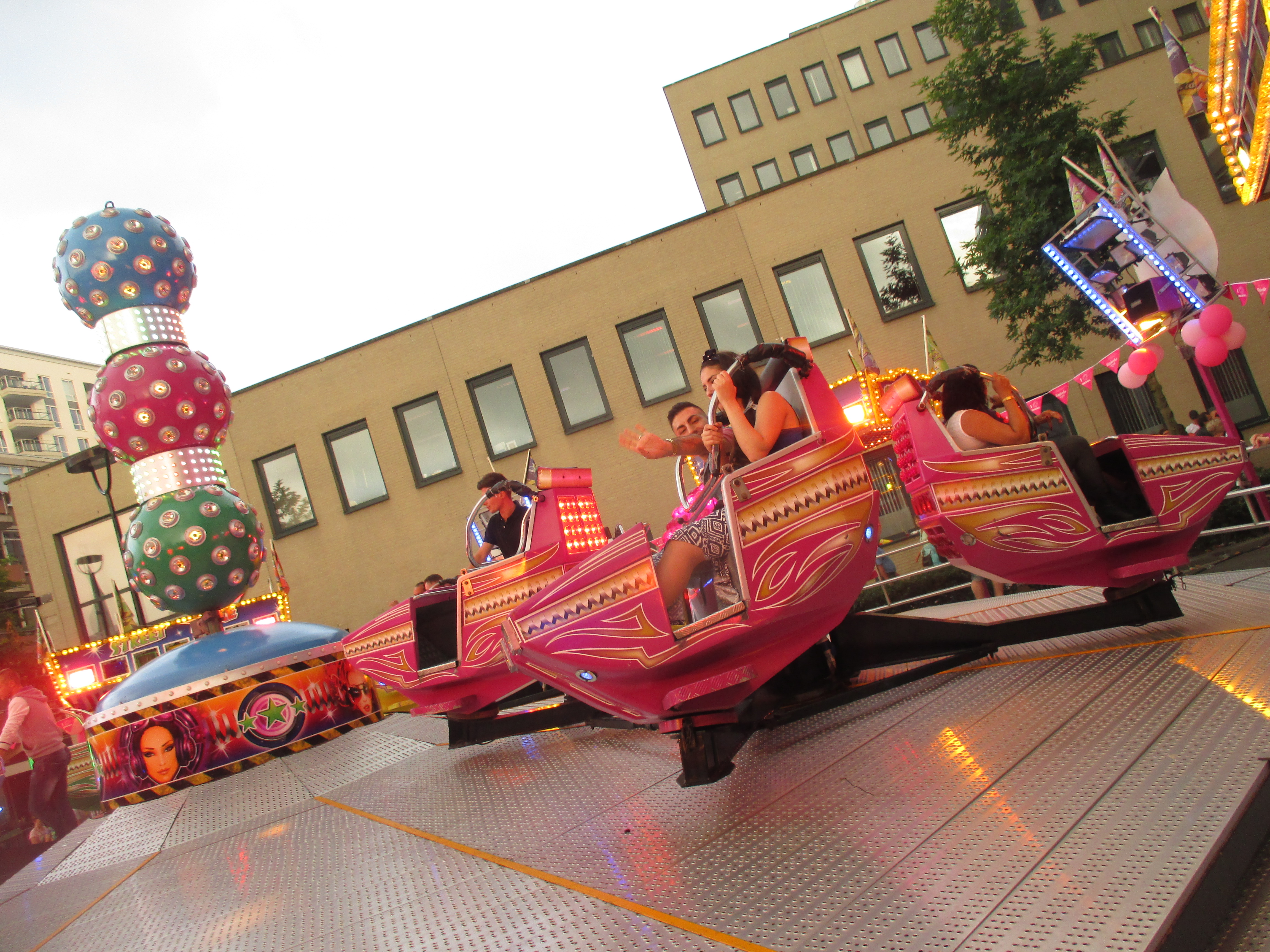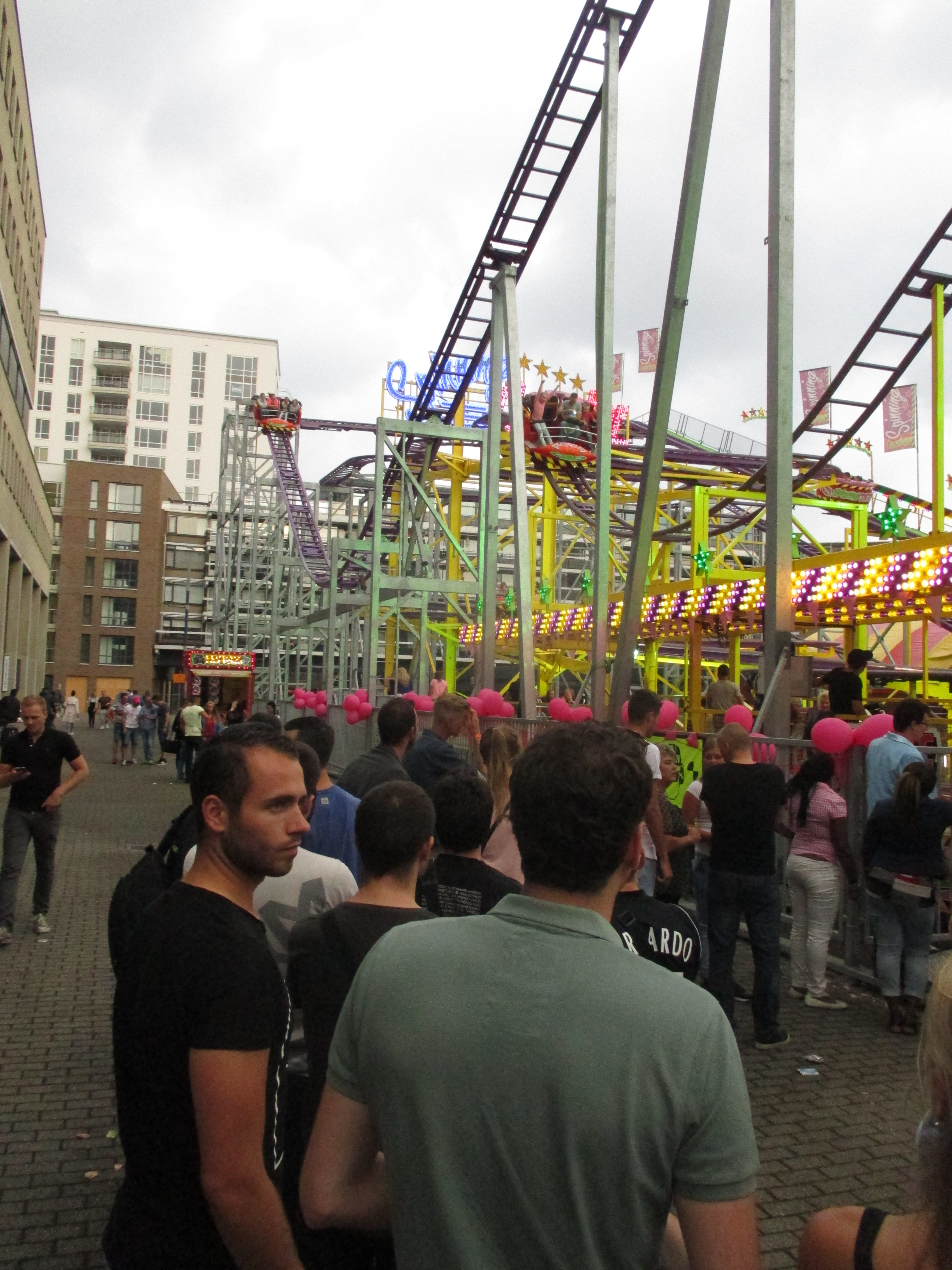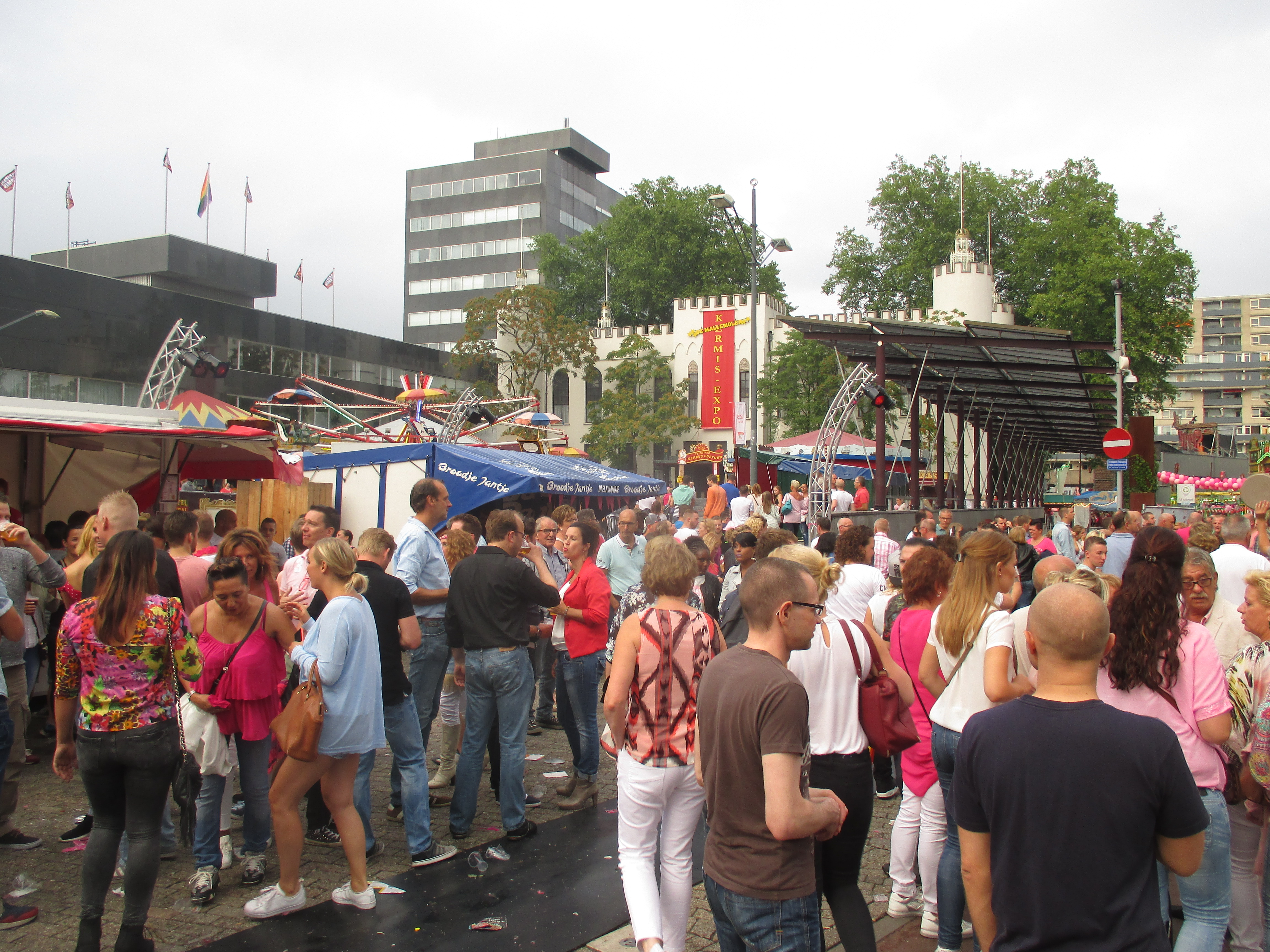 Nachdem wir das Wohnhaus, welches Stadhuisplein und Palaisring voneinder trennt, unterwandert haben, gelangen wir auf den recht lauten und vollen Teil der Veranstaltung. Auf der einen Seite Karussells auf der anderen Straßenseite die Clubs, die sich in puncto Musikuntermalung einen Wettstreit hier leisten.