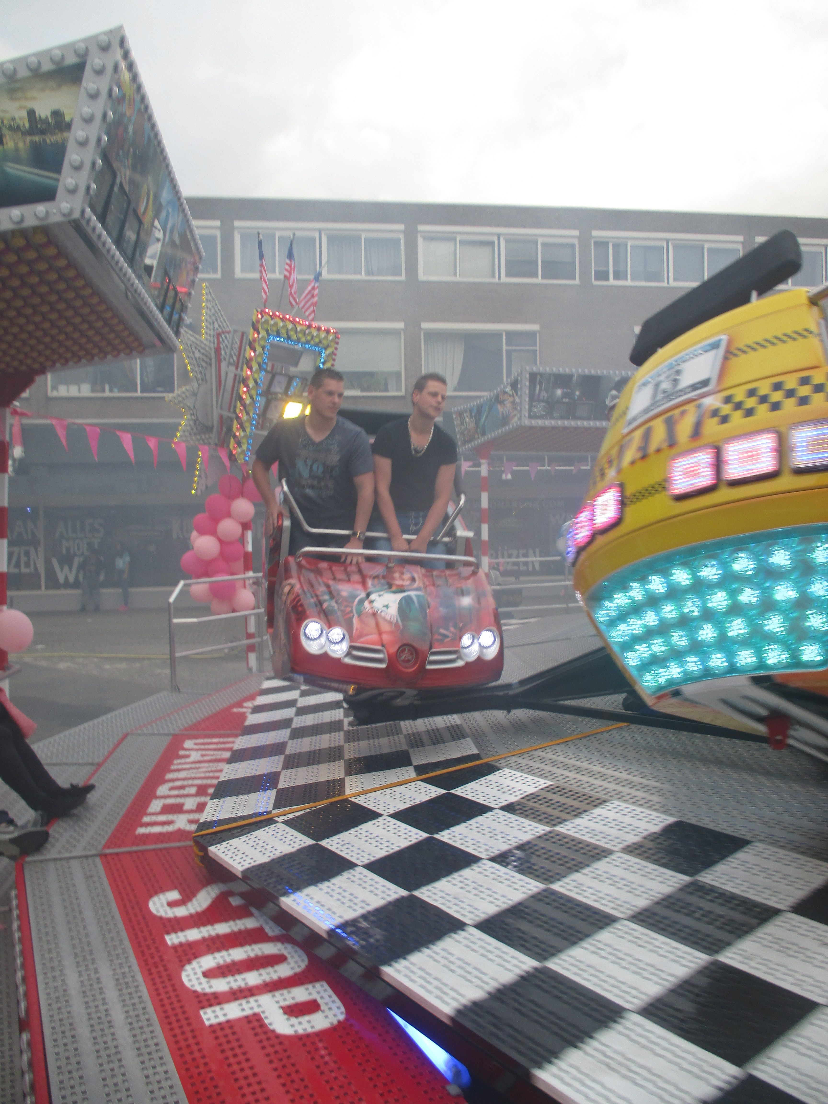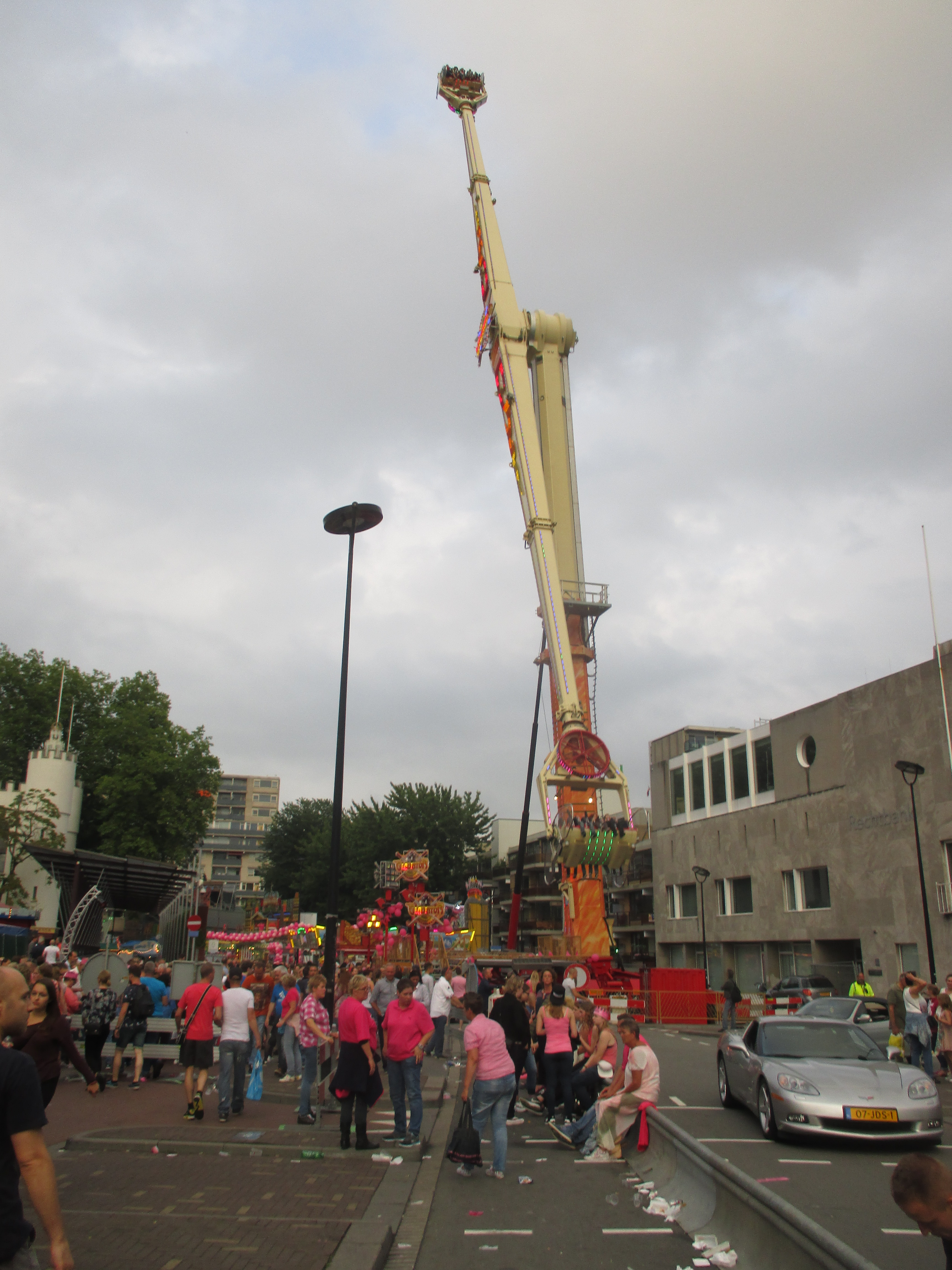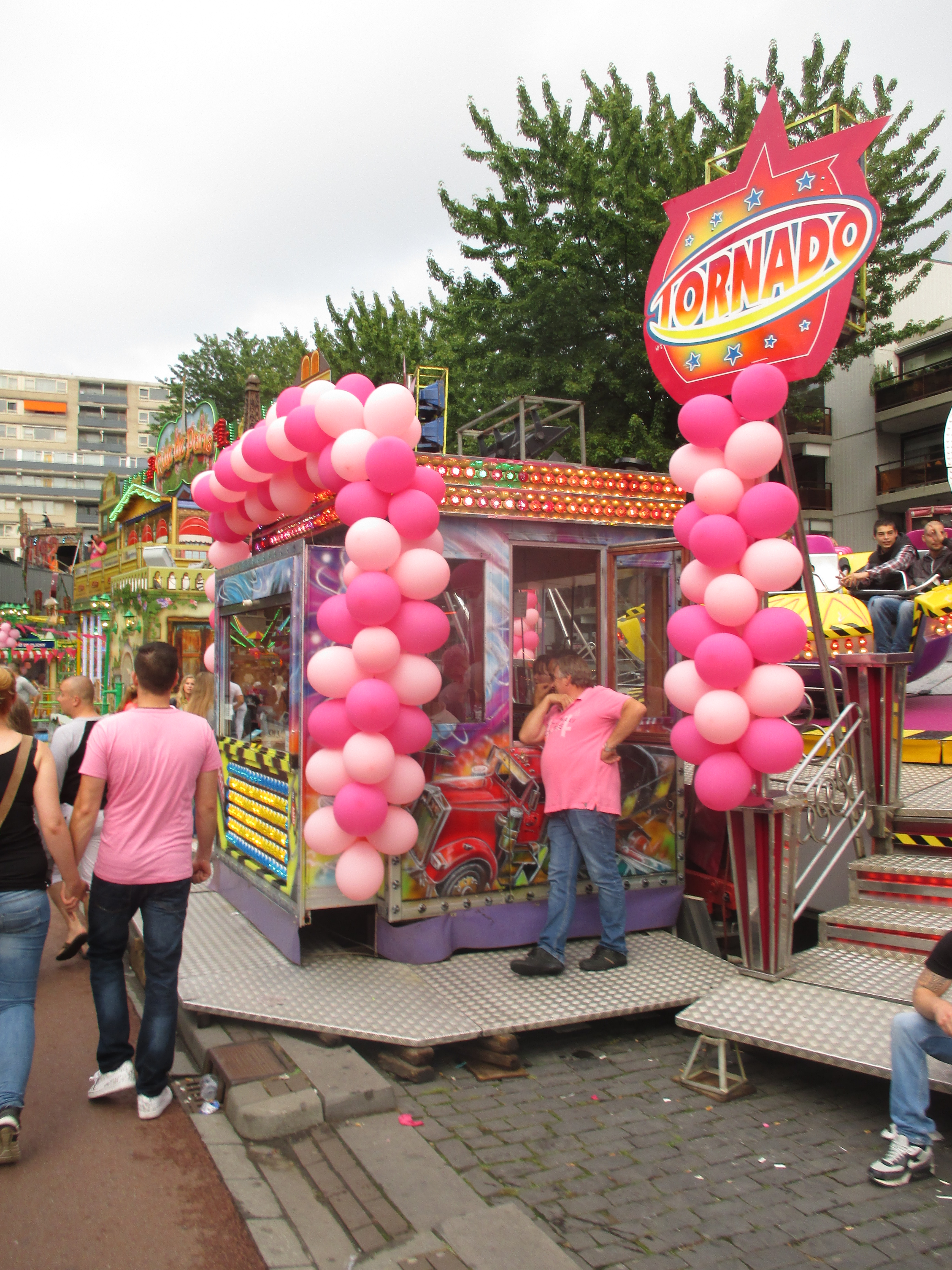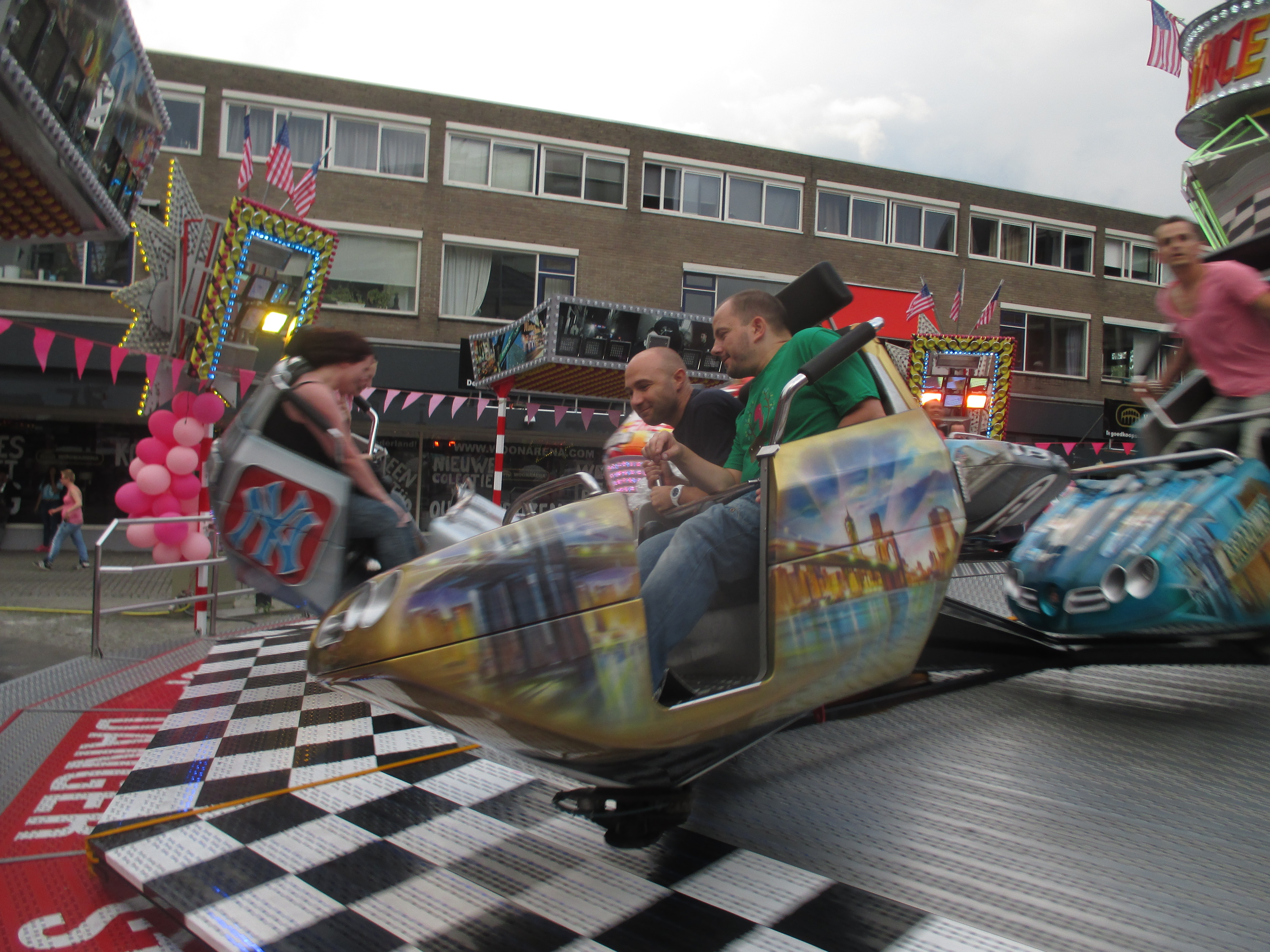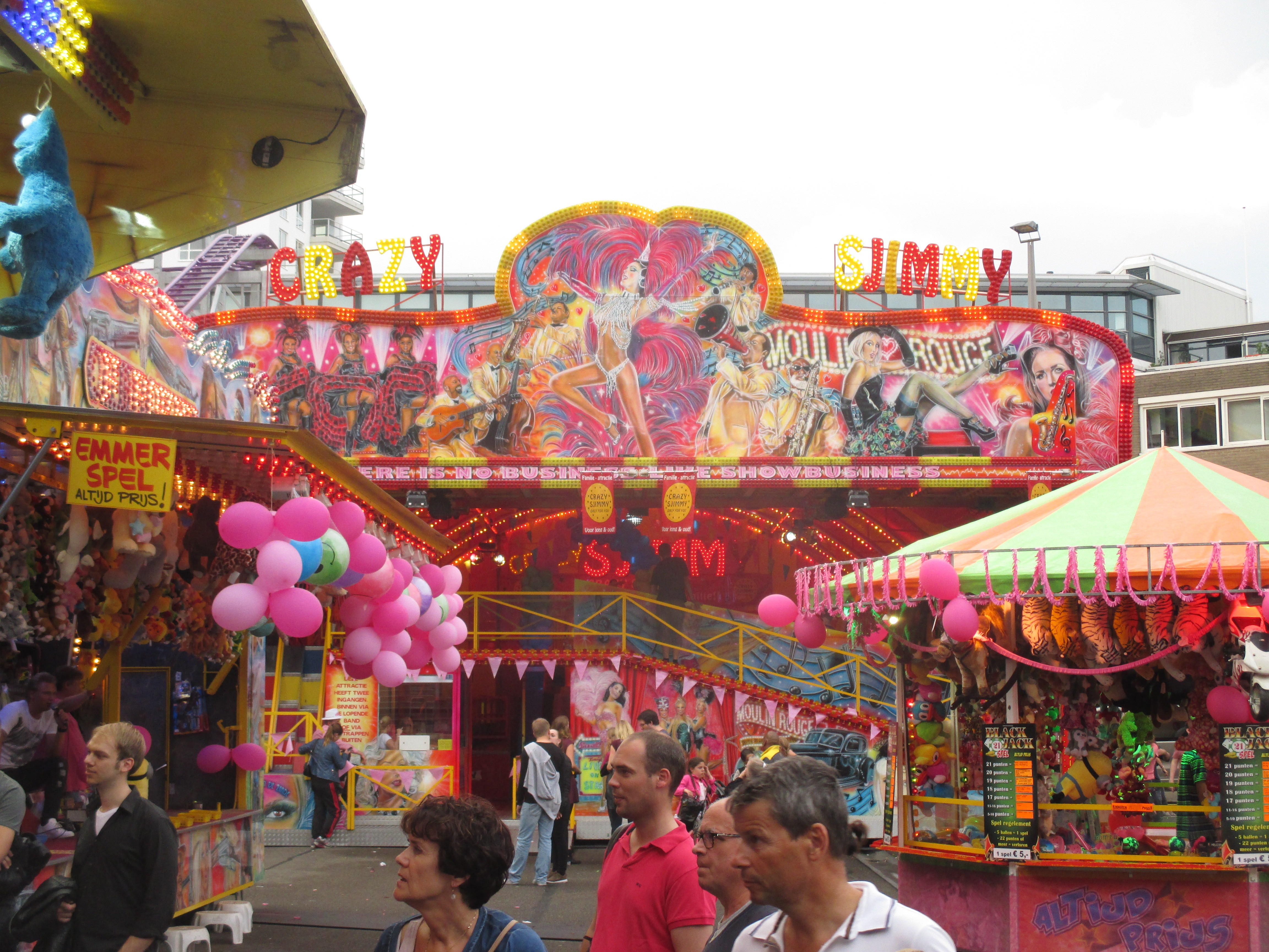 Nachdem wir das Wohnhaus, welches Stadhuisplein und Palaisring voneinder trennt, unterwandert haben, gelangen wir auf den recht lauten und vollen Teil der Veranstaltung. Auf der einen Seite Karussells auf der anderen Straßenseite die Clubs, die sich in puncto Musikuntermalung einen Wettstreit hier leisten.