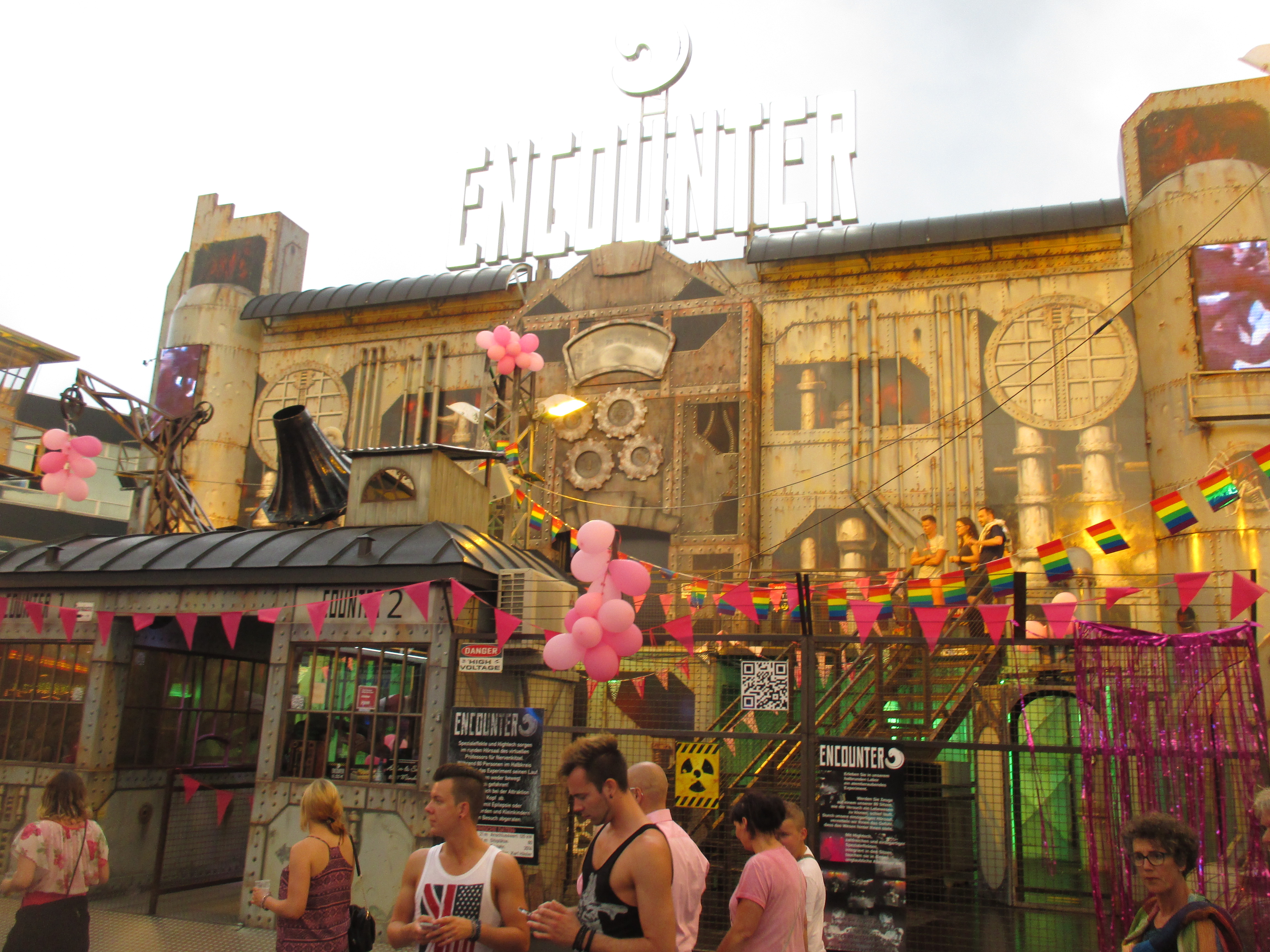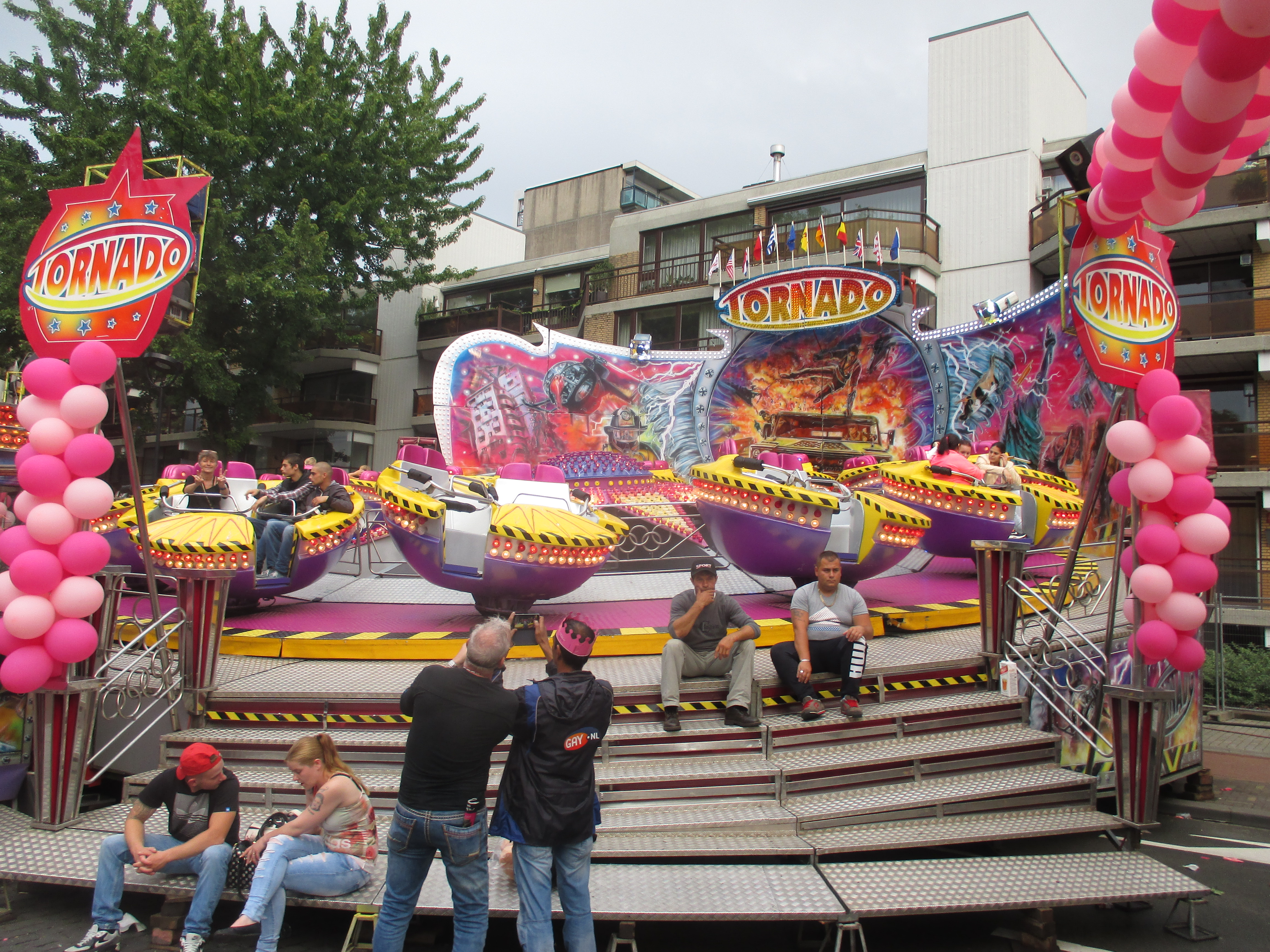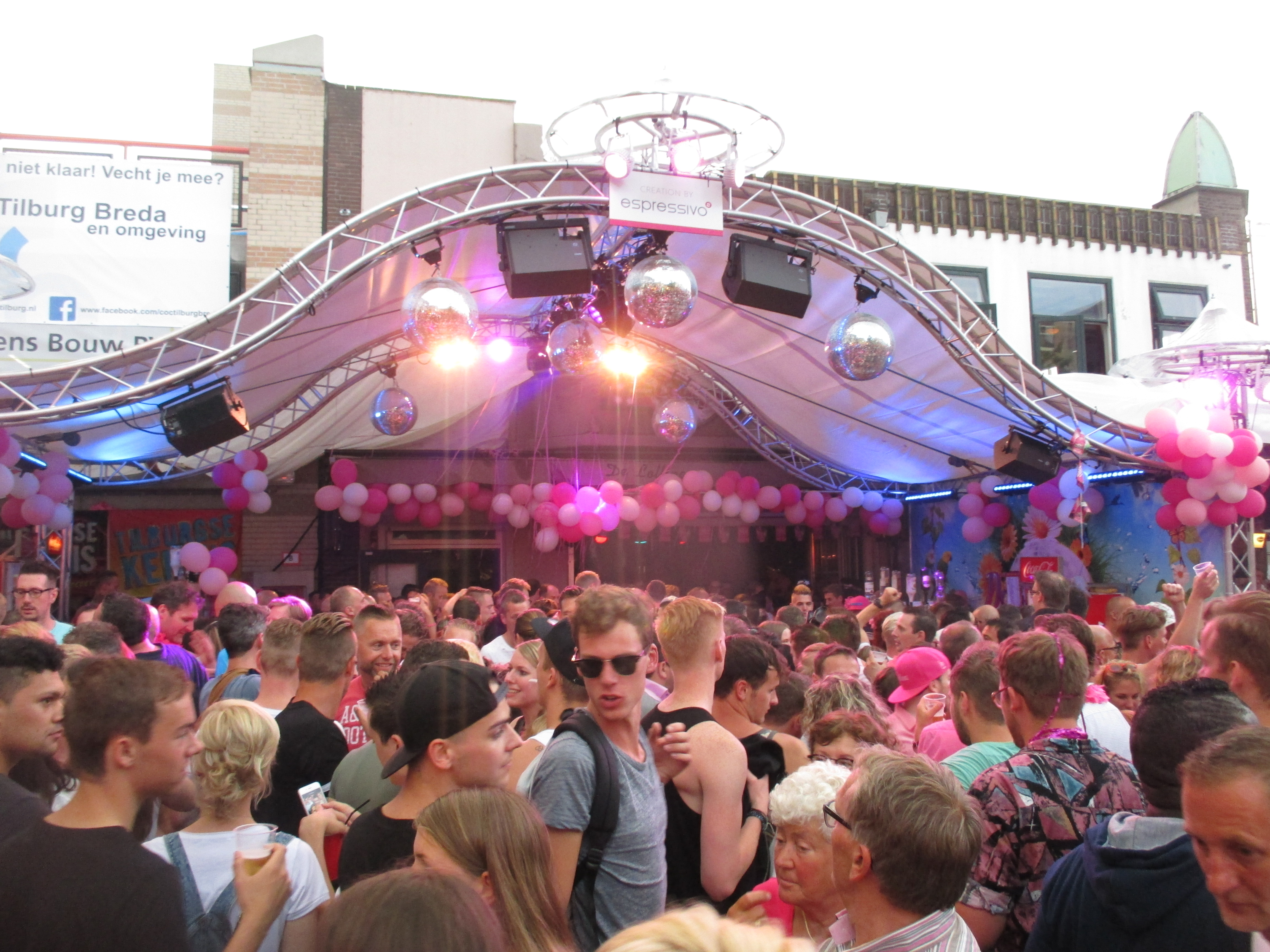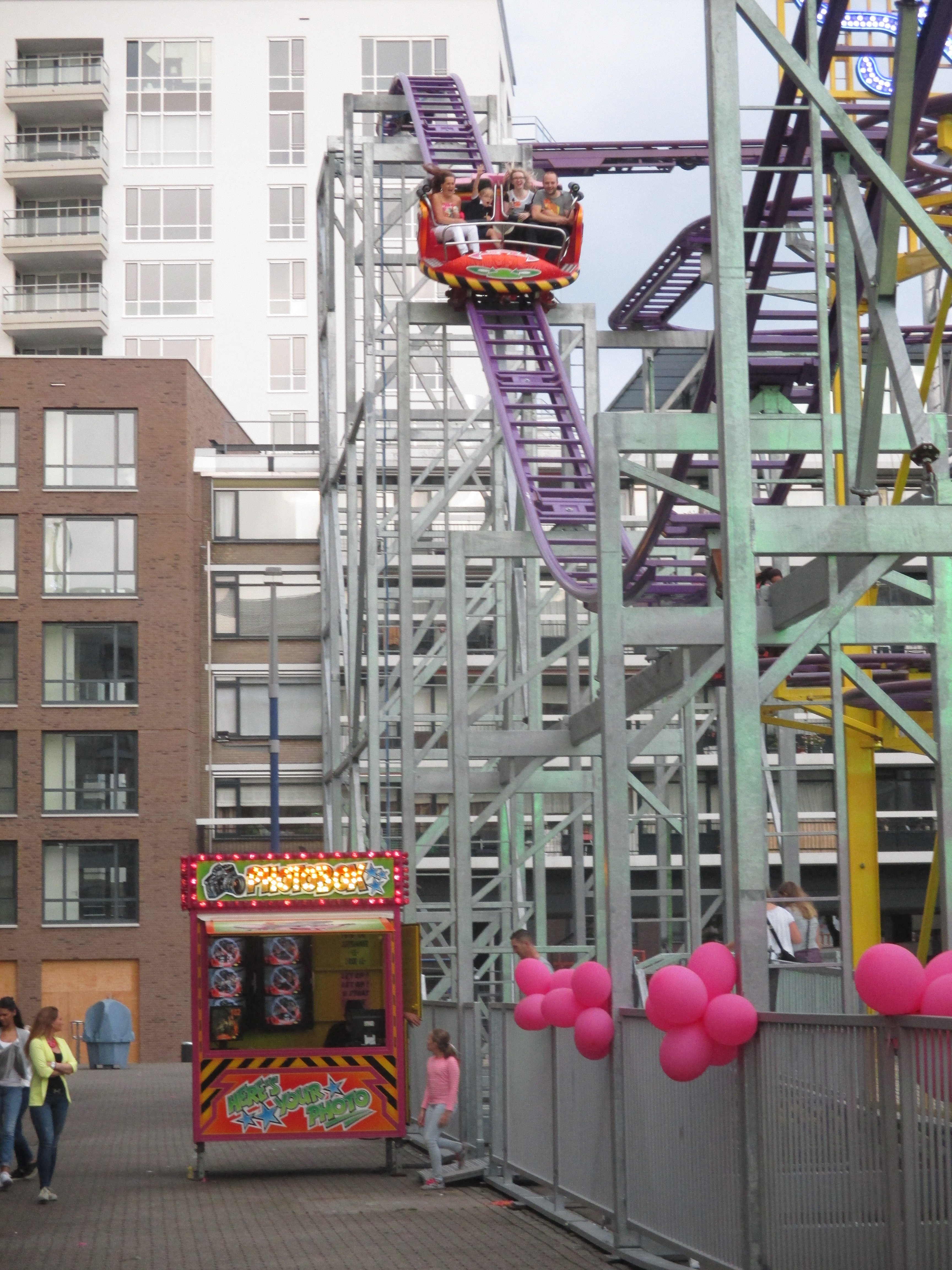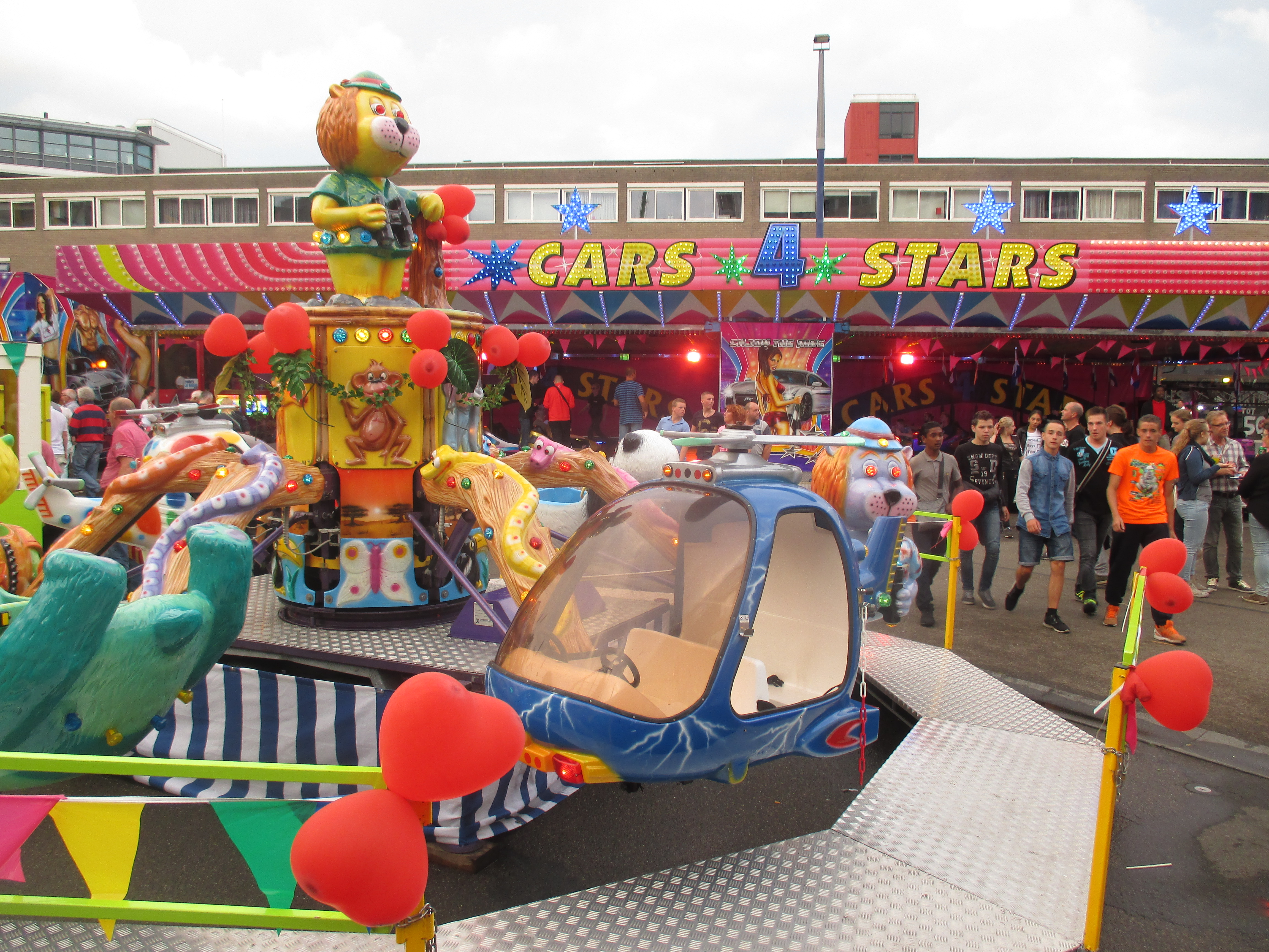 Nachdem wir das Wohnhaus, welches Stadhuisplein und Palaisring voneinder trennt, unterwandert haben, gelangen wir auf den recht lauten und vollen Teil der Veranstaltung. Auf der einen Seite Karussells auf der anderen Straßenseite die Clubs, die sich in puncto Musikuntermalung einen Wettstreit hier leisten.