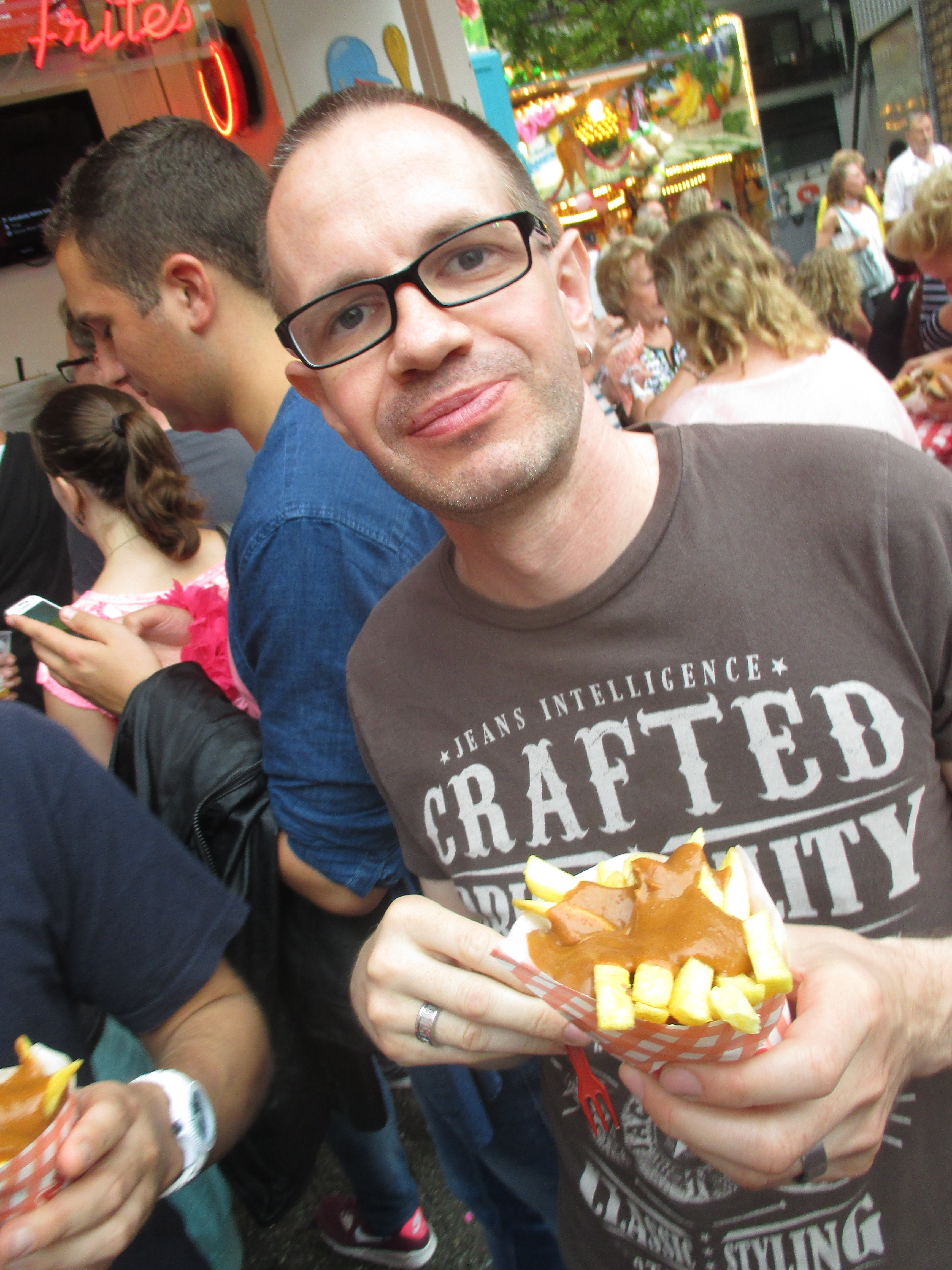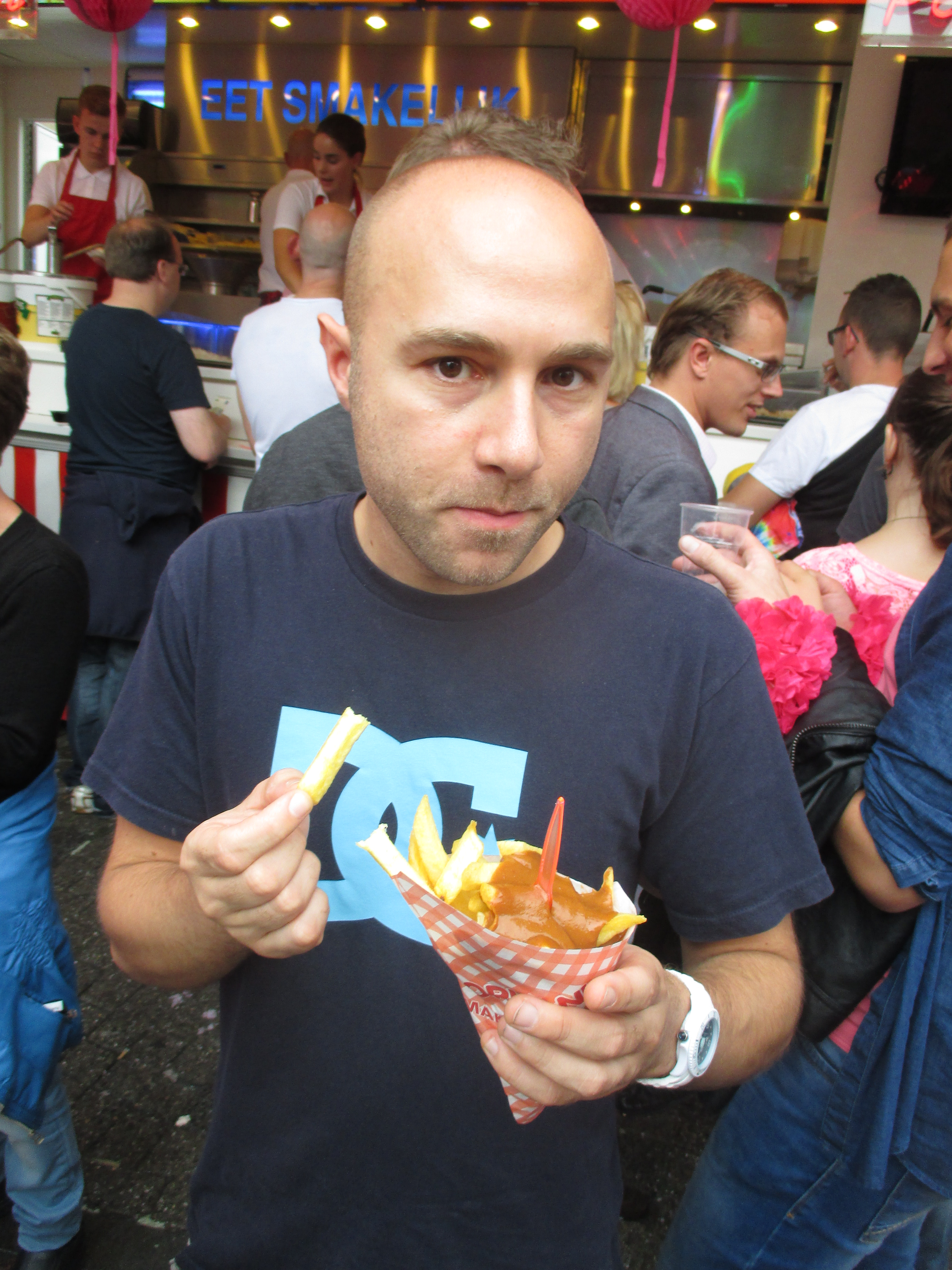 Gerade angekommen galt es erst mal, den Appetit zügeln: Rein in die Snackworld und Patat mit Pindasaus geordert.