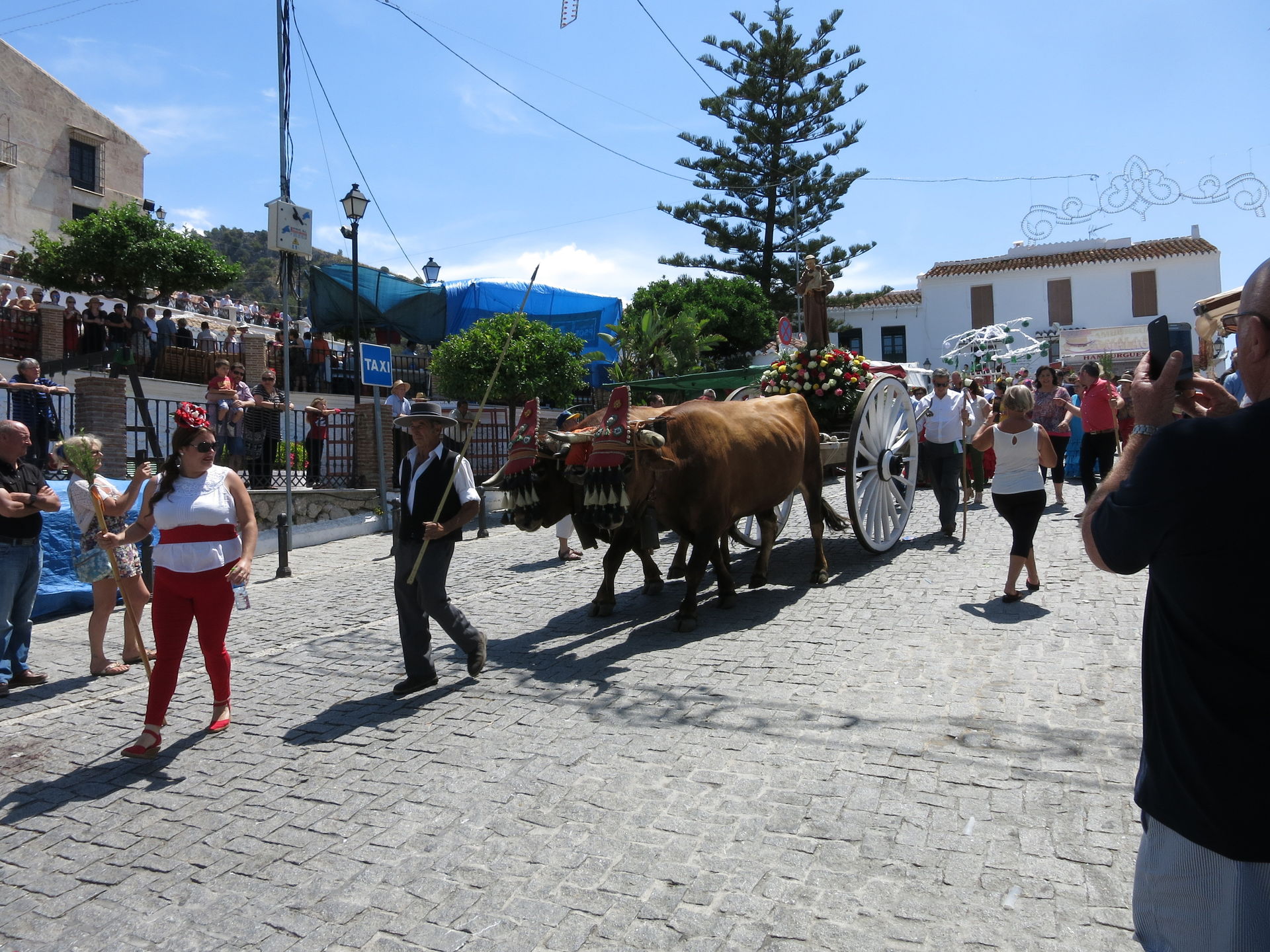 Die Feria (Kirmes) von Frigiliana wird zu Ehren ihres Patrons San Antonio von Padua am 13. Juni gefeiert. Der Heilige wird dabei auf einem von Ochsen gezogenen Karren von seiner Kirche aus zu einem Ruheareal am Río Higuerón gebracht.
