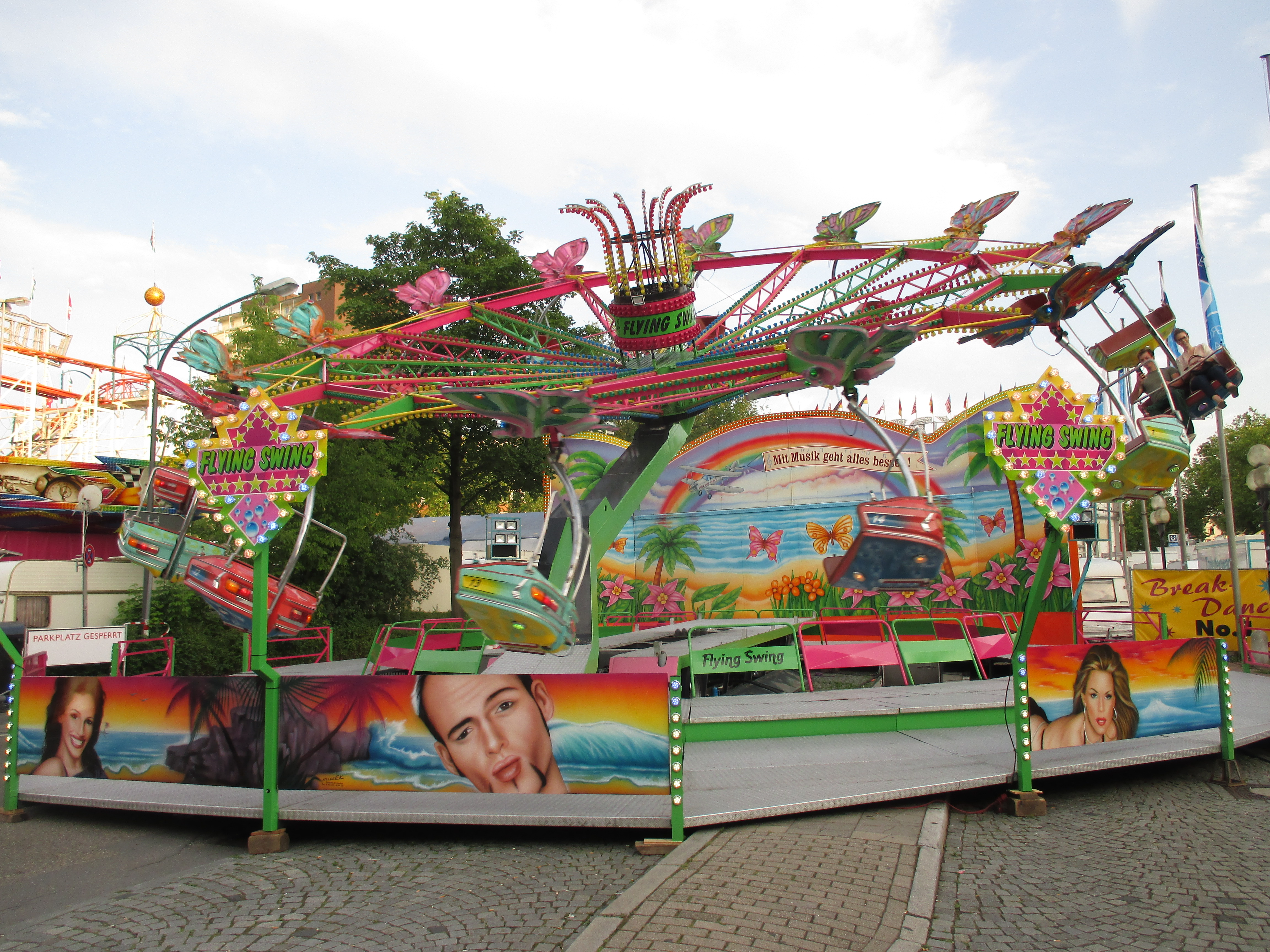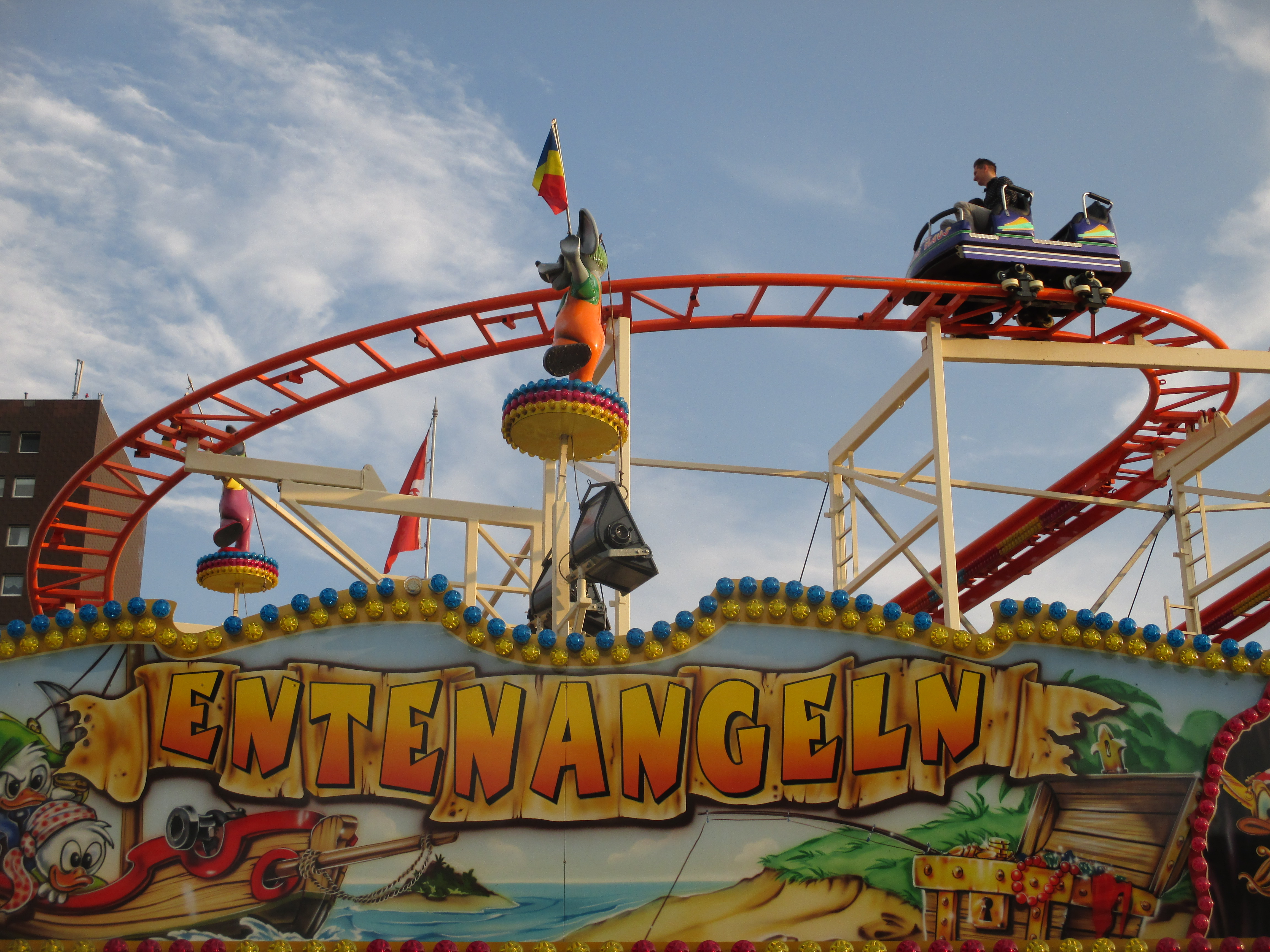 Null Rekommandierung an diesem Fahrgeschäft. Und wenn's auch auf Holländisch ist, ein bißchen mit der Stimme für Stimmung sorgen, sollte jeder Schausteller beherrschen.