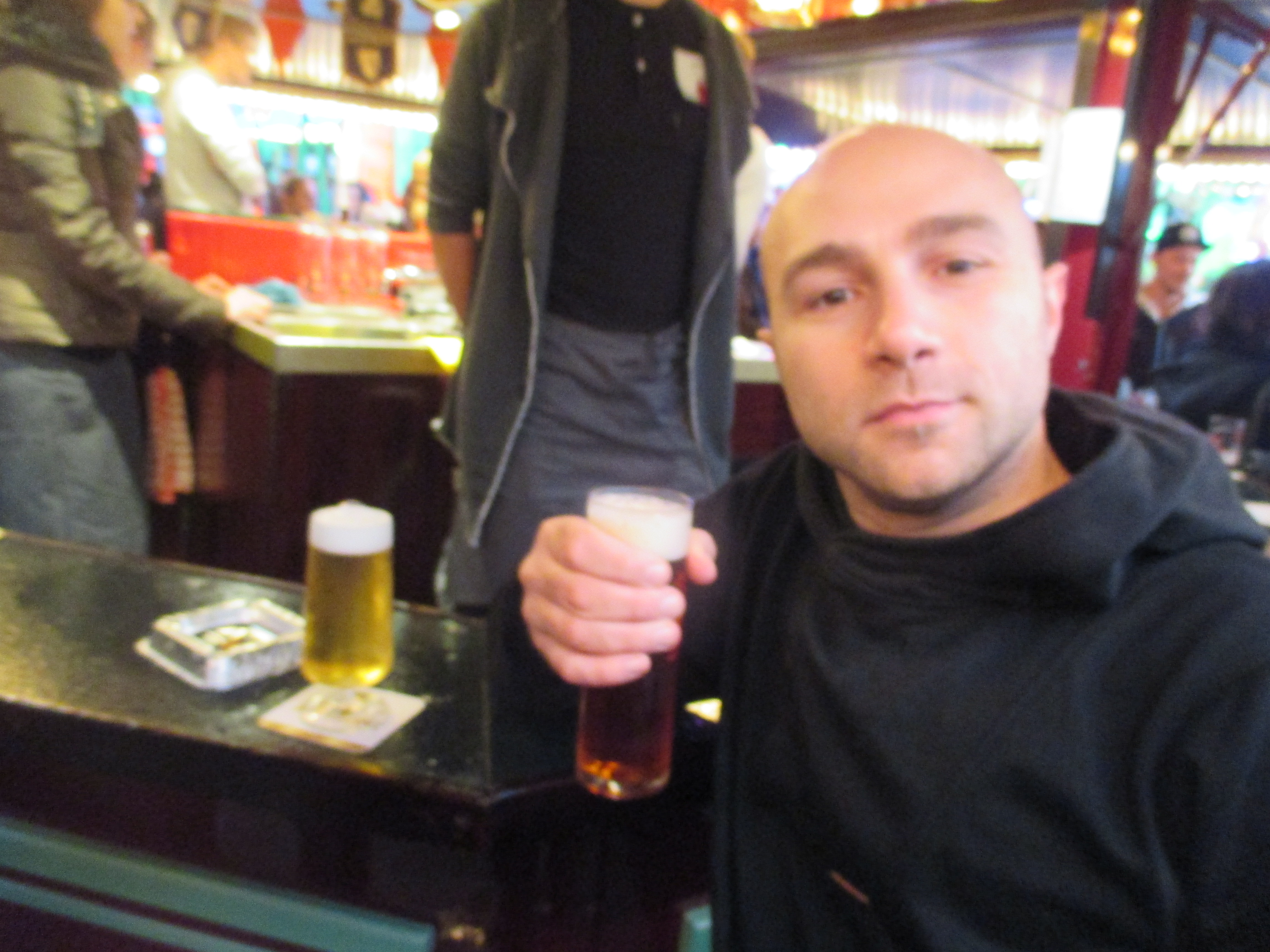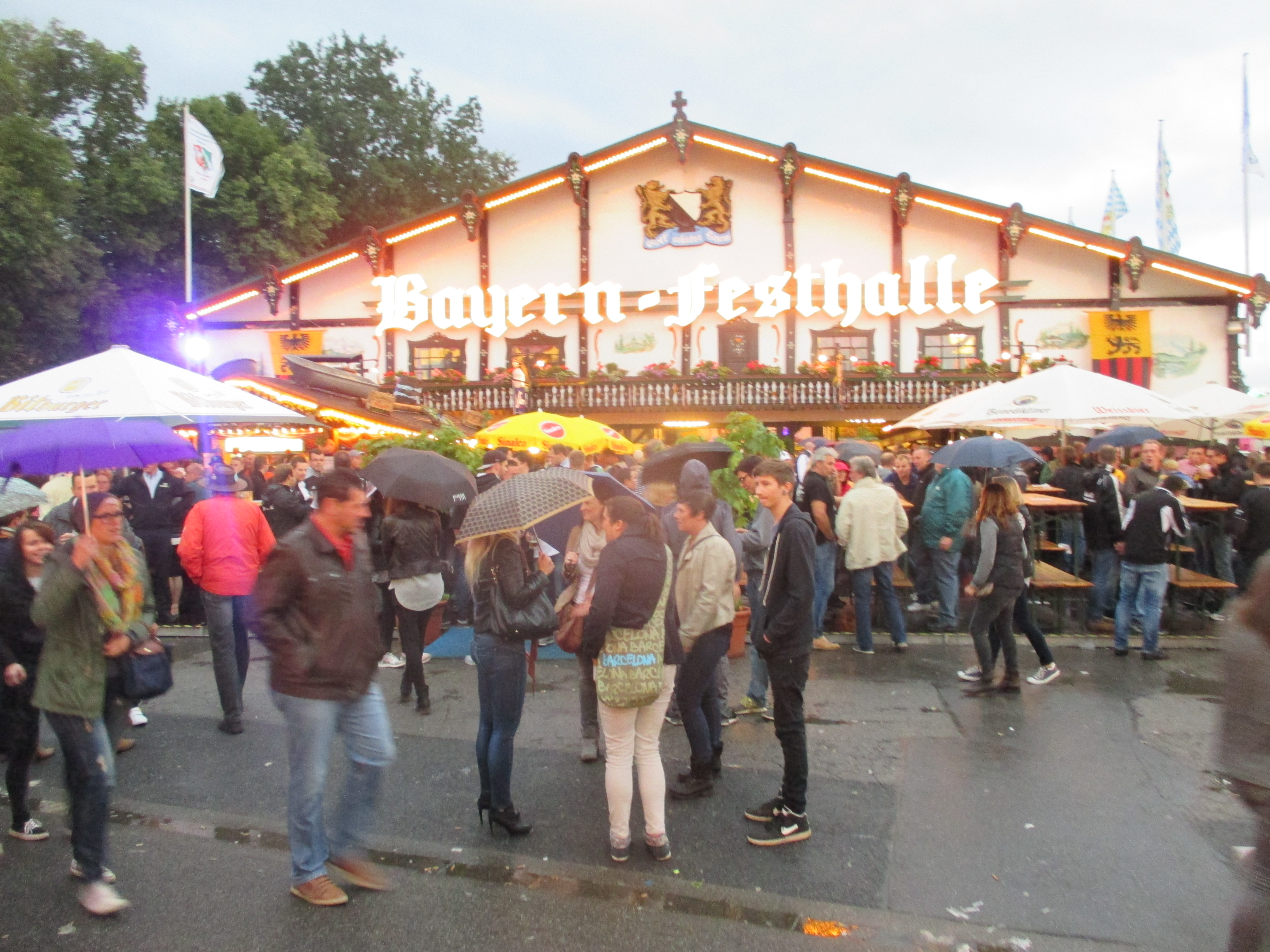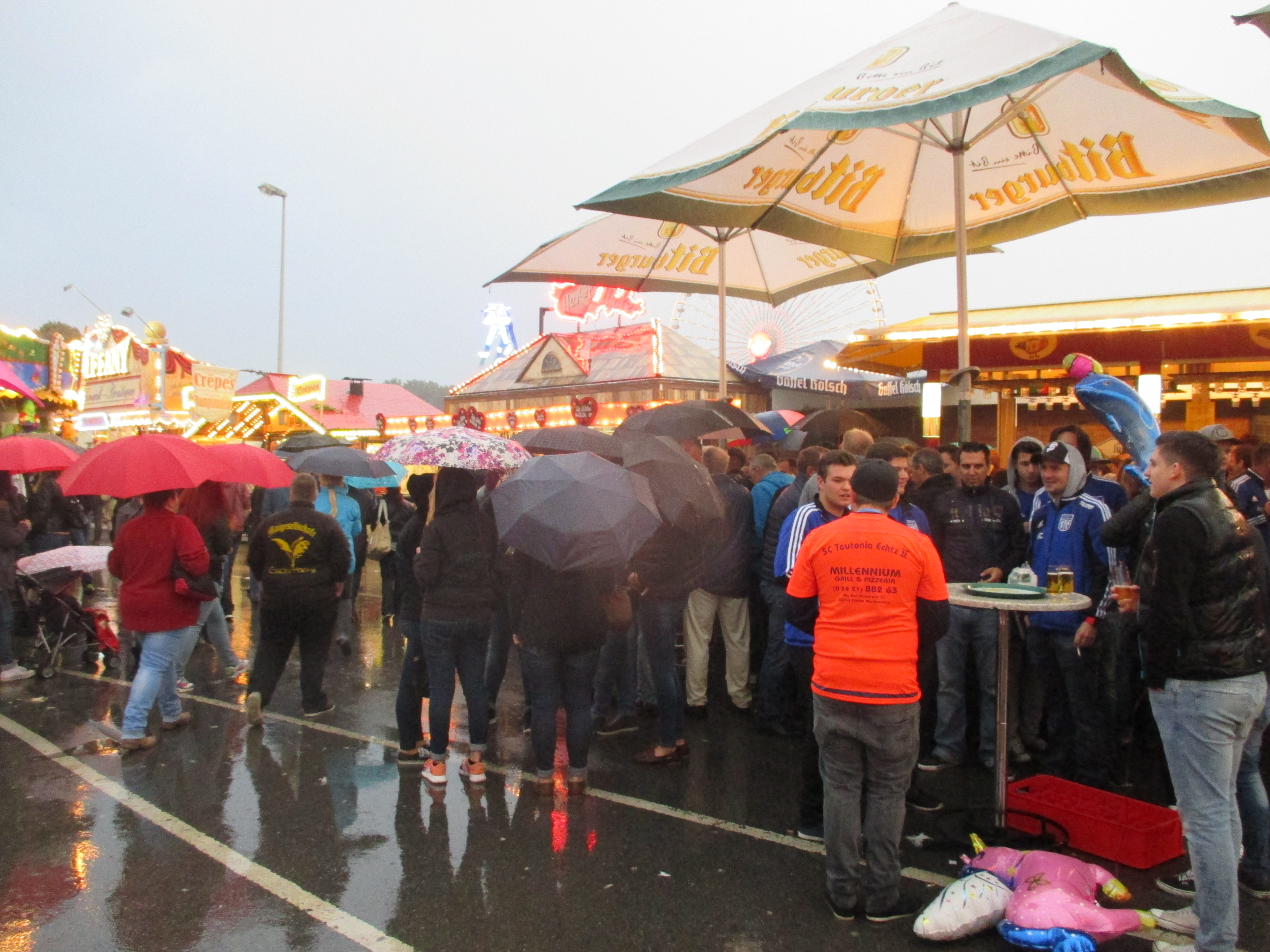 Es ist ein gefühlter Tag der Sport- und sonstigen Vereine, die mal einen geselligen Abend mit Alkohol und Rumgröhlen verbringen möchten. Sportlich gekleidet gleichfarbige Grüppchen findet man heute Abend an jeder Ecke - vor allen Dingen da, wo es Alkohol gibt und man sich vor dem Regen unterstellen kann.