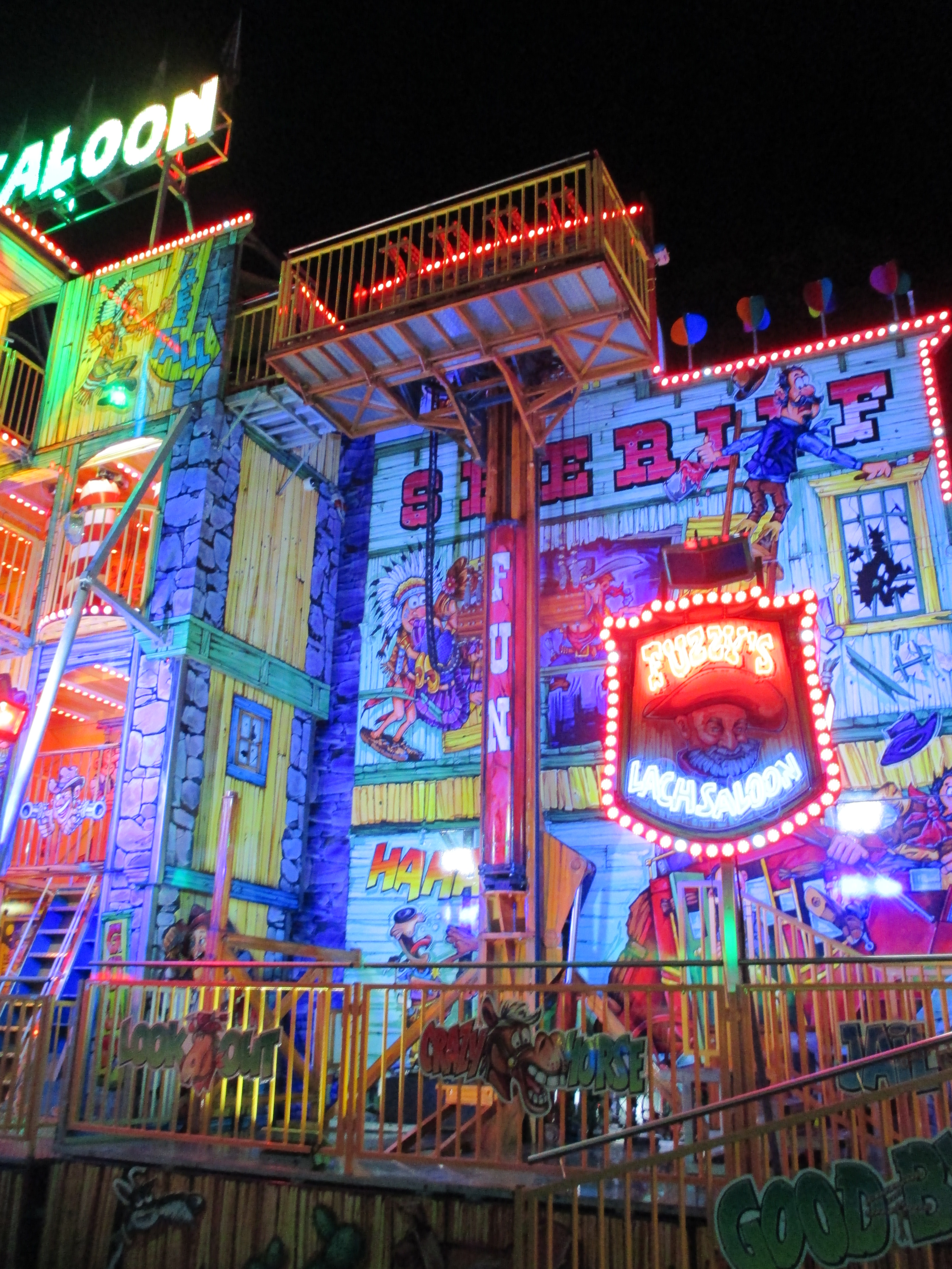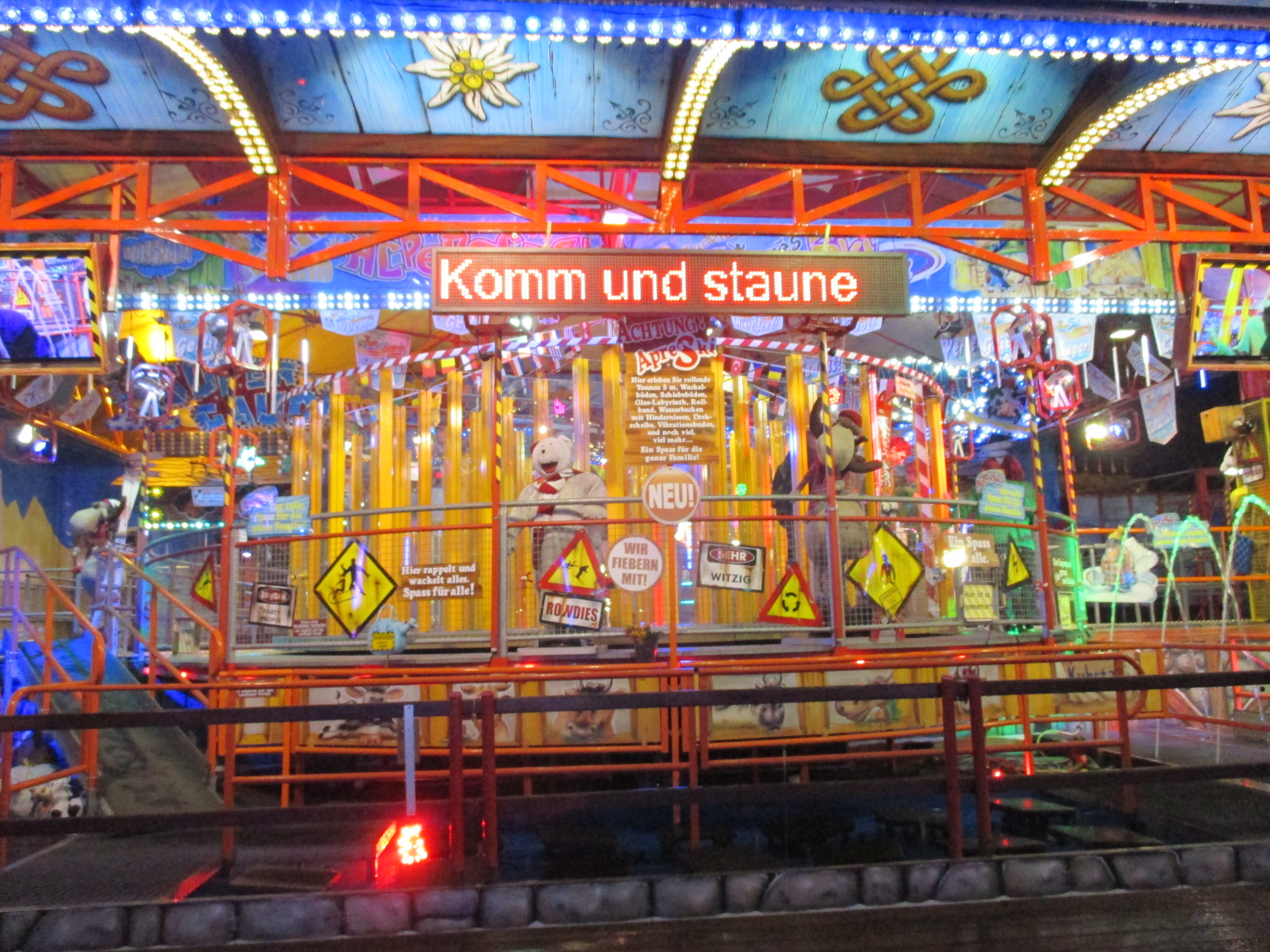 und natürlich der Funteil, der bei der Maus in Wild und XXL der Fahrt vorangestellt ist. Hierfür hat man scheinbar ein altes Funhouse komplett zerlegt und als Gangway of Fun vor dem Einstiegsbahnhof inszeniert.