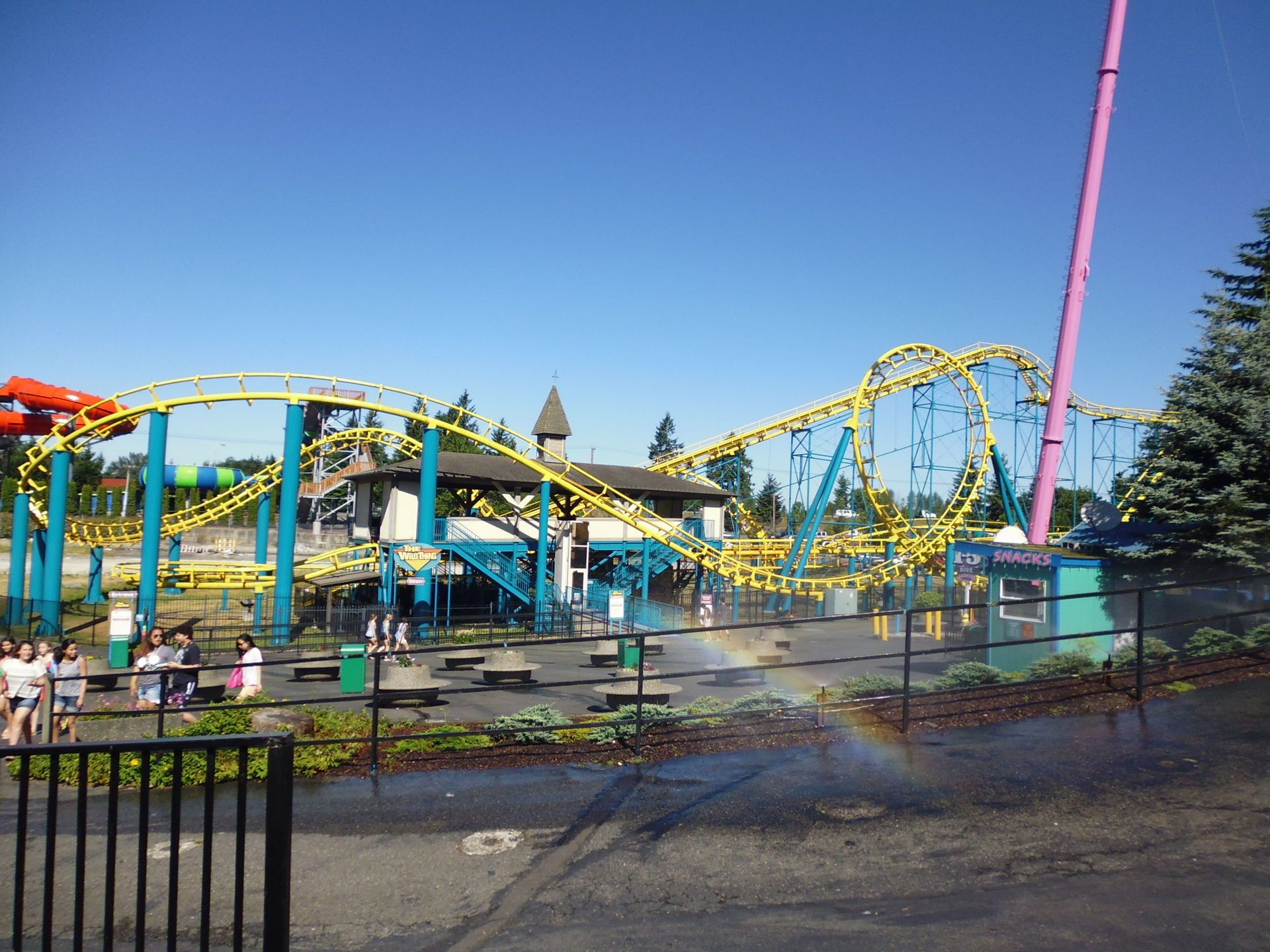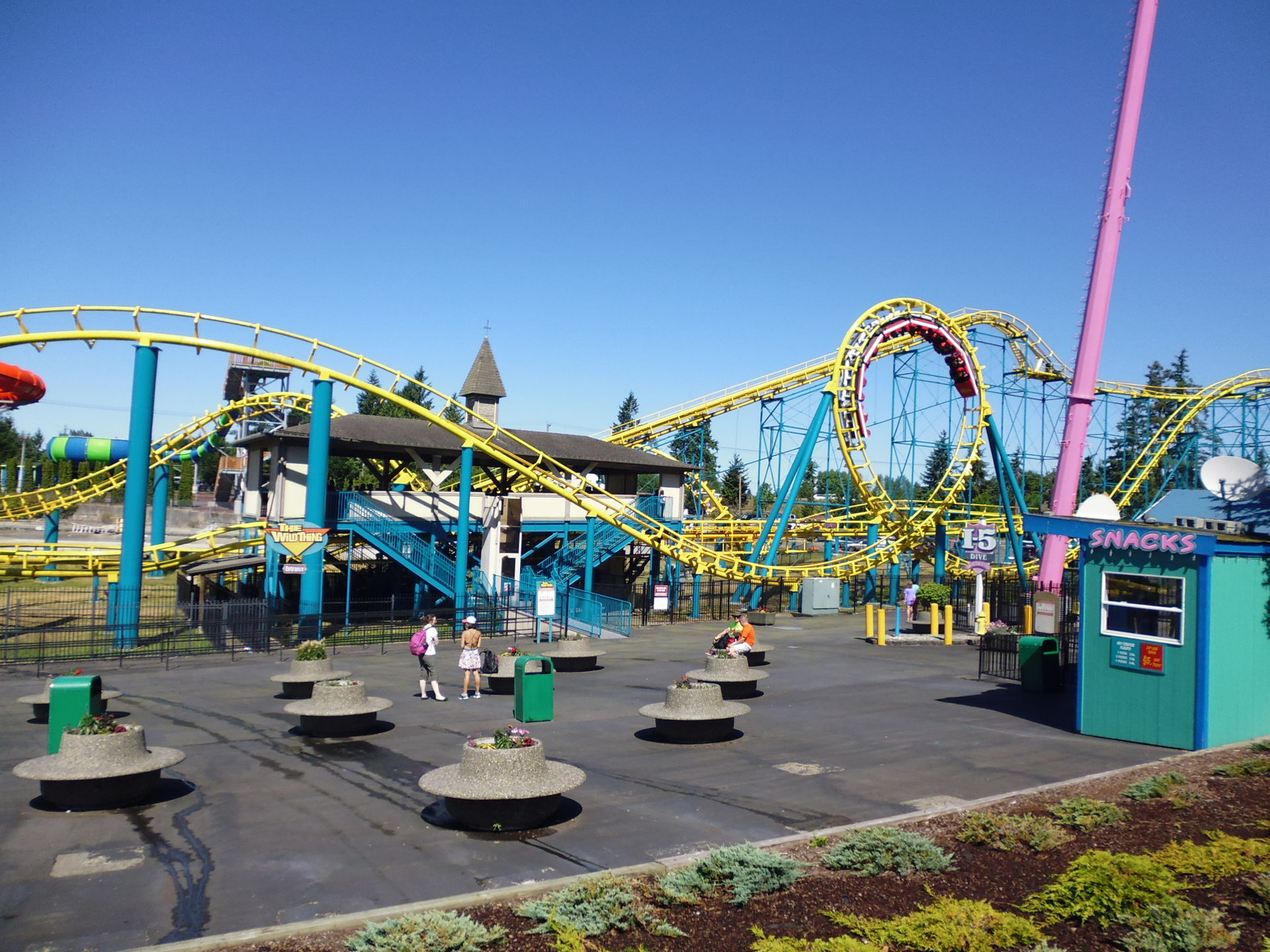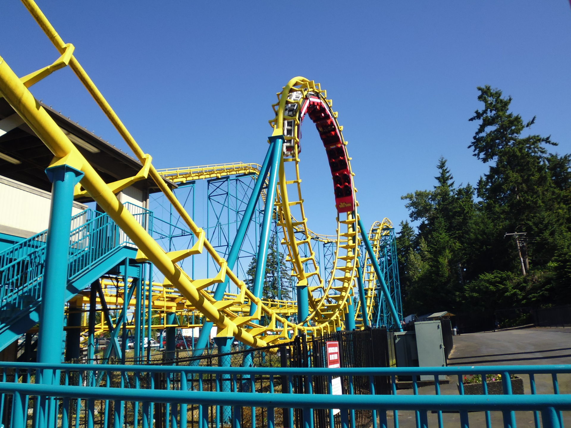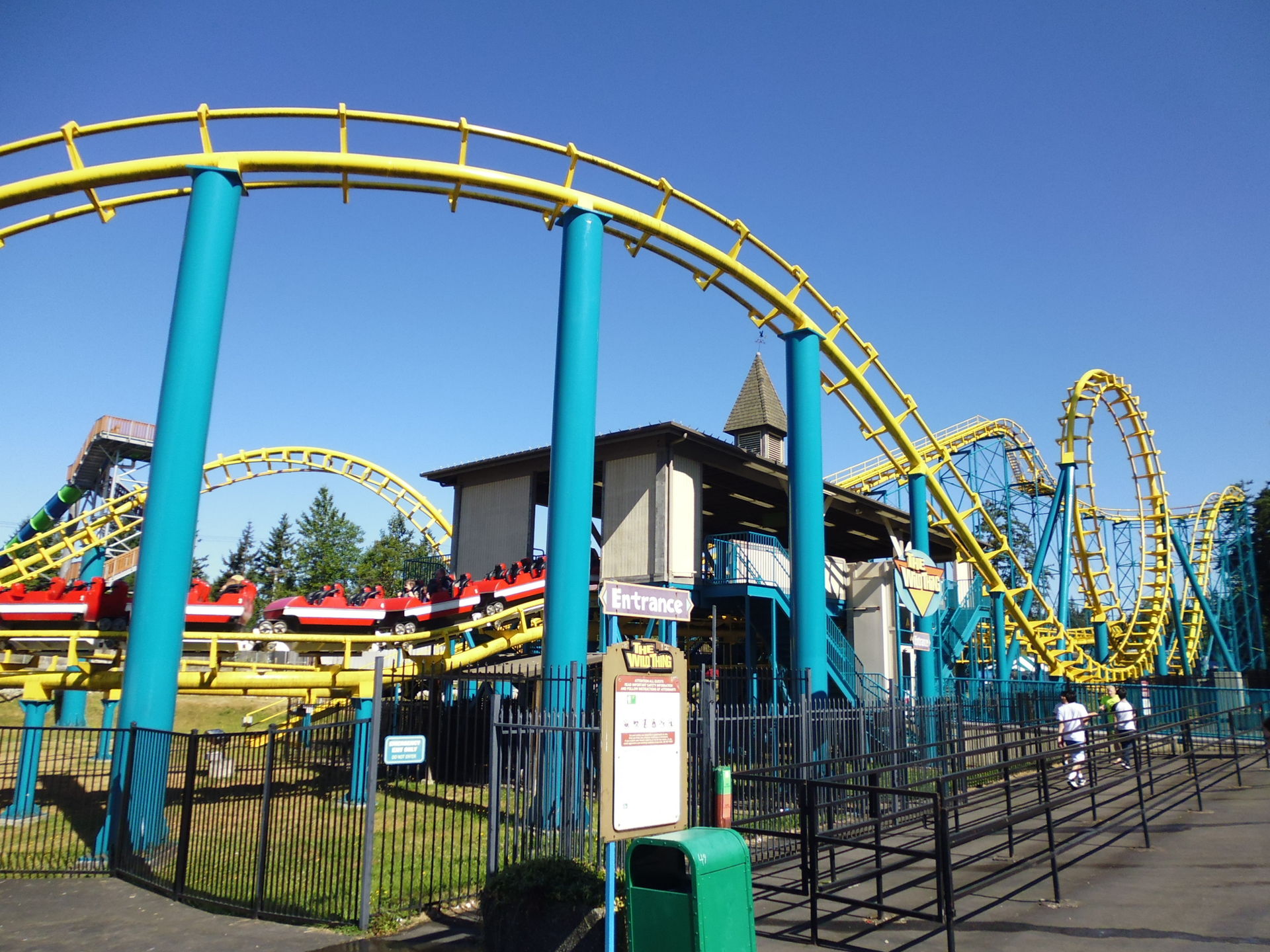Als erstes wurde der entfernungstechnisch nächstgelegene Coaster zum Parkeingang angesteuert: der Arrow Loopscrew Wild Thing.