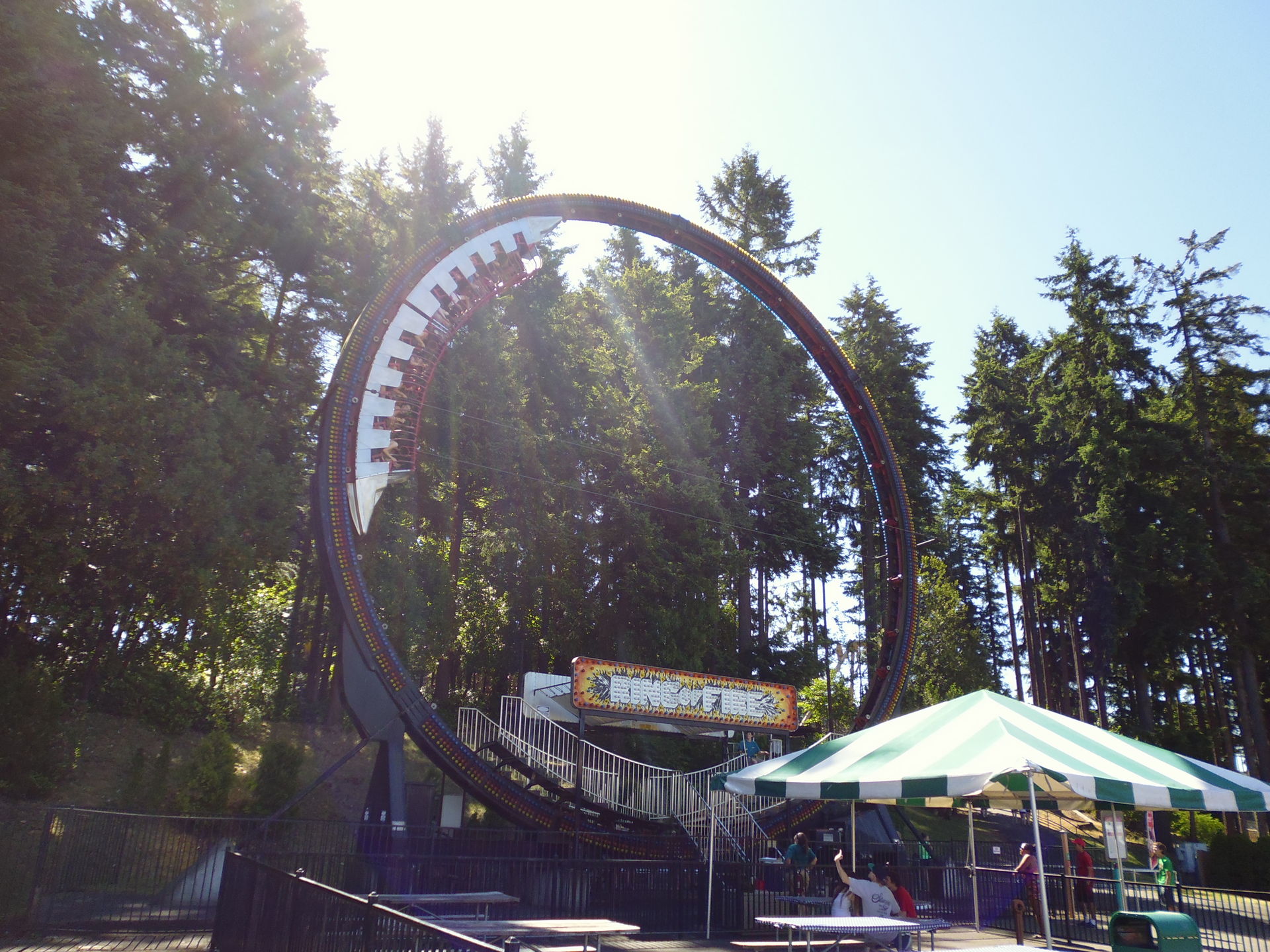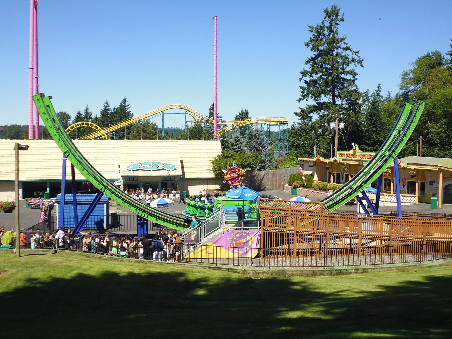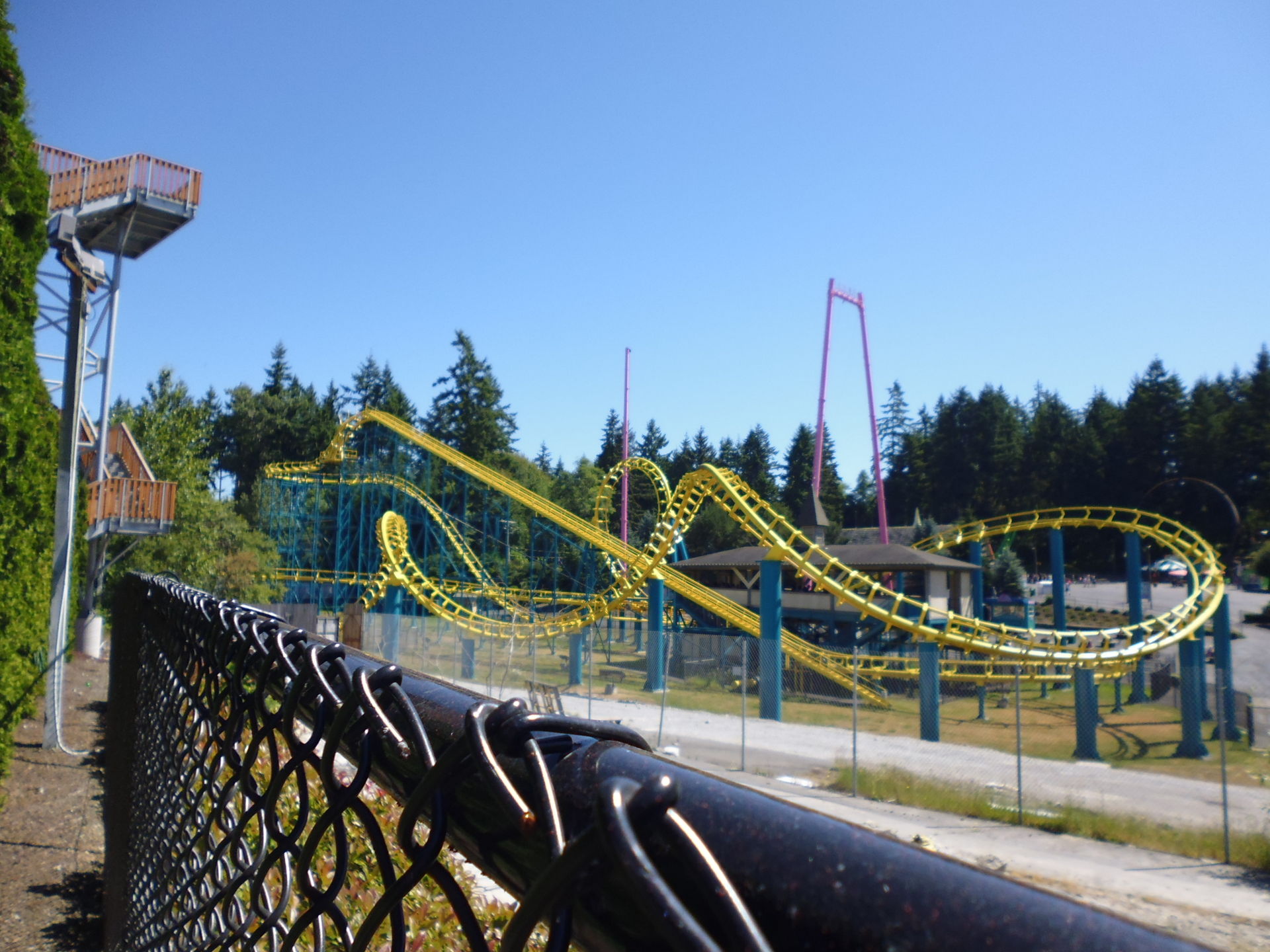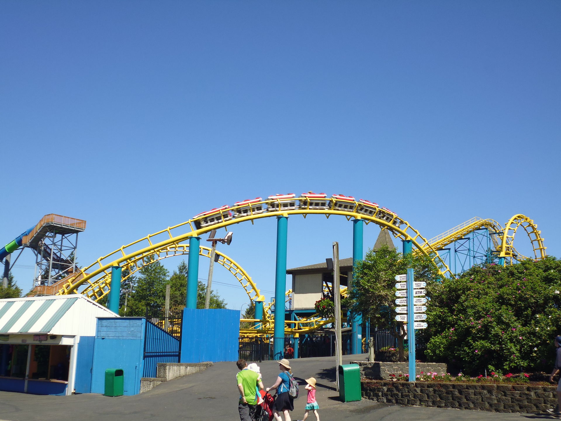 Als erstes wurde der entfernungstechnisch nächstgelegene Coaster zum Parkeingang angesteuert: der Arrow Loopscrew Wild Thing.