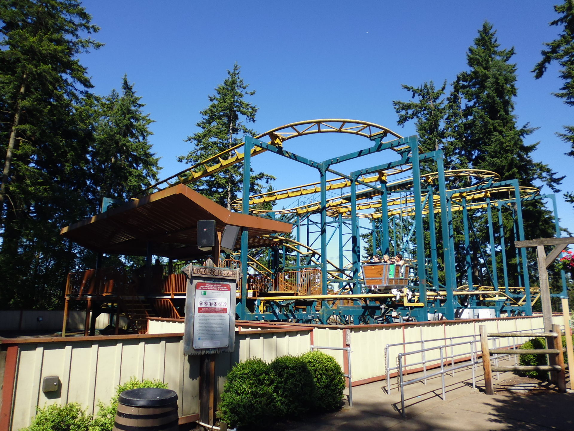 Als nächstes standen ein recht steiler Bergaufmarsch und dann die Zamperla-Maus Klondike Gold Rusher in der hinteren Parkhälfte auf dem Programm.