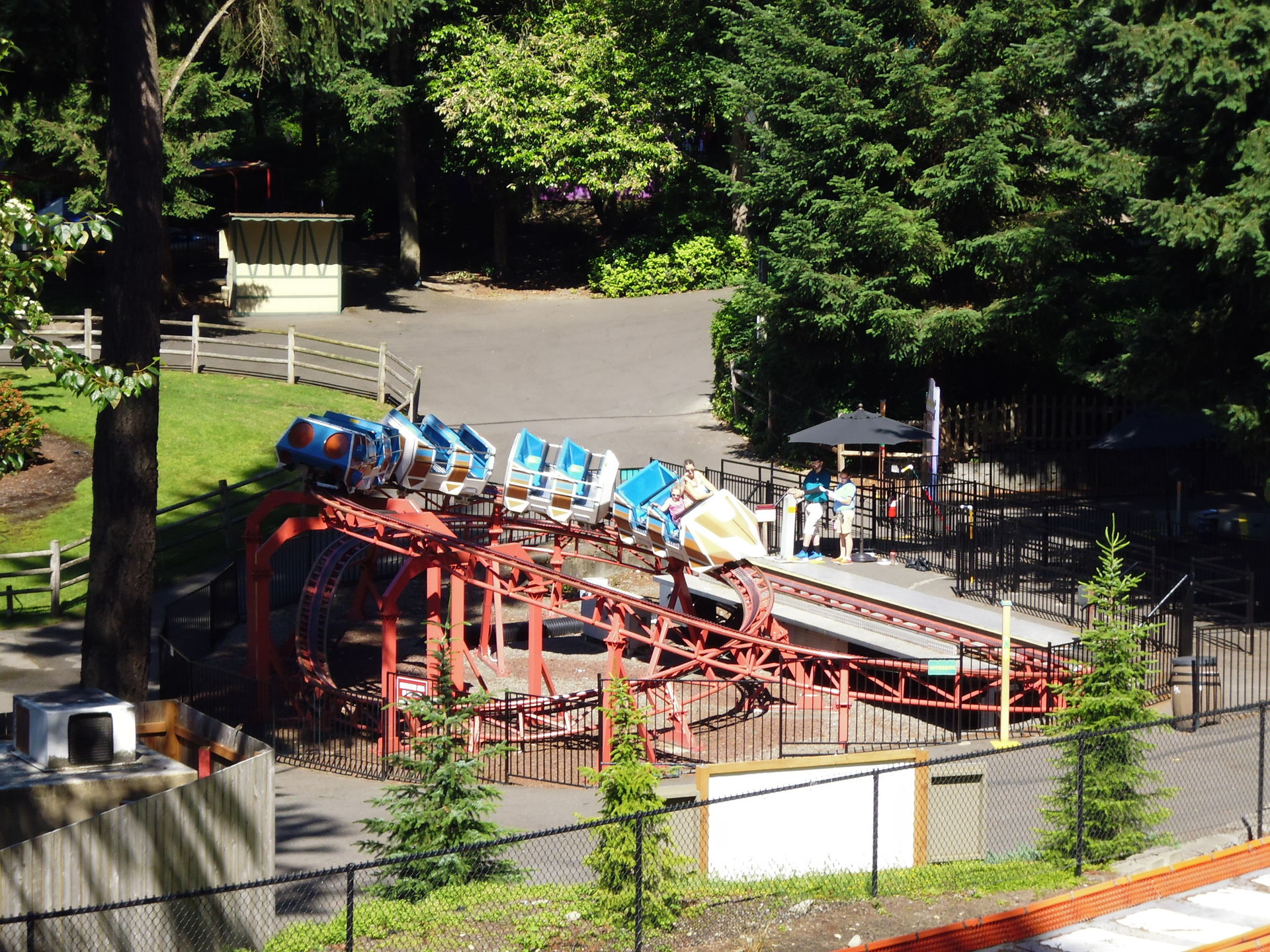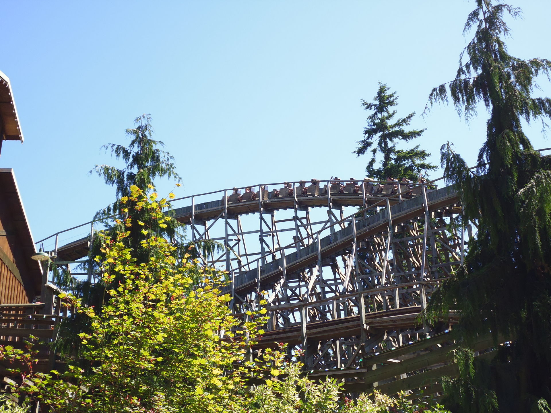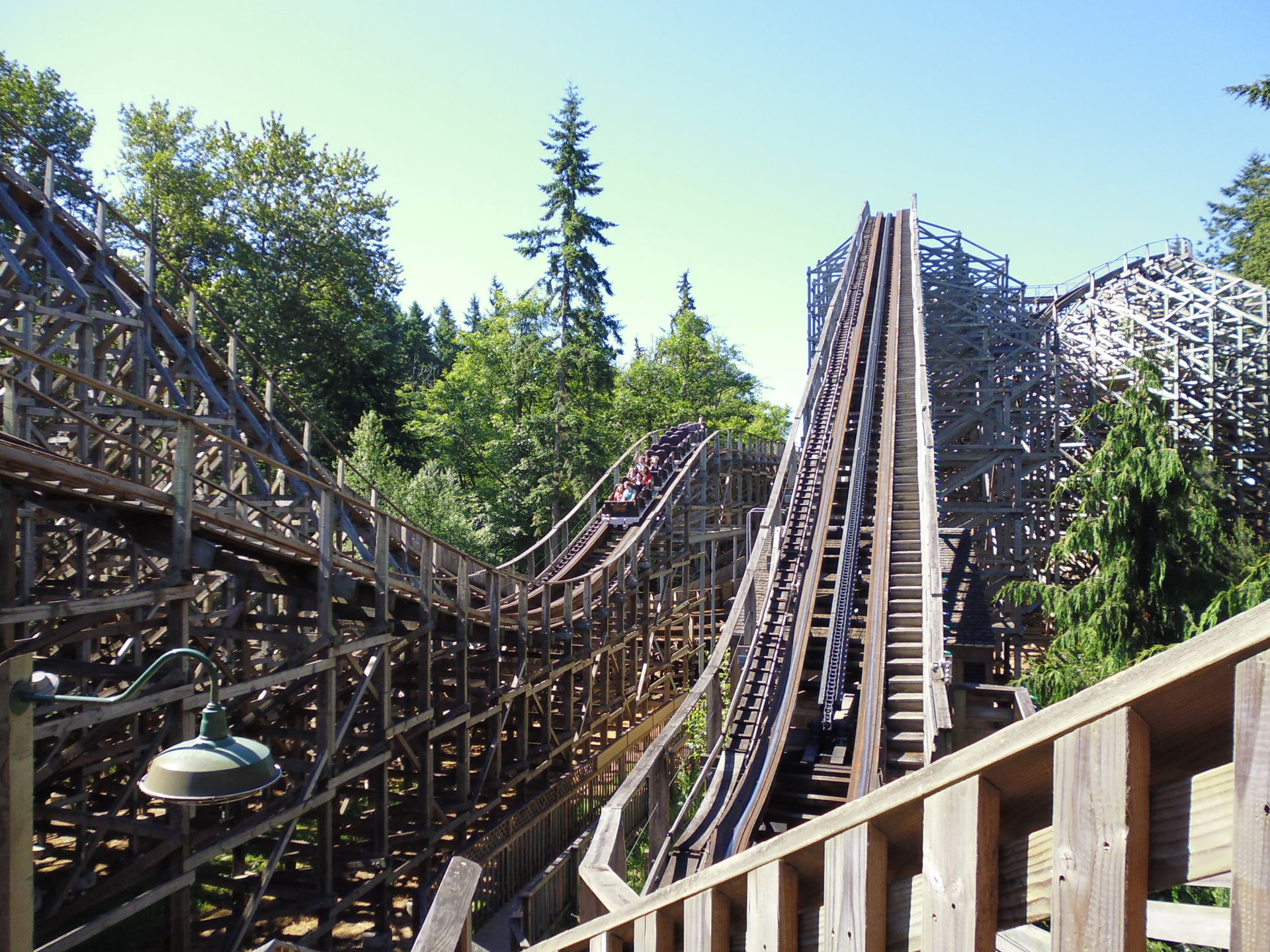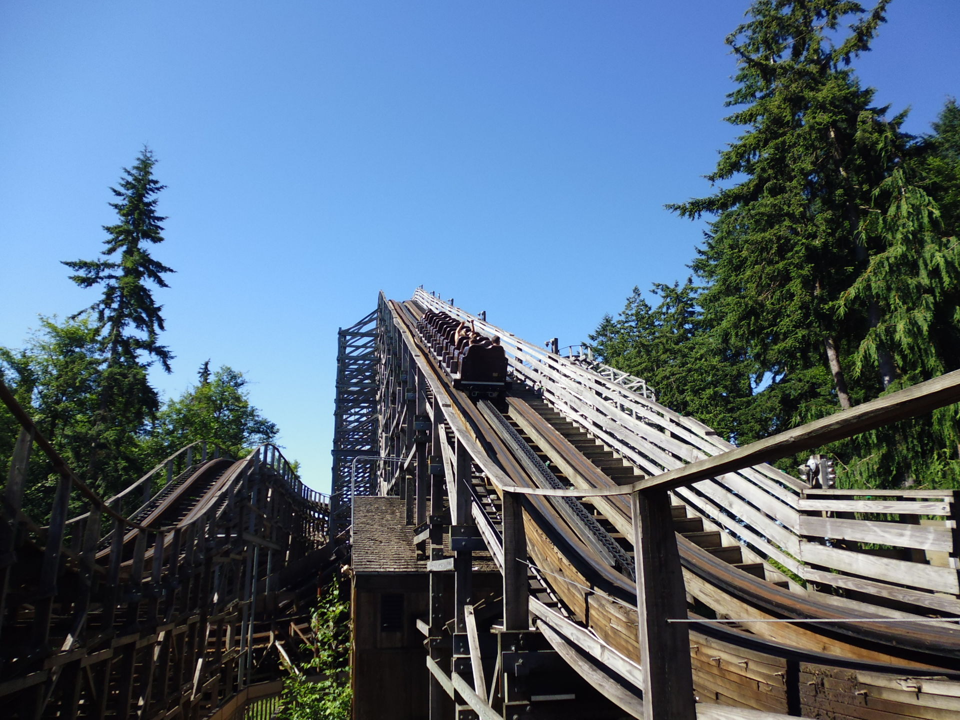 Zu meiner freudigen Überraschung waren hier zwei Züge im Einsatz, obwohl das vom Andrang her noch nicht einmal gross nötig gewesen wäre - und was angesichts der Tatsache, wie der Park Wild Thing etwas weiter unten betreibt, irgendwie auch erstaunte.