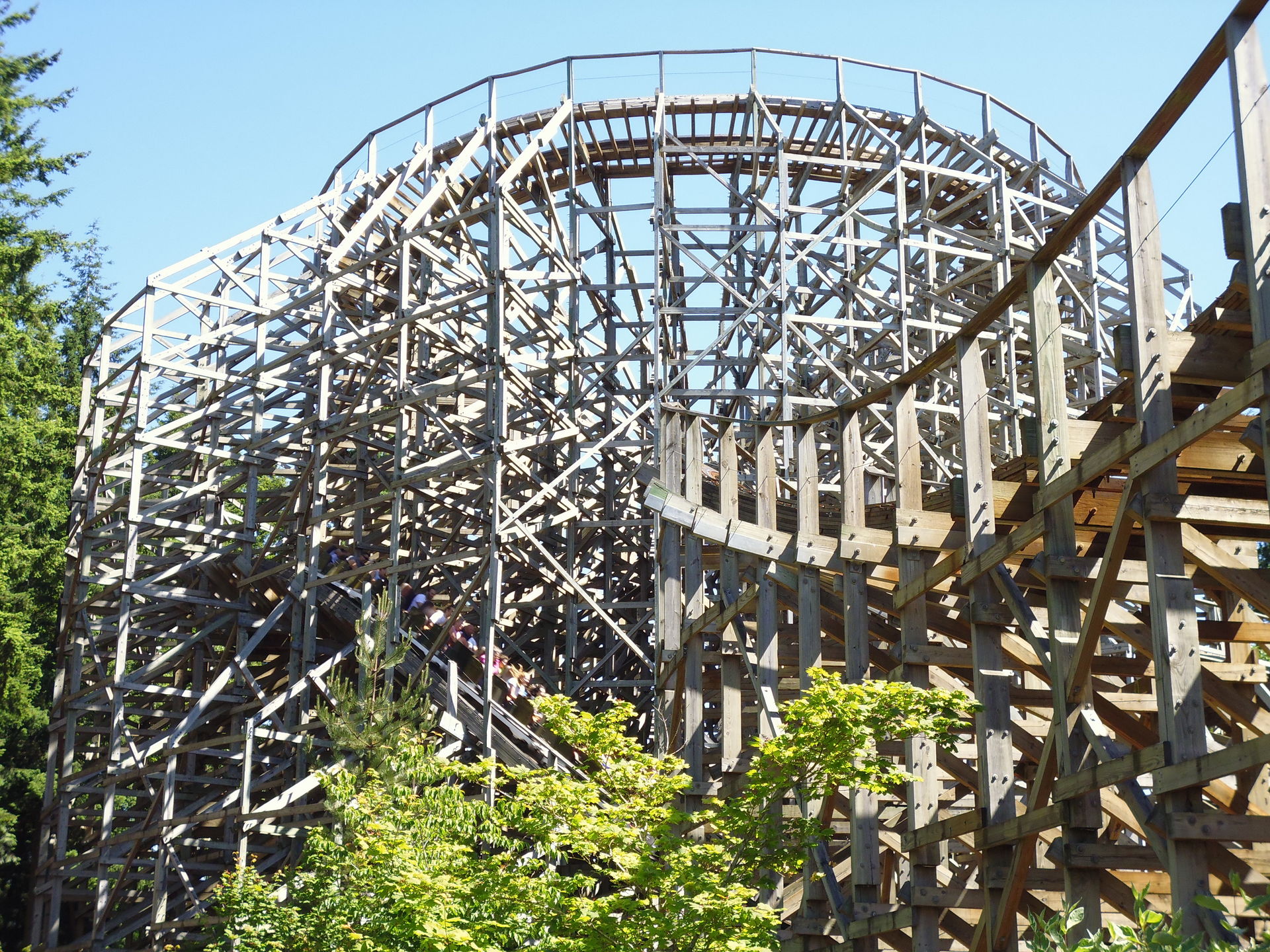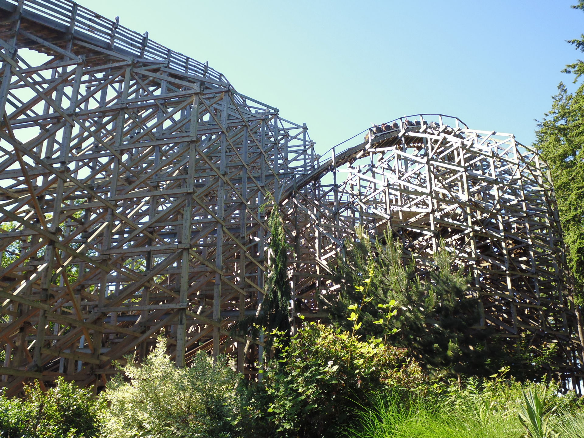Dabei handelt es sich um eine echte Seltenheit, ist dies doch eine von nur vier Holzachterbahnen aus dem Hause