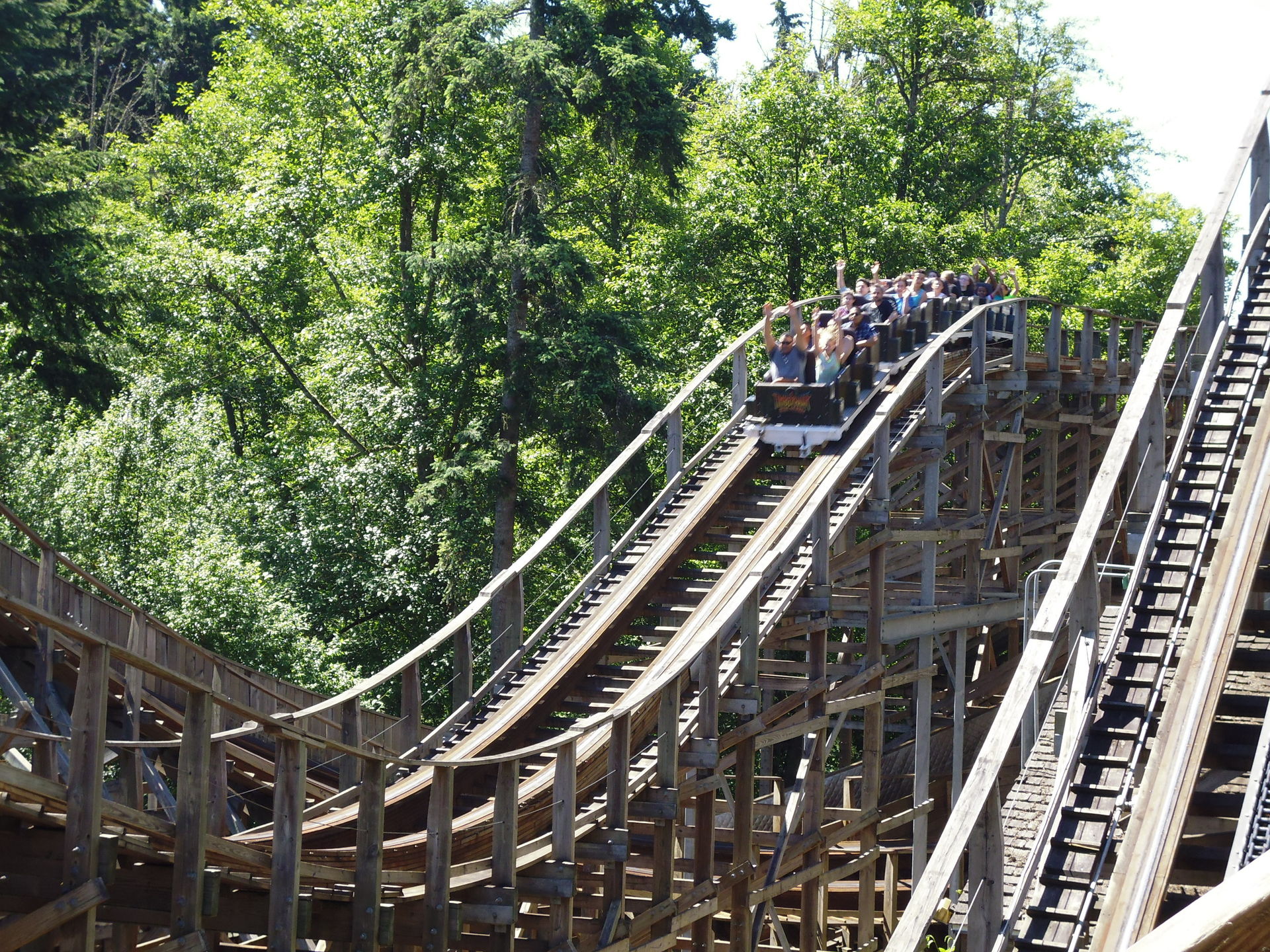 Airtime, netten Presspassagen nach unten und in die Zugseite sowie mit zahlreichen Headchoppern - mit sehr grossem Abstand die beste und natürlich originellste Bahn im Park, die allen Passagieren ein solides und spassiges Woodie-Fahrerlebnis bietet.