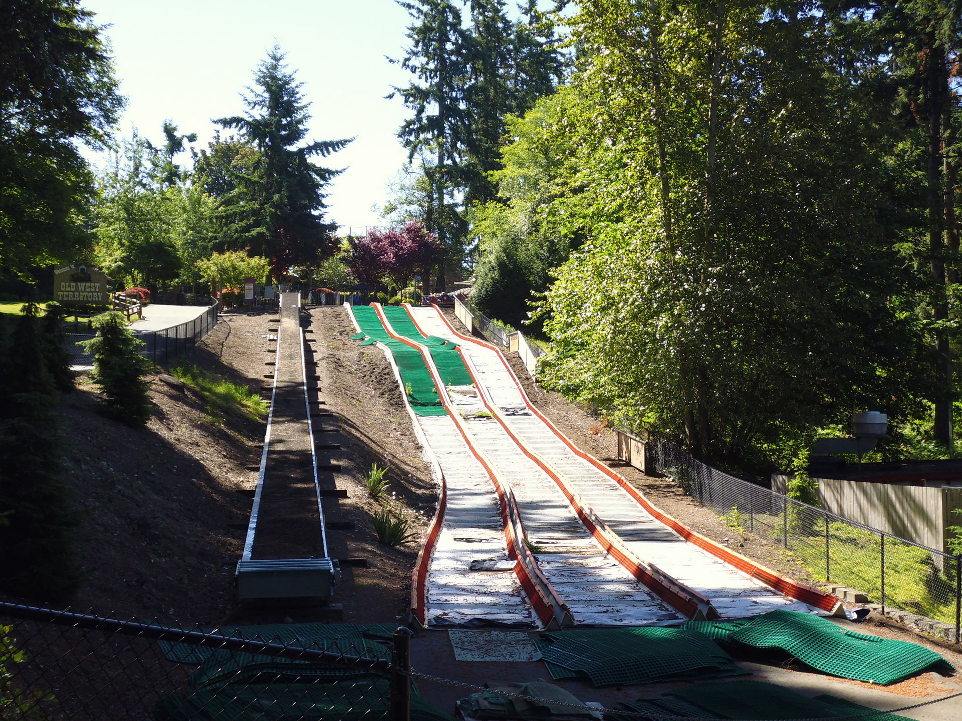 Vom Timberhawk-Hügel runter könnte man bei entsprechendem Wartungszustand dieser Rutschanlage wohl snowtuben.