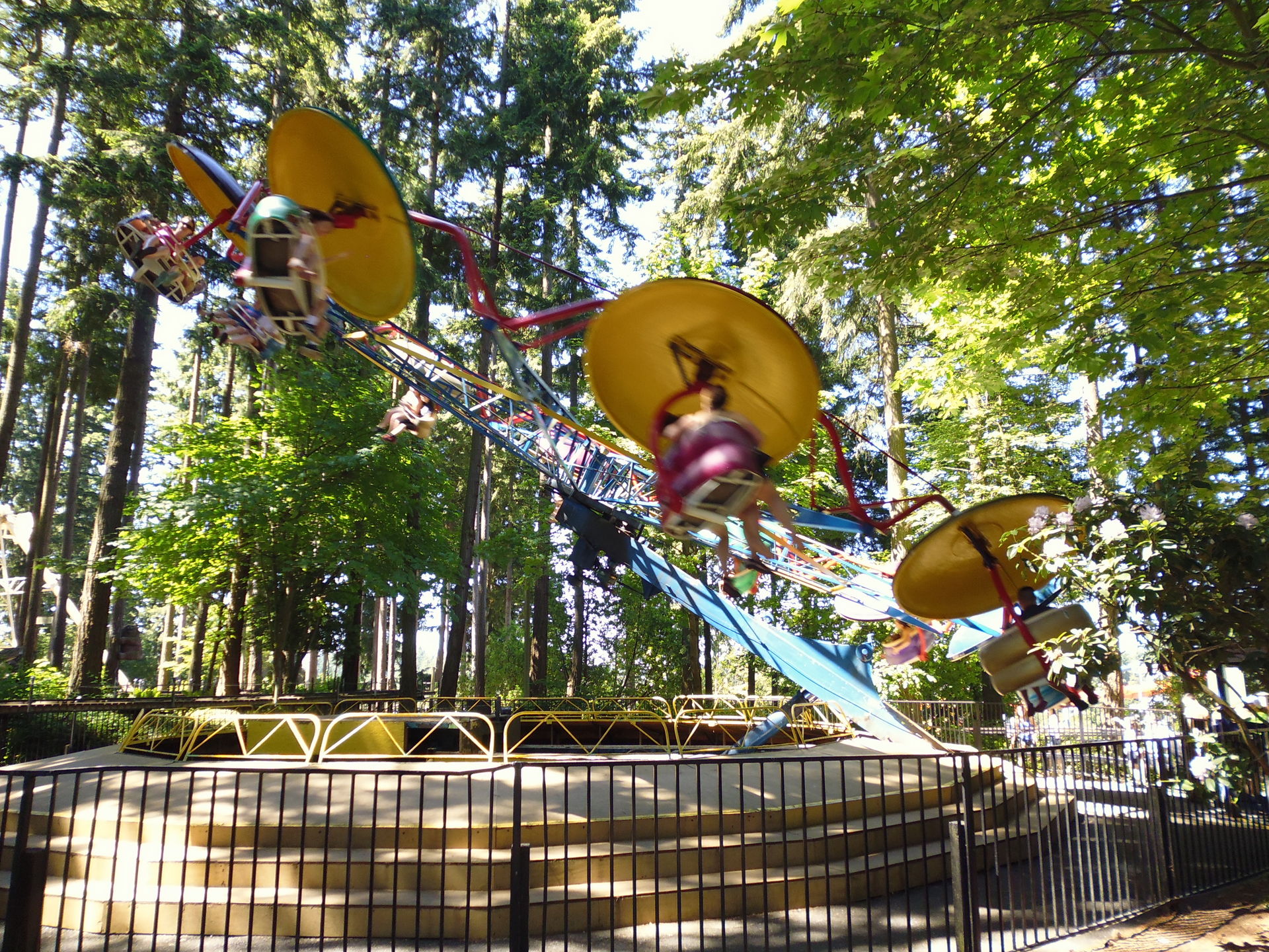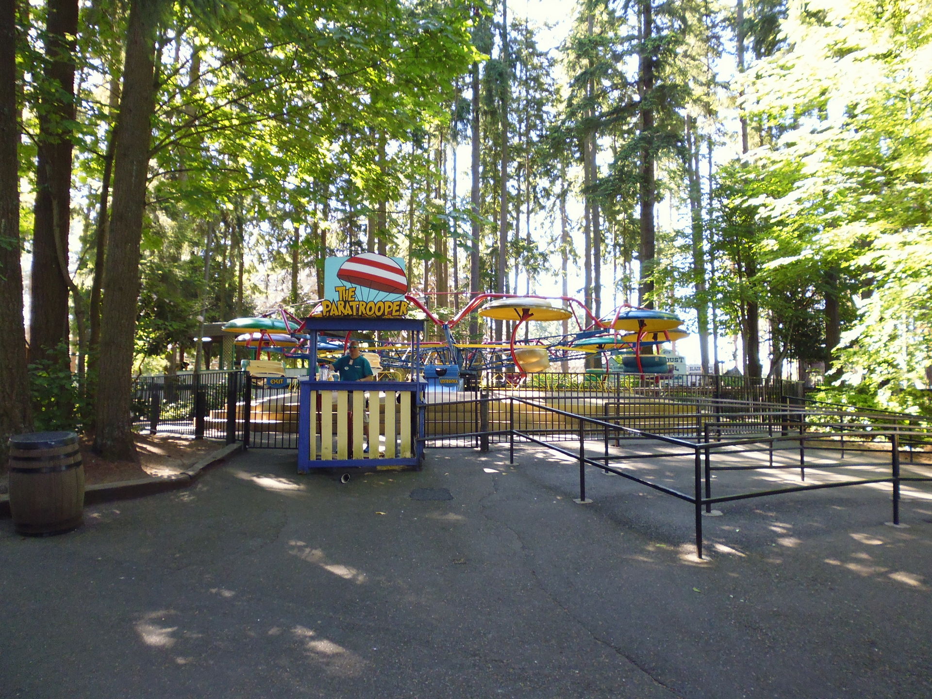 Wieder auf dem Timberhawk-Hügel oben findet man einige wunderbar in den Wald eingebettete Fahrgeschäfte. Zum Beispiel den Paratrooper.