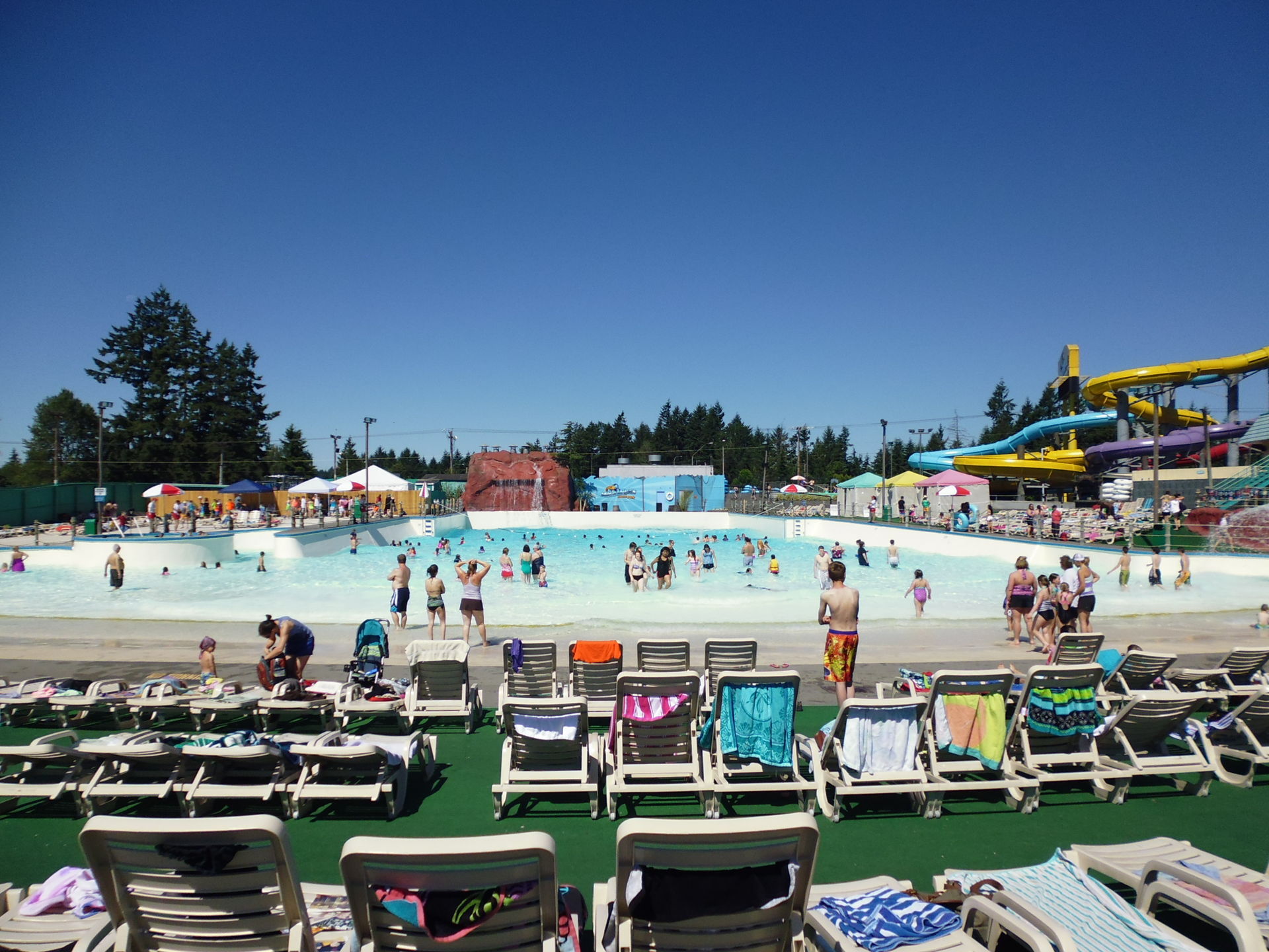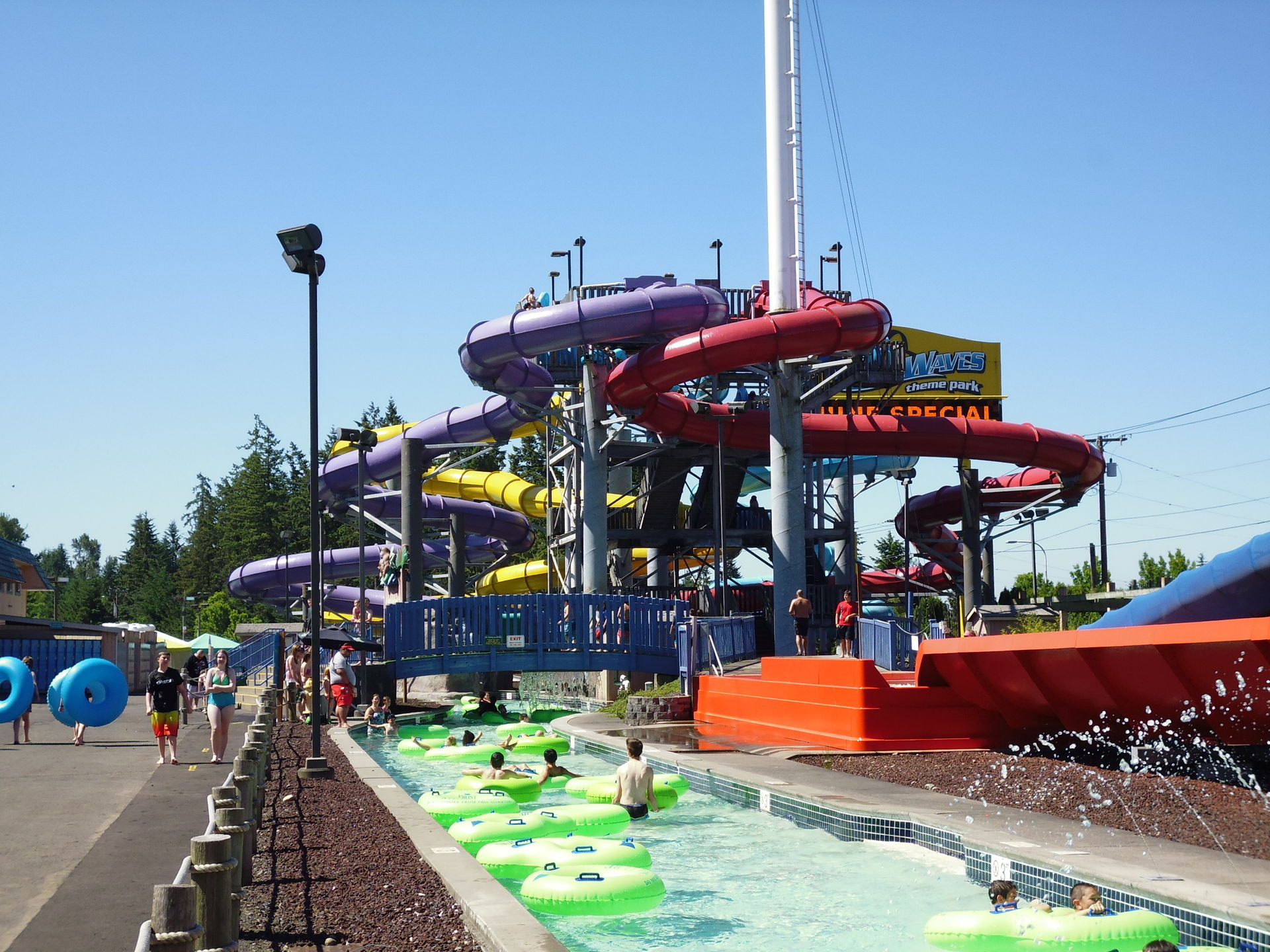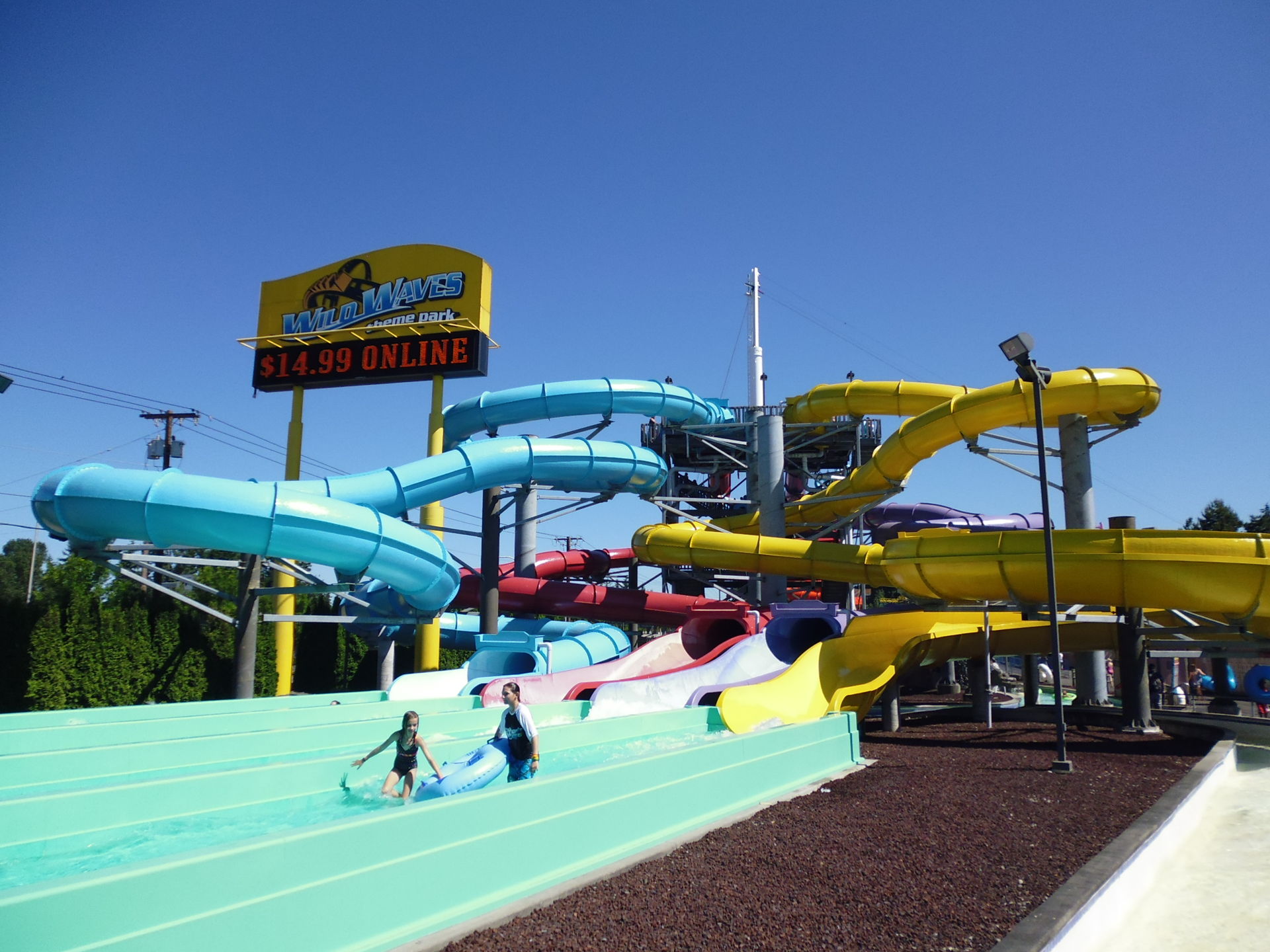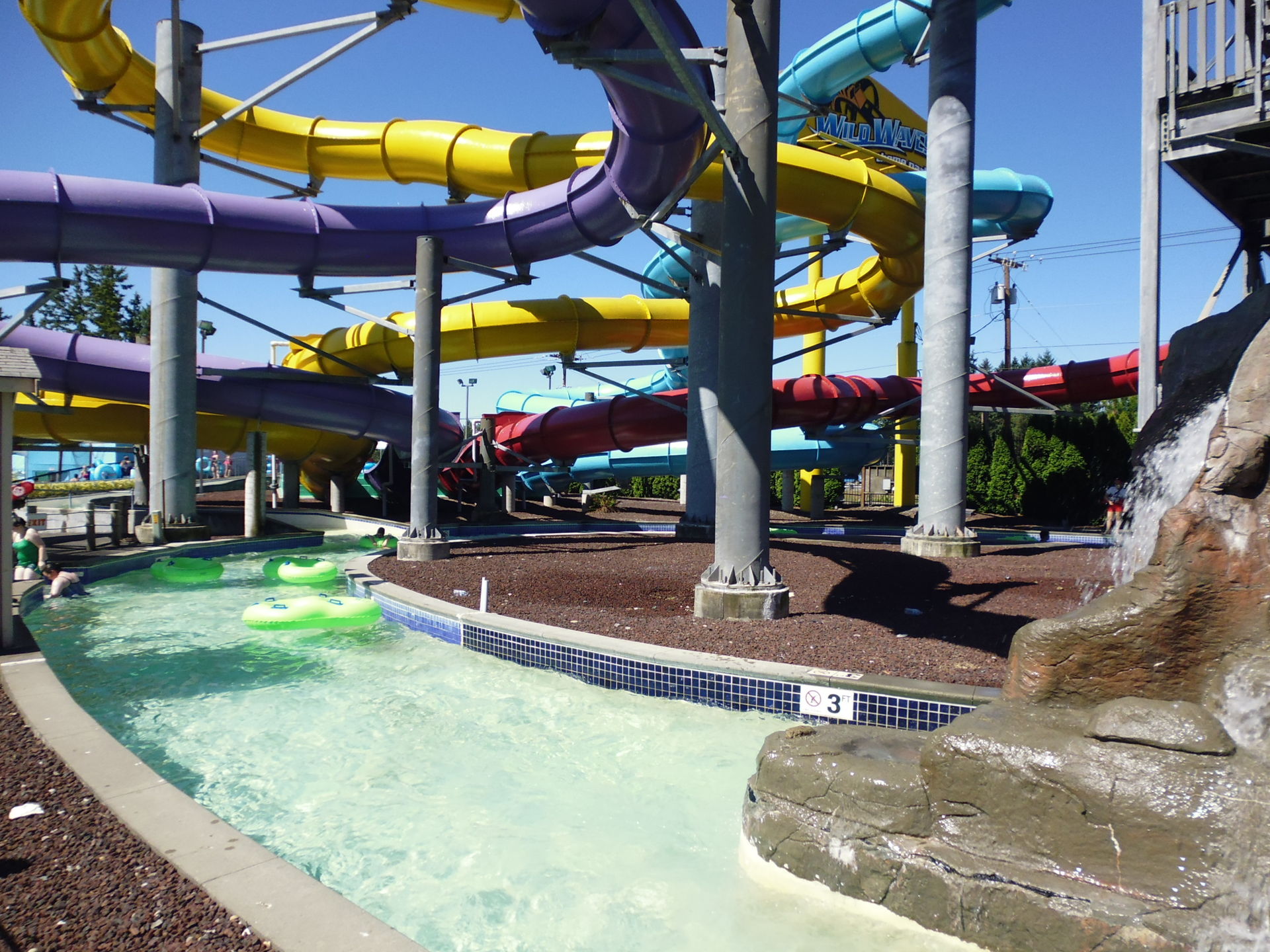 Und hier wären wir mit der Berichterstattung zu Wild Waves dann auch schon fertig. Dass dieser Park eher eine Magic-Springs-mässige Abhaknummer wird, war mir eigentlich schon im Vornherein klar. Abgesehen von Timberhawk weist dieser Park weder im Freizeit- noch im Wasserparkteil Attraktionen auf, die nicht auf irgendeine Weise von der Stange sind - der grosse Wow-Effekt bleibt beim Coasterenthusiasten leider aus. Dem normalen Publikum ist das freilich egal - der stellenweise recht anheimelnd in den Wald eingebettete Hybridpark lässt durch seine eher locker aufgezogene Trennung zwischen Wasserrutschen und Rides zwei Hauptpfeiler amerikanischer Freizeitgestaltung kongenial miteinander verschmelzen, was an diesem sonnigen Junitag gerade durch die Online-Aktion enorm gut angenommen wurde. Da ich ja noch ein wenig was von Seattle sehen wollte, reichten mir zweieinhalb Stunden, aber die hätte ich keineswegs missen wollen - gerade bei dem günstigen Eintrittsspecial an meinem Besuchstag ging das Dargebotene mehr als nur in Ordnung, so dass ich grosszügig über die nicht ganz den Fangeschmack treffende Attraktionenzusammensetzung hinwegsehen kann und vor allem all die fröhlichen und ihren Besuch vollauf geniessenden Menschen hier in Erinnerung behalten werde.