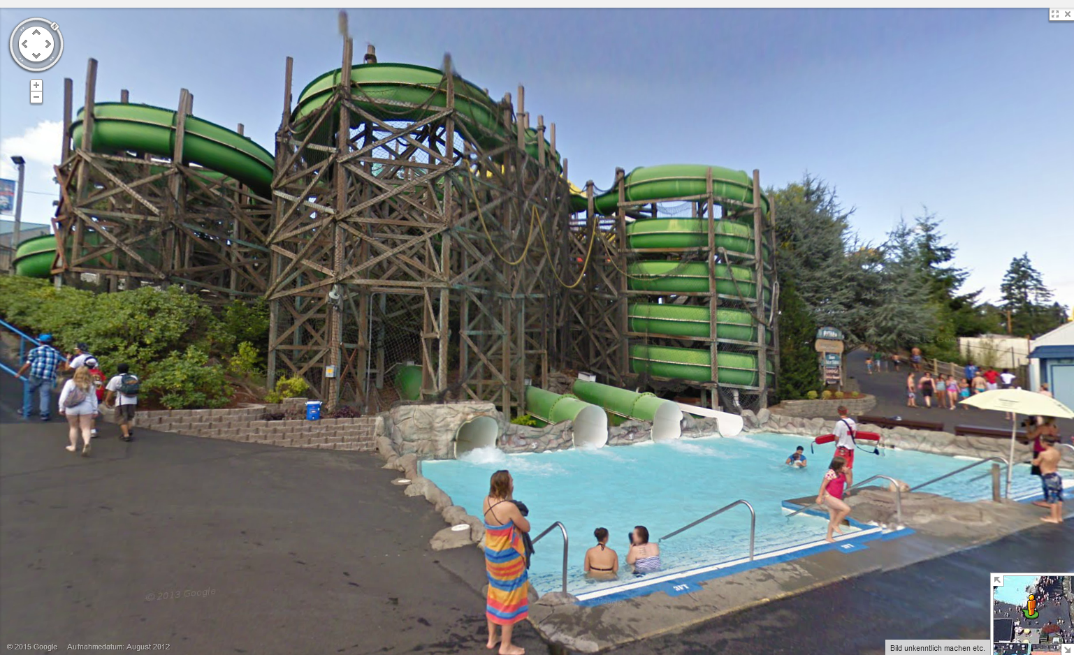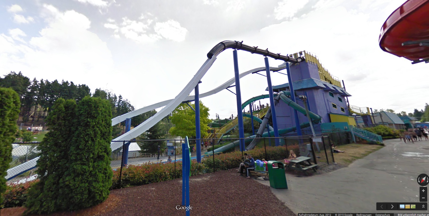 Interessanterweise gibt es ja eine Google-Streetview-Ansicht des ganzen Parks. Und da kann man sehen, dass der Park gleich zwei grosse Bodyslide-Komplexe und damit insgesamt neun (!) Körperrutschen auf diese Saison hin durch bloss drei Reifenrutschen ersetzt hat.