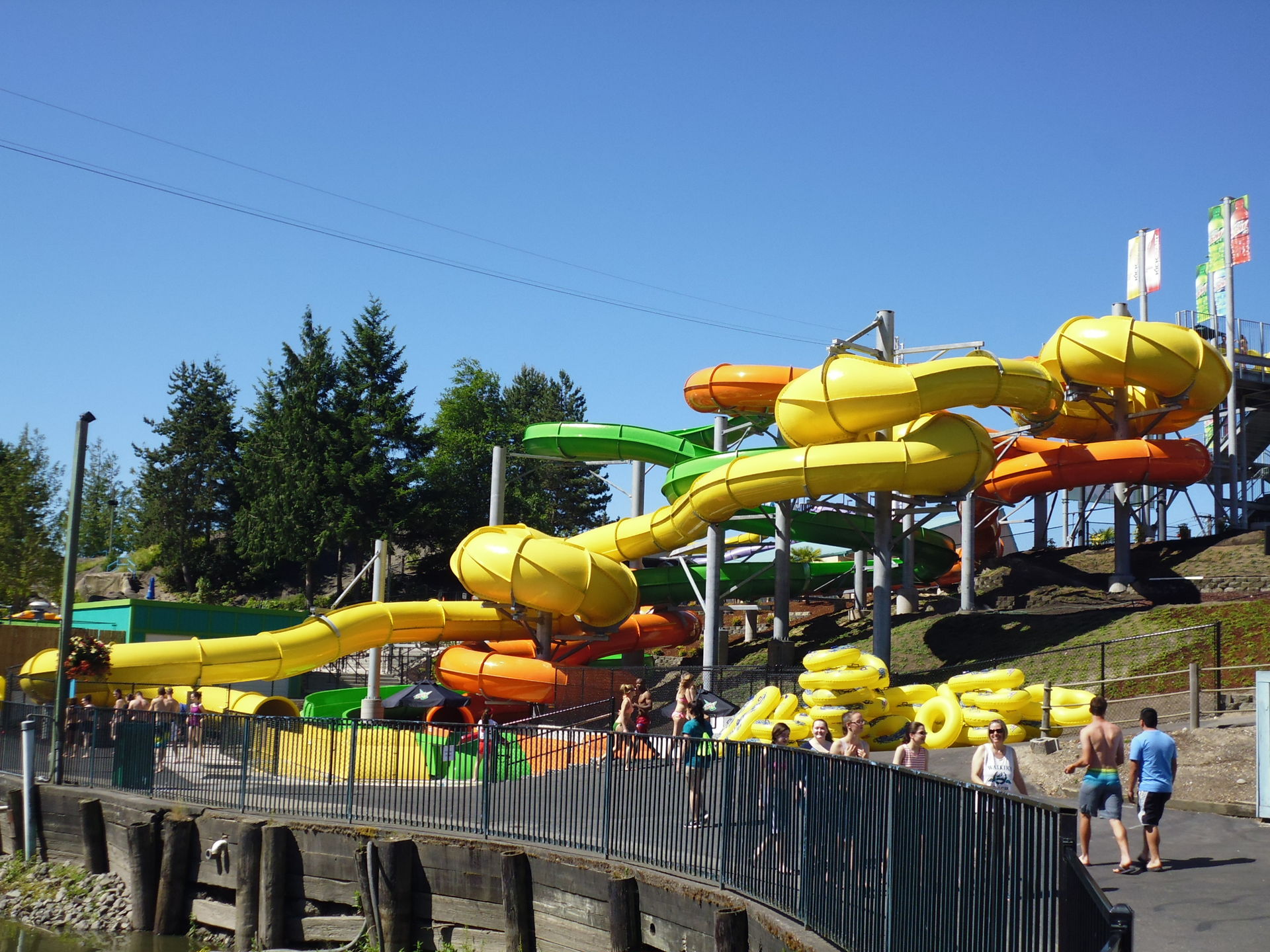 Rafting-Slide Zooma Falls - hier kommen anstelle von runden Rafting-Booten viersitzige Cloverleaf-Ringe zum Einsatz.