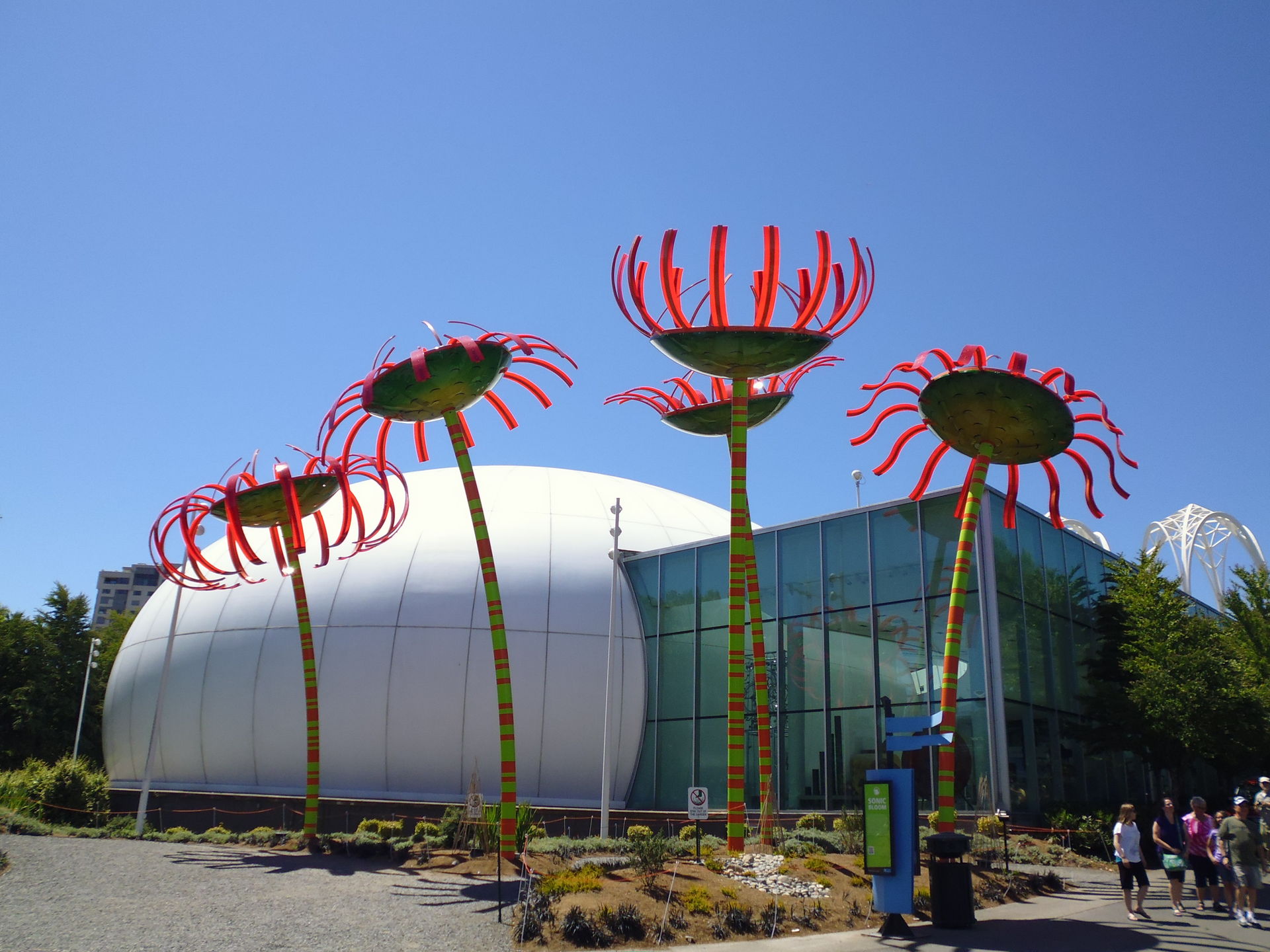 Die 184 Meter hohe und im Rahmen der Weltausstellung von 1962 erbaute Space Needle ist eins der unbestrittenen Wahrzeichen Seattles. Sie steht in einem Park namens Seattle Center, der im Wesentlichen das alte Gelände der damaligen Weltausstellung umfasst und viele wunderbare Grünflächen bietet.