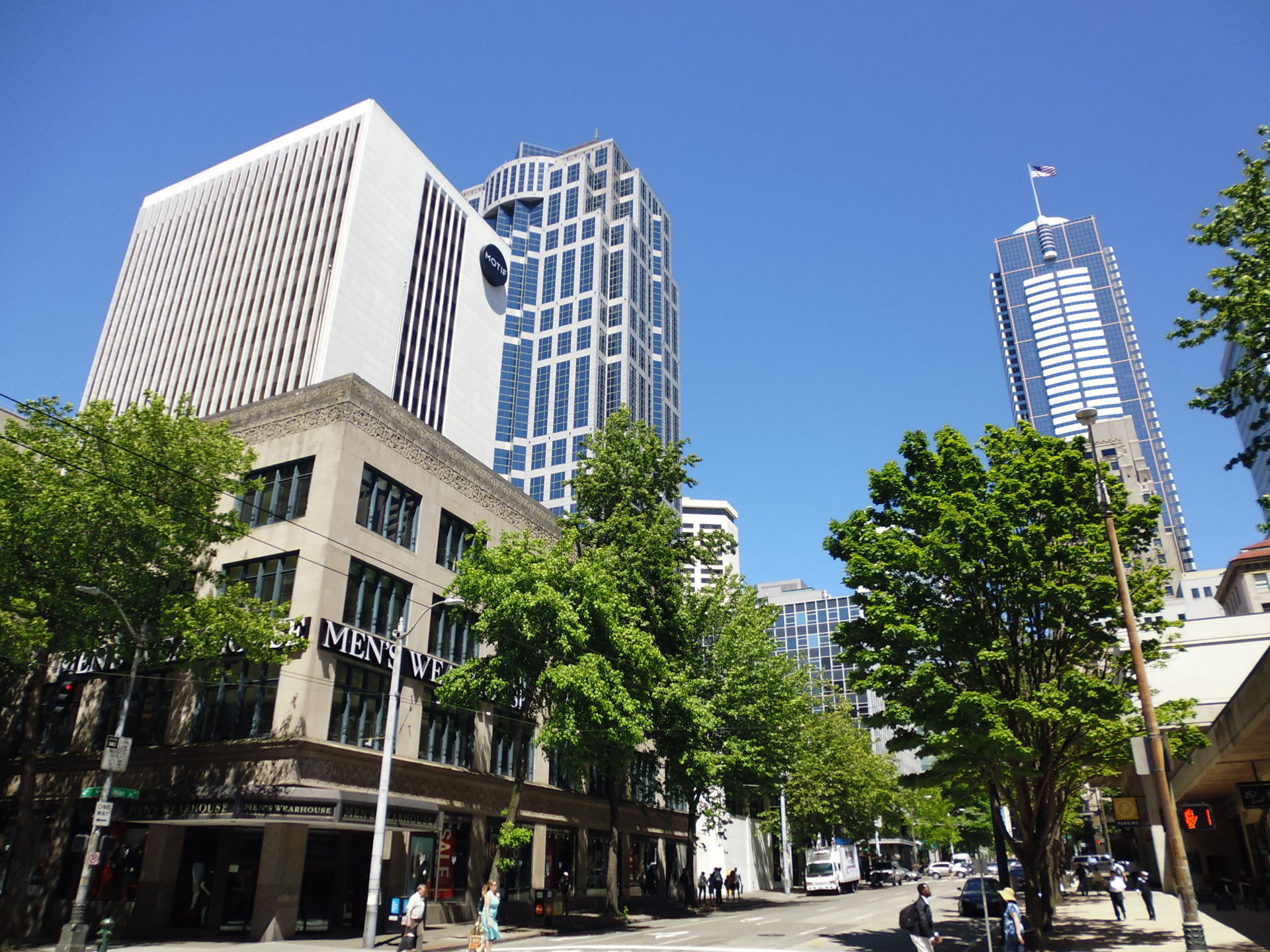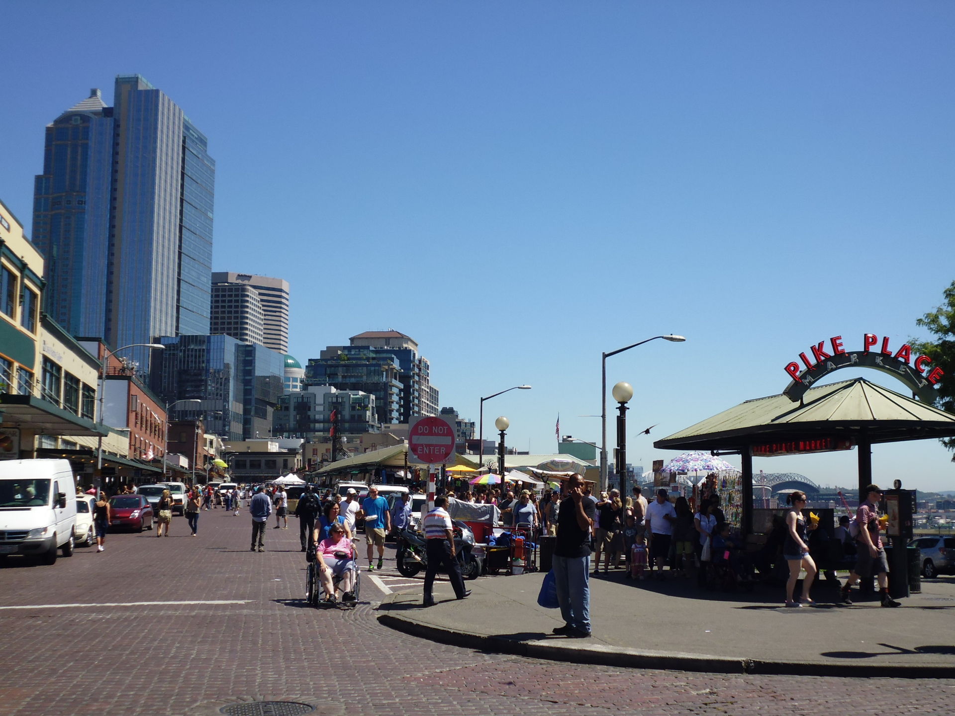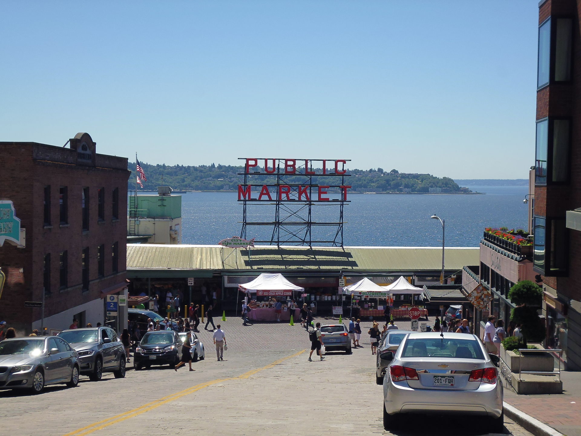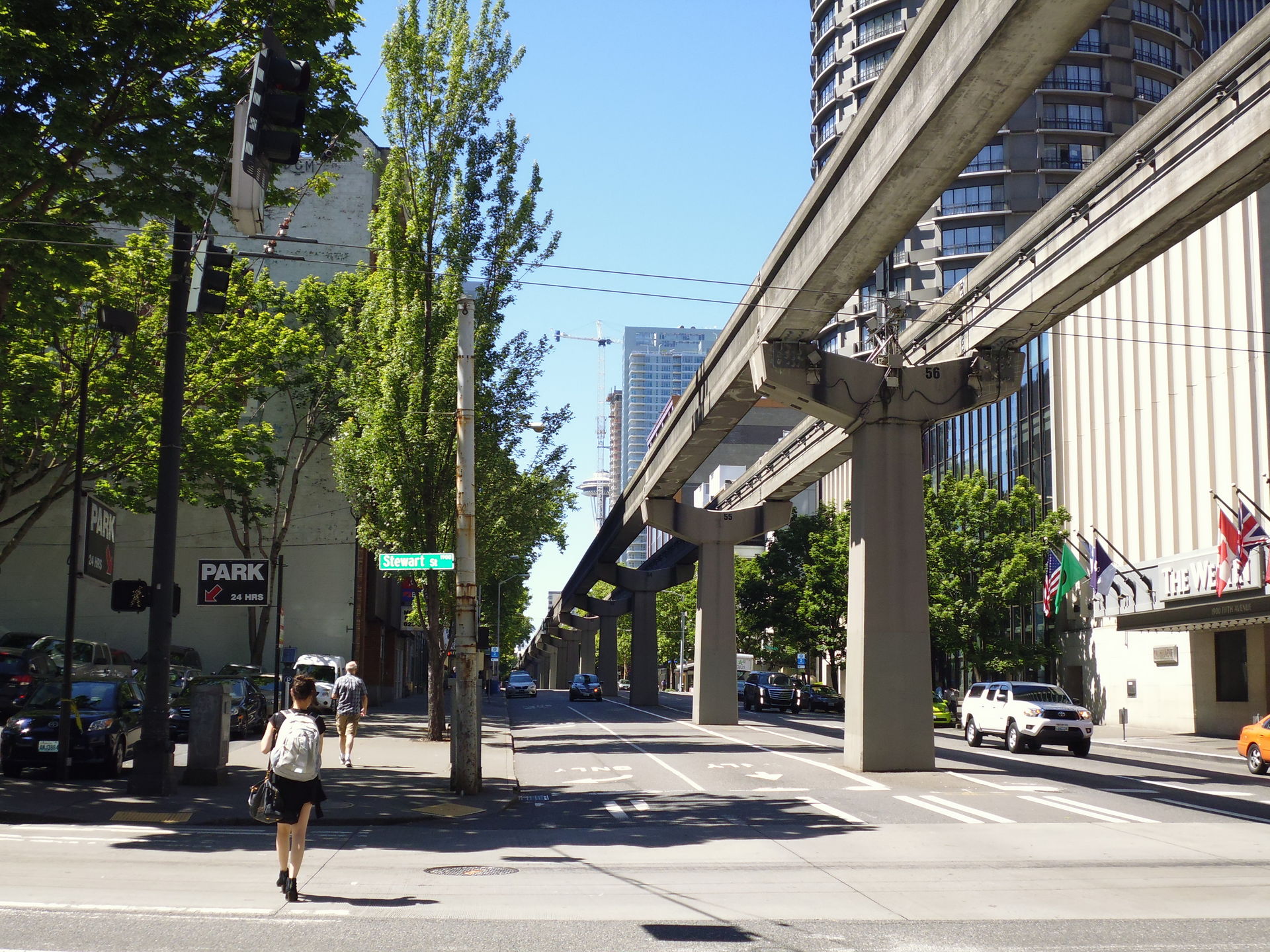 Insgesamt etwa 27 Meilen und eine knappe Dreiviertelstunde später bin ich dann aber heil in der Nähe meines ersten Ziels angekommen, der berühmten Space Needle. Gegenüber eines nahe gelegenen Best Western hab ich einen günstigen Strassenparkplatz entdeckt und begab mich zu Fuss zum Ort des Geschehens!
