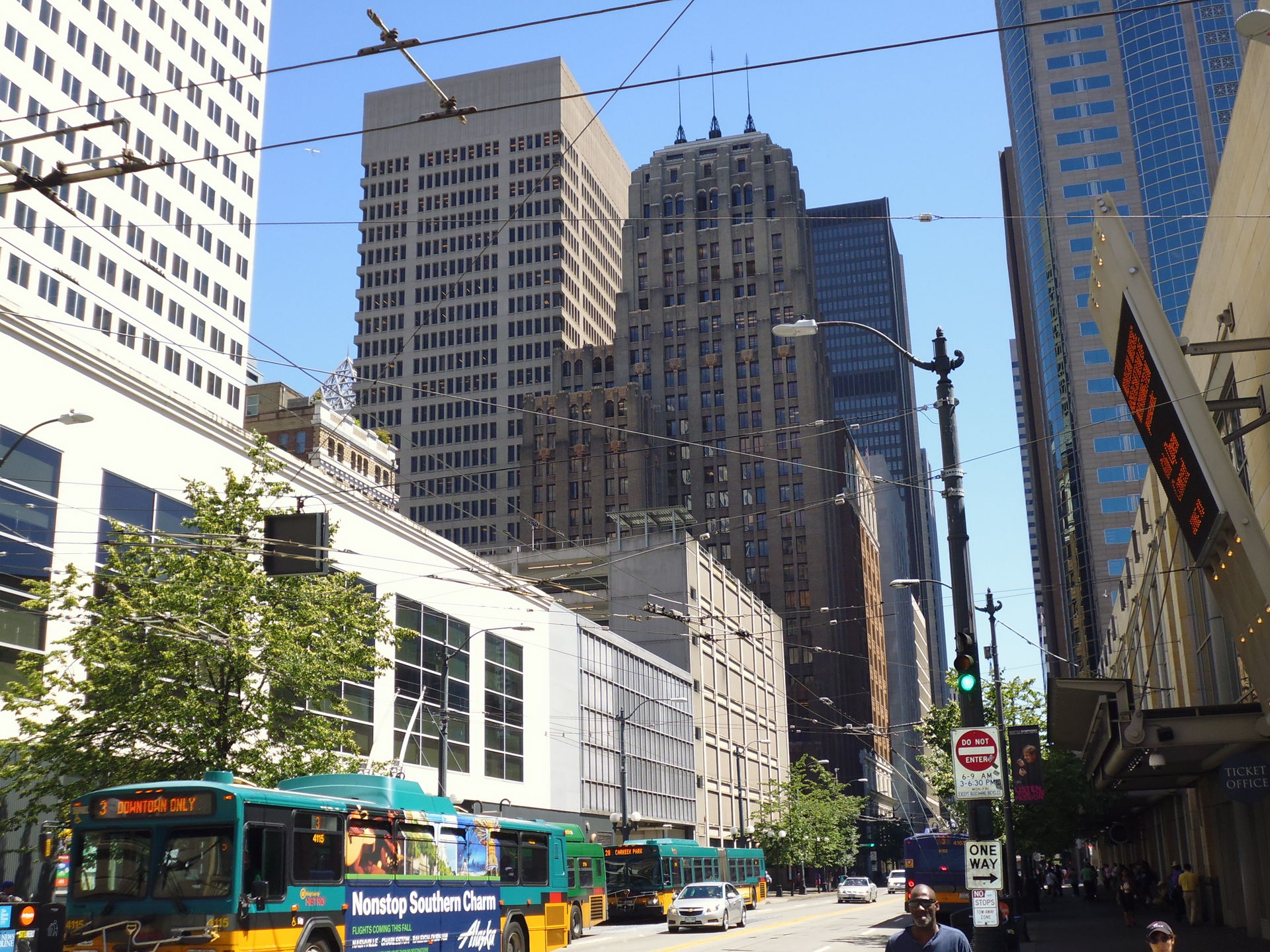 Wer hätte gedacht, dass ich mal auf eine US-Metropole treffe, die dasselbe "Problem" für fotoschiessende Touristen wie Zürich hat? Trolleybus-Leitungen!