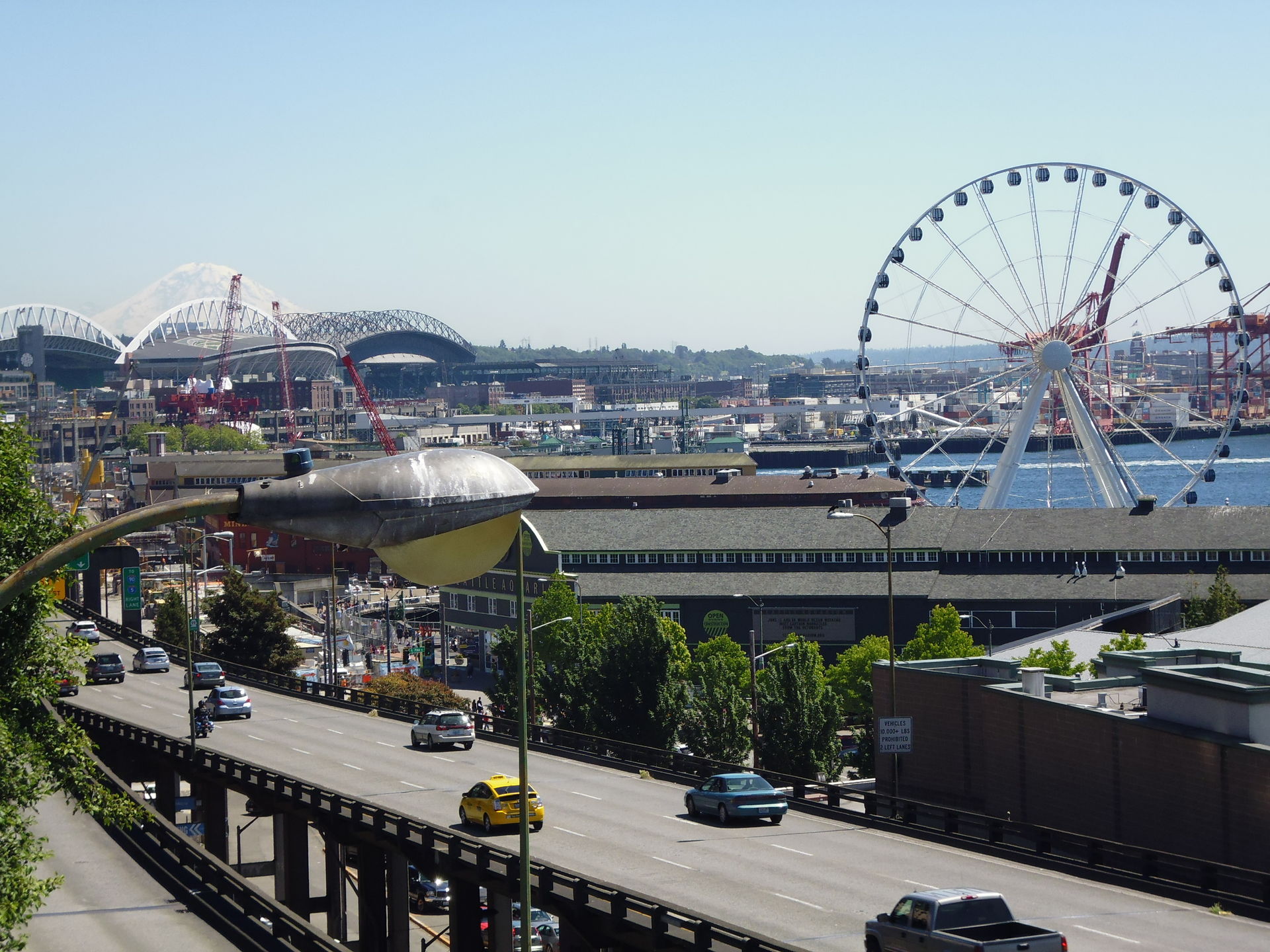 Nach letzten Fotos steuerte ich den Ford kurz vor Mittag wieder zurück auf die Interstate und in Richtung Seattle. Um den Bericht noch ein wenig abzurunden und darin nicht nur einen sehr mittelmässigen Park vorzustellen, möchte ich an dieser Stelle gerne noch ein paar Fotohighlights meiner kurzen Stadtbesichtigung anfügen. Auf der wieder mal dichtgedrängten Fahretappe nach Downtown blieb mir fast das Herz stehen, als natürlich genau auf meiner von insgesamt fünf Spuren drei Autos vor mir jemand eine Reifenpanne haben musste, die alle nachfolgenden Fahrzeuge zum Stillstand und zu recht gefährlichem Umlenken auf die benachbarten und natürlich in normalem Tempo dicht befahrenen Spuren zwang.