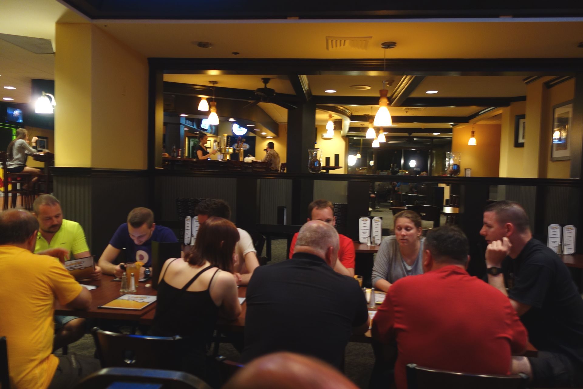 Wie bereits im letzten Bericht erwähnt, befand sich unser Hotel für die nächsten zwei Nächte direkt gegenüber des nächsten Freizeitparks. Nur der vierspurige Hamilton Boulevard trennt die Comfort Suites vom Dorney Park. Glücklicherweise hatte ich mich inzwischen auch halbwegs akklimatisiert und fiel nicht wie die Abende vorher sofort erschöpft ins Bett. Stattdessen ging es nach dem Beziehen der Zimmer nochmals nach unten, denn im angebauten Restaurant hatten wir uns zum Essen verabredet. Vorher kam aber zum ersten (und einzigen