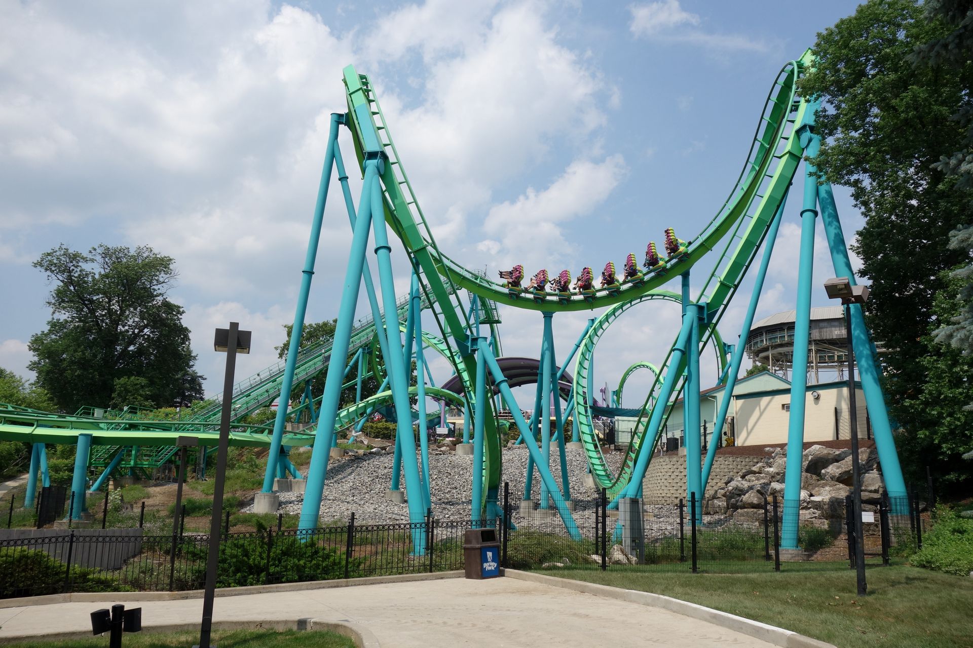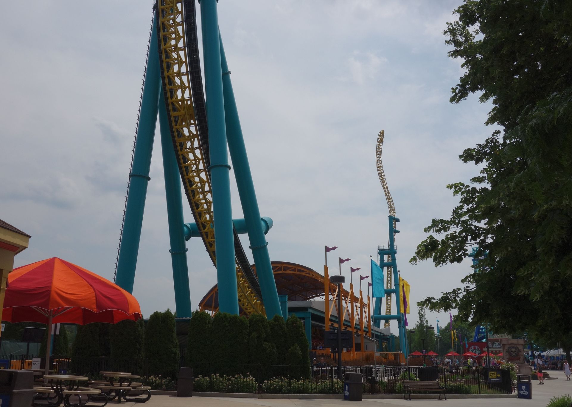 Nachdem die beiden vorigen Tage unter dem Zeichen der Flagge standen, wechselten wir nun zur Konkurrenz mit der Zeder im Namen. Auf Six Flags folgte nämlich nun der erste von vier Cedar Fair Parks. Und natürlich waren wir auch hier etwas vor der offiziellen Eröffnung am Eingang, um wieder ein kleines Sonderprogramm genießen zu können. So ging es zunächst strammen Schrittes zum bereits am Vorabend abgelichteten