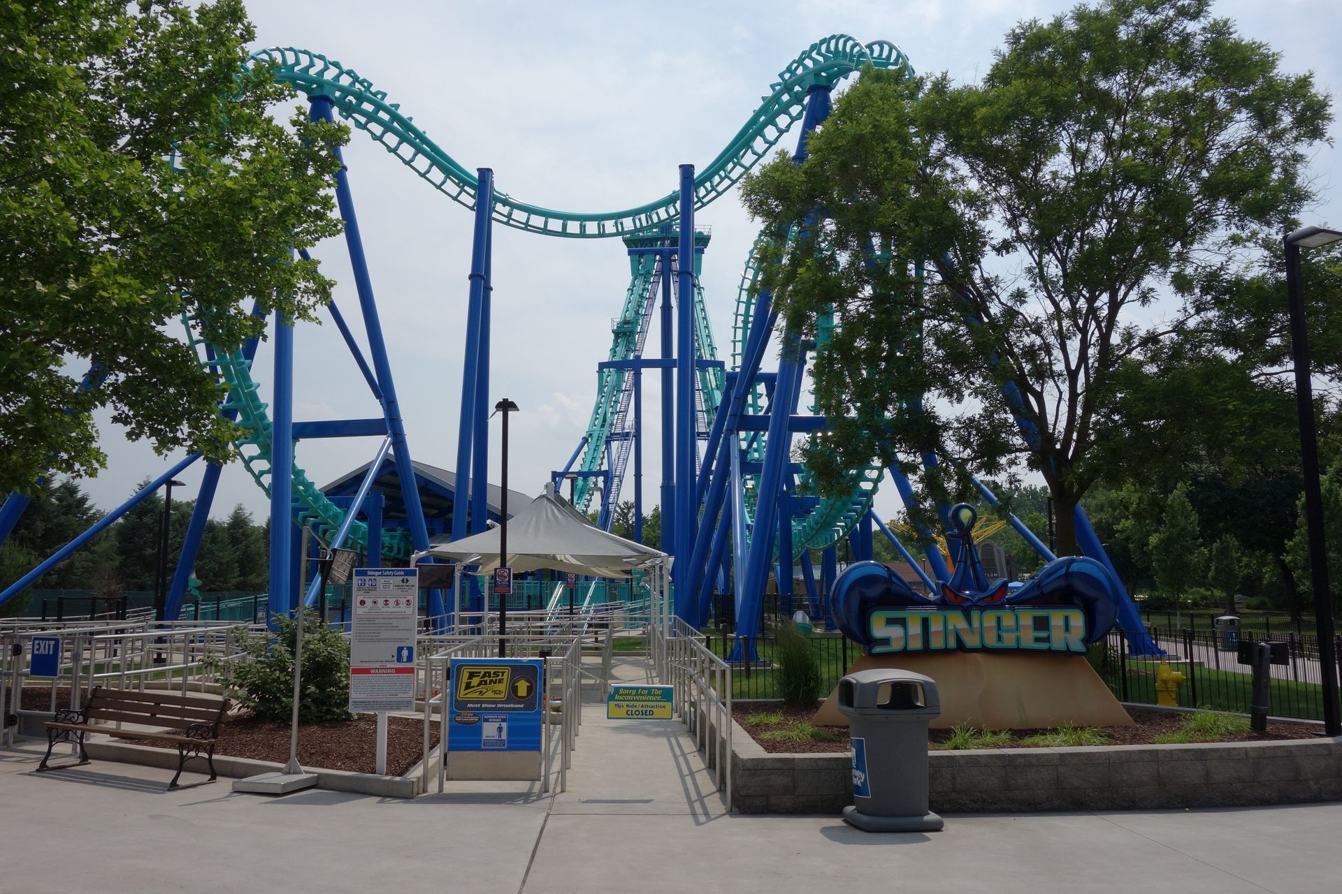 Bis 2008 stand dort übrigens der jetzt als Teststrecke reisende Doppellooping aus dem Hause Schwarzkopf. Die Bahn hätte man wohl besser behalten, denn Stinger besticht wohl vor allem mit Downtime. Schon am ehemaligen Standort in California's Great America machte der Invertigo häufig Probleme. Und auch an unserem Besuchstag absolvierte man zwar diverse Testfahrten, doch für Besucher wurde die Bahn leider nicht freigegeben. Beachtlich ist jedoch, dass Stinger - abgesehen von ein paar Kinder-Counts - der einzige Ausfall der gesamten Tour blieb! Im Vergleich zur Westküste eine enorme Verbesserung der Quote.