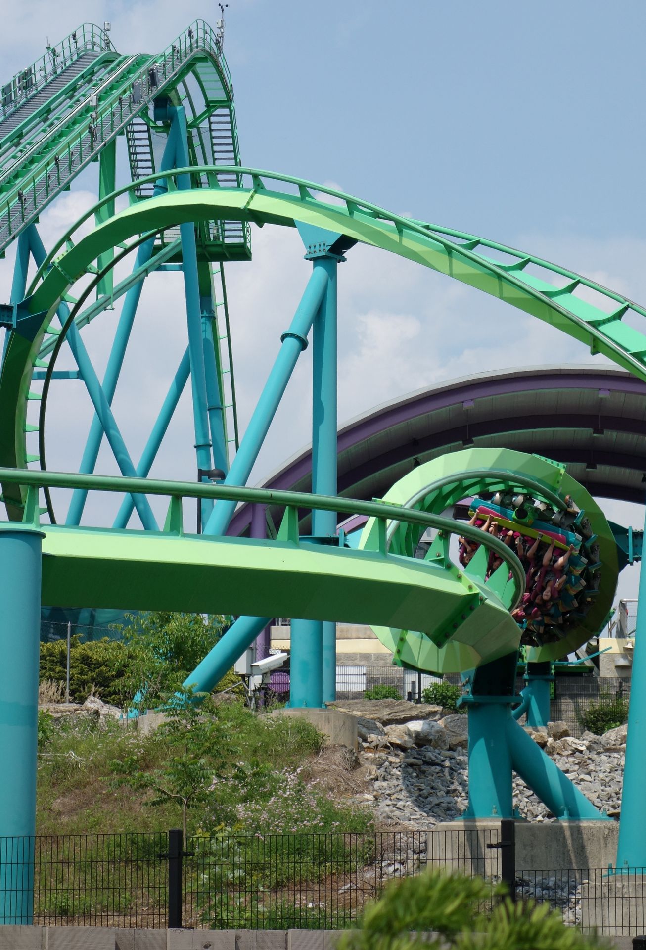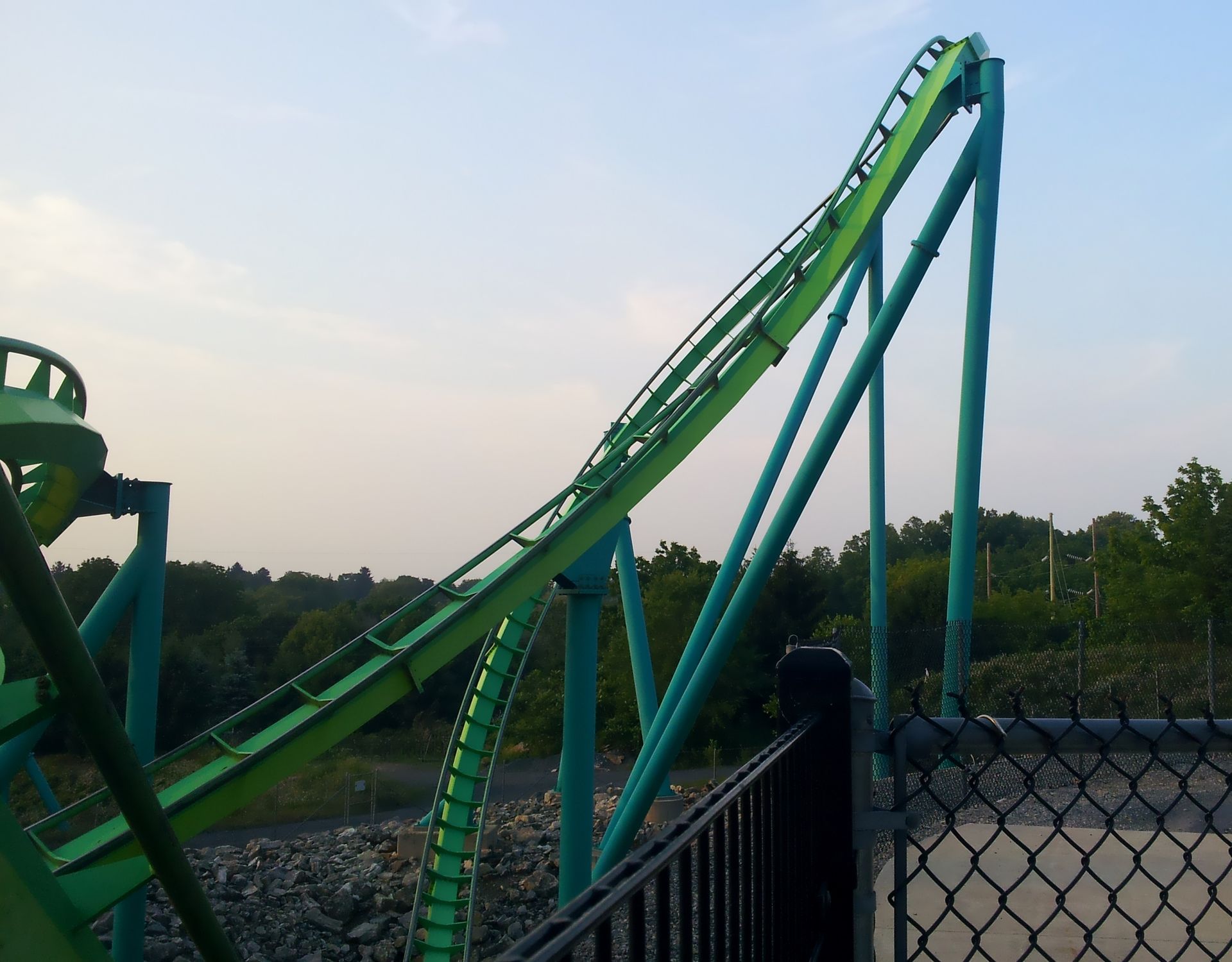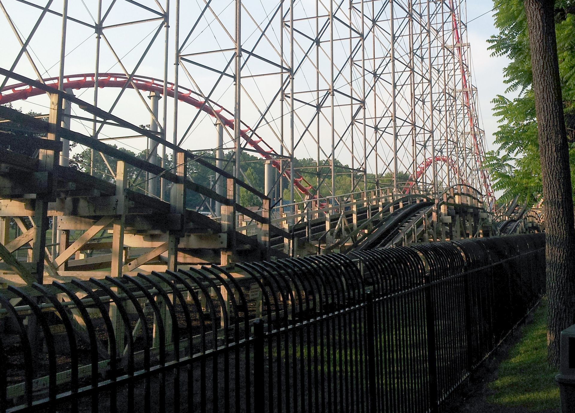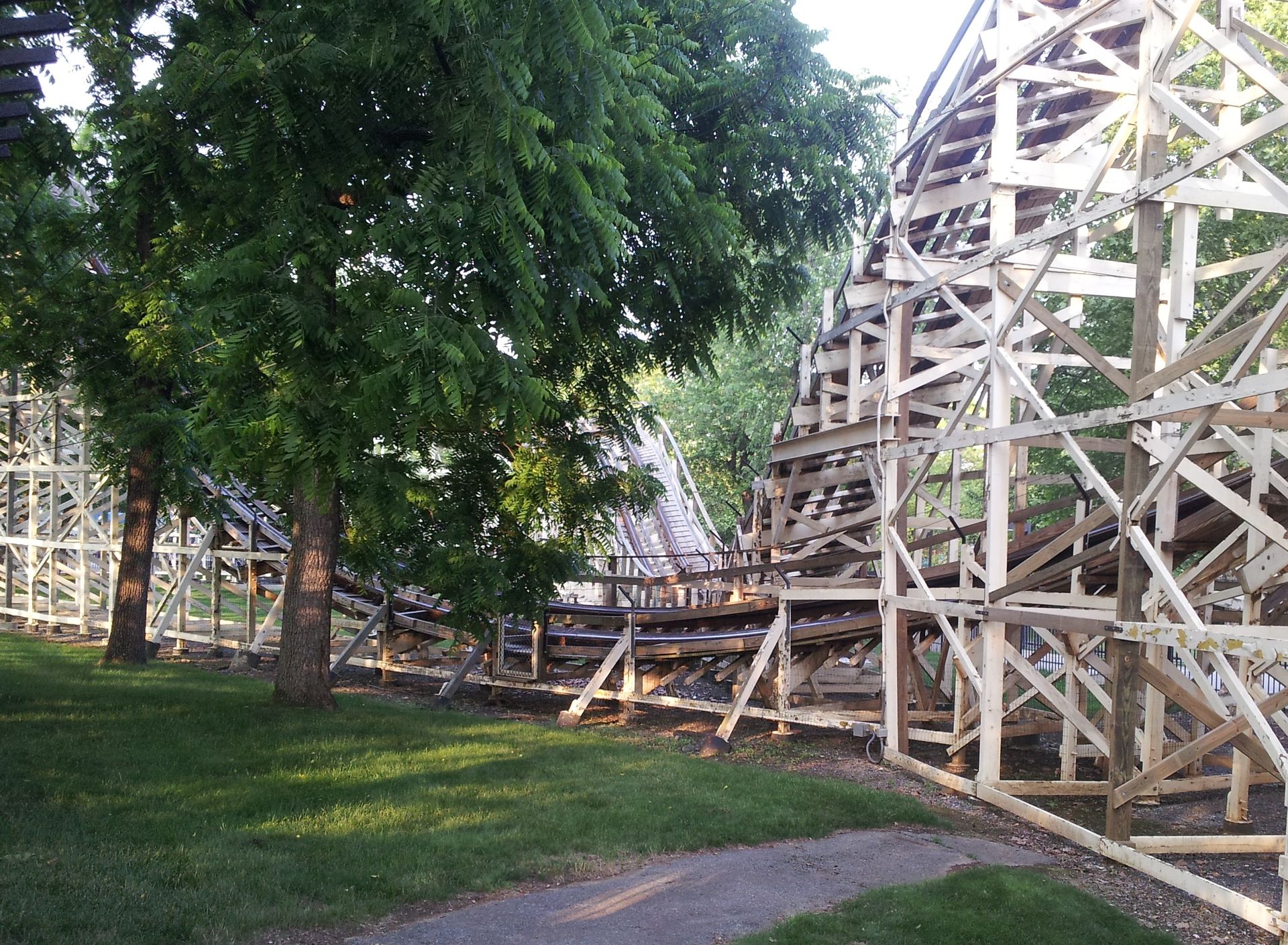 Viel hatte ich angesichts des abgeblätterten Lacks und des nicht ganz so hübschen Betonkanals auf dem Weg zum Lift (früher war das mal ein Tunnel) nicht erwartet, aber auch hier wurde ich überrascht. Denn auch diese Bahn bietet ganz nette Airtimemomente - passend zur parallel verlaufenden Steel Force. Definitiv kein schlechter Woodie. Lediglich die Farbe gehört mal wieder aufgefrischt.