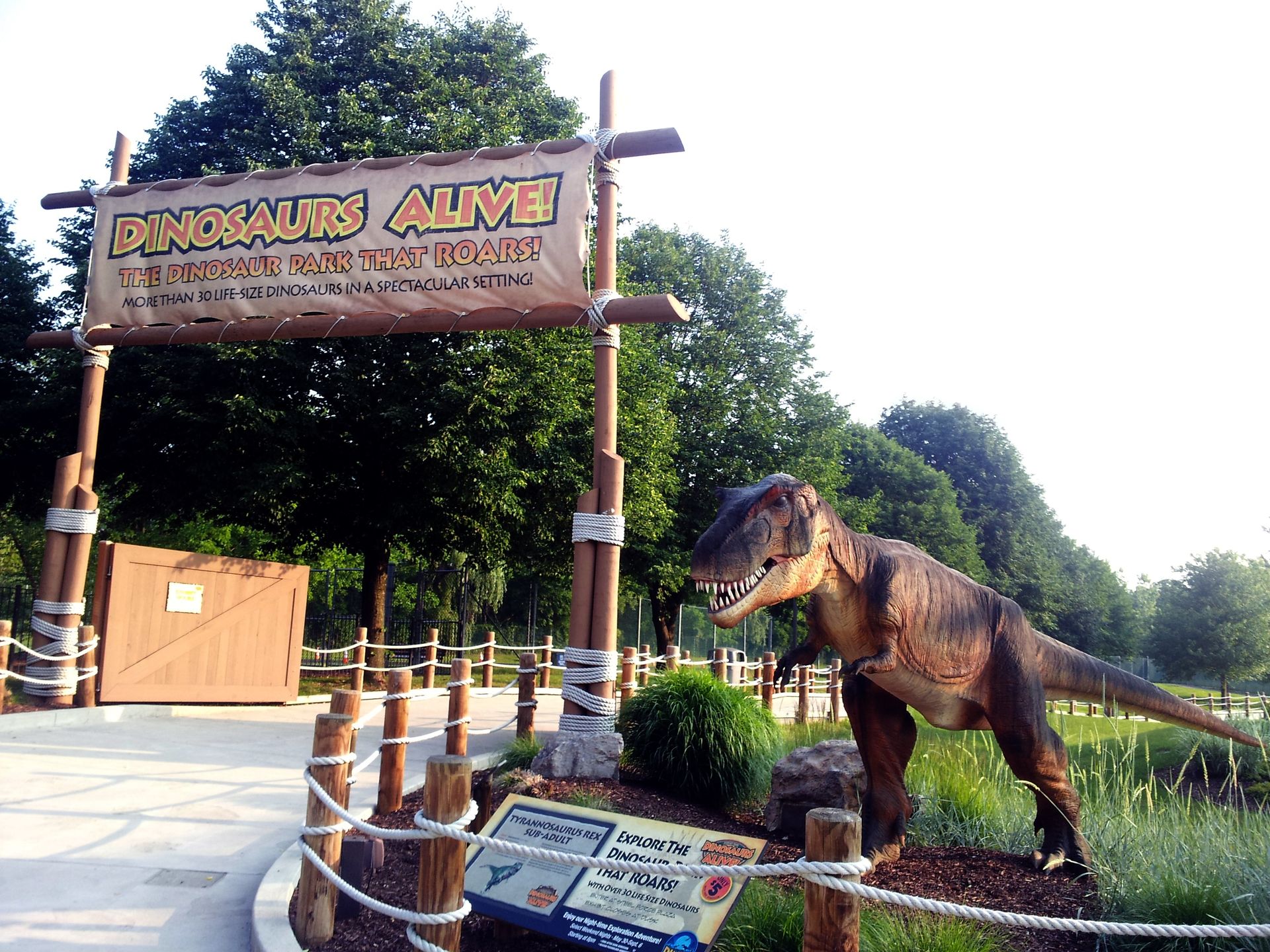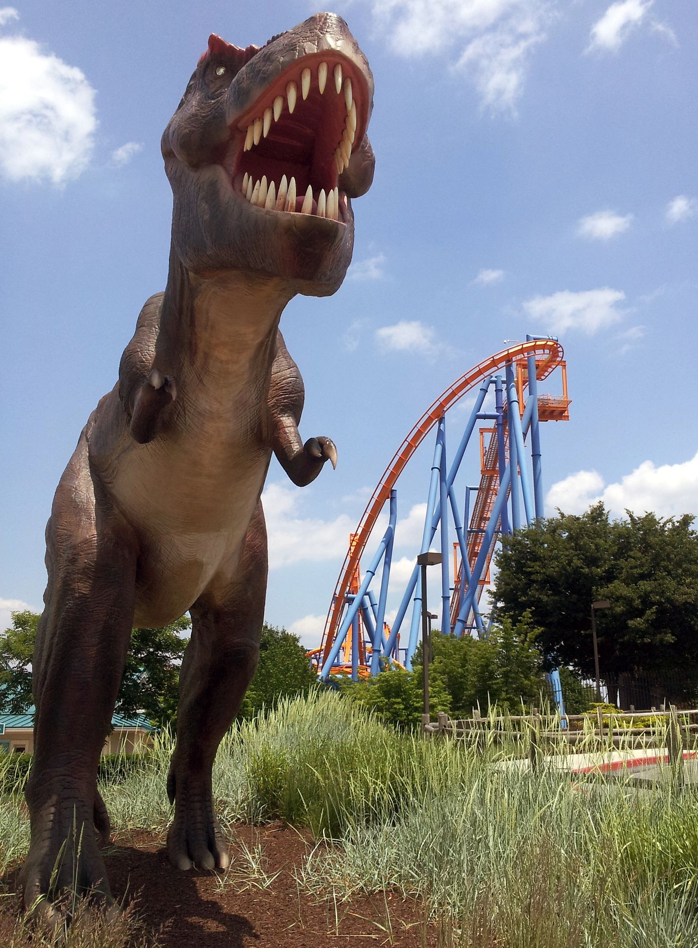 Denn dort warteten mal wieder Hot Dogs und Co. darauf, unsere hungrigen Mäuler zu stopfen. Zur Abwechslung gab es danach noch ein kühles Eis als Dessert. Als kleines Schmankerl obendrauf hatte der Park angeboten, dass wir uns nach dem Essen umsonst "Dinosaurs Alive!" anschauen durften. Dabei handelt es sich im Grunde um einen vom Rest des Parks separierten Bereich, in dem einige Dino-Animatronics platziert wurden. Diese normalerweise aufpreispflichtige "Attraktion" wurde in den Jahren 2011 bis 2013 in diversen Parks der Kette eingerichtet. In Dorney gibt es die Dinos seit 2012. Dennoch verzichtete ich auf das Angebot des Parks. So wahnsinnig interessant fand ich das nämlich nicht.