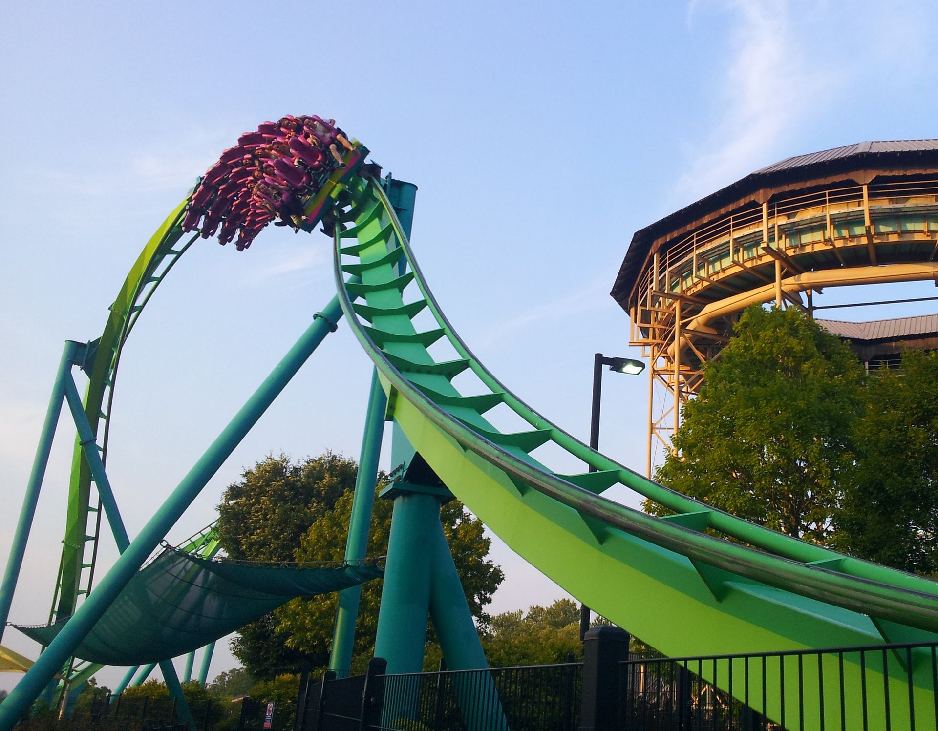 Inverted Coaster Talon. Allerdings war die ERT nicht ganz so ausgiebig wie andere. Dafür wechselten wir aber noch für zwei Fahrten zum Floorless Hydra.