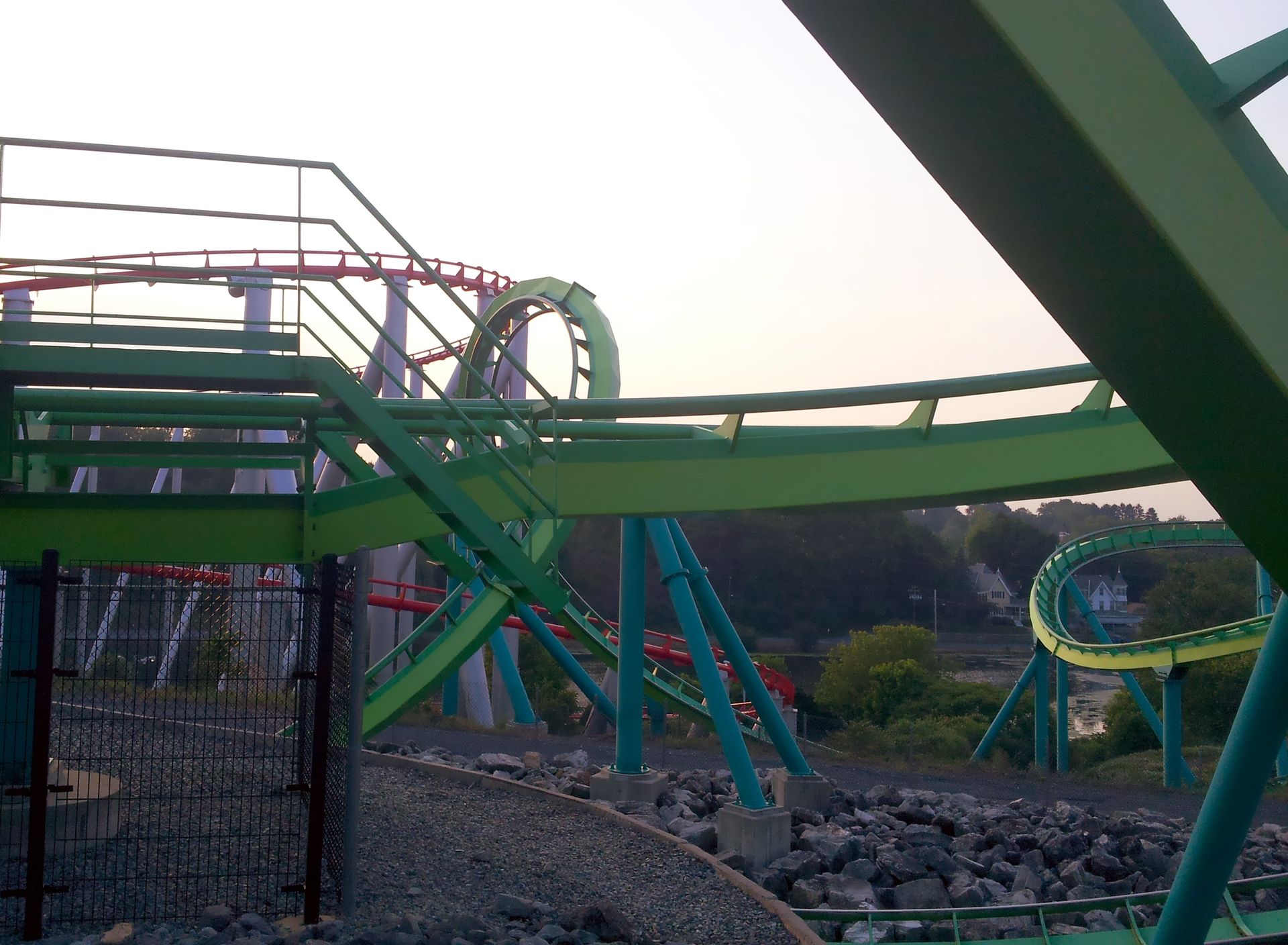 Also lieber den Aquaracer neben dem Wellenbecken nehmen. Im Grunde ähnlich dem Mattenracer in Lake Compunce, nur mit weiteren Wellen statt den verknoteten Röhren am Anfang. Ebenfalls ganz nett, aber en Freund des "Kopf-Voraus-Rutschens" werde ich nicht - höchstens vielleicht mit Taucherbrille...